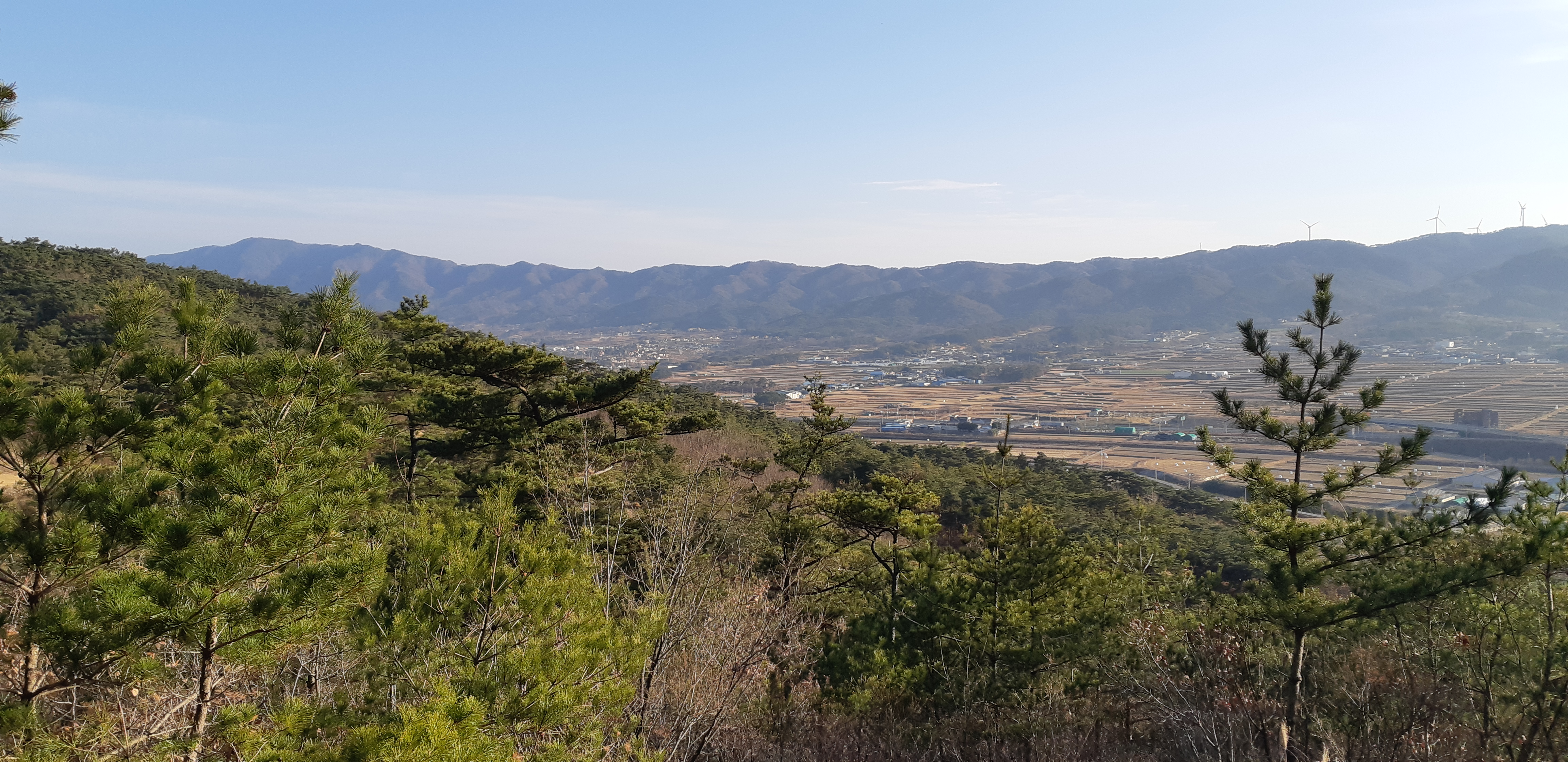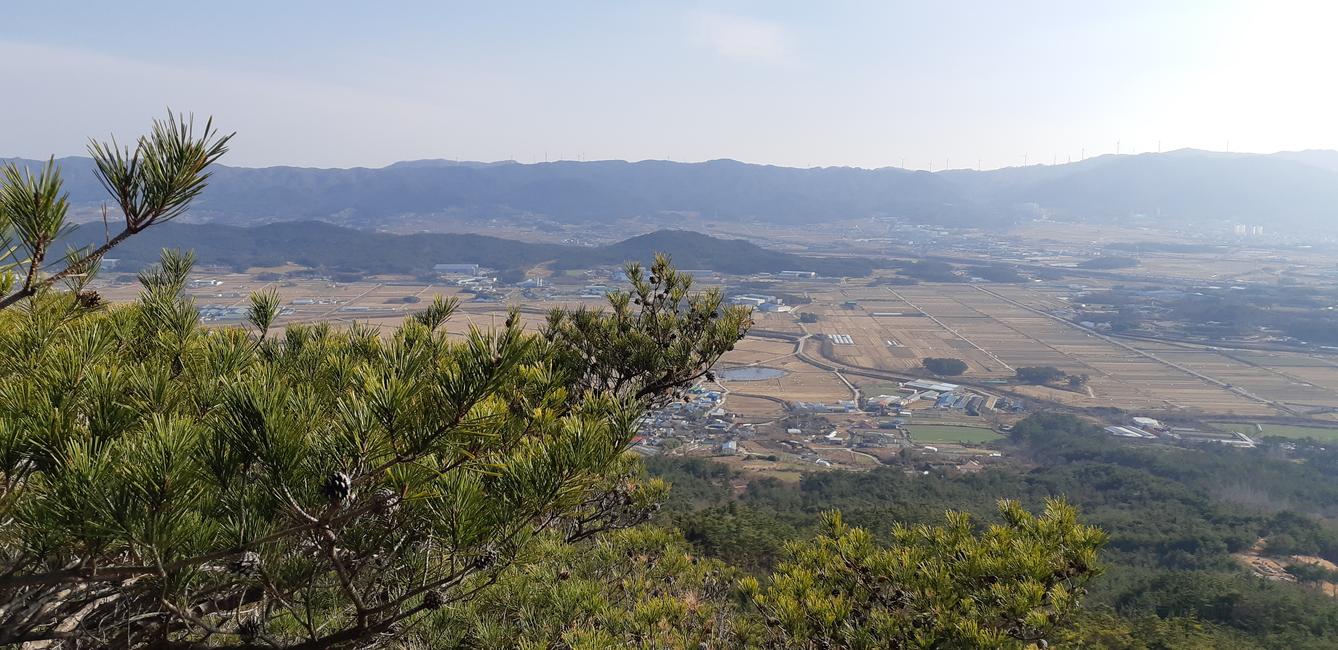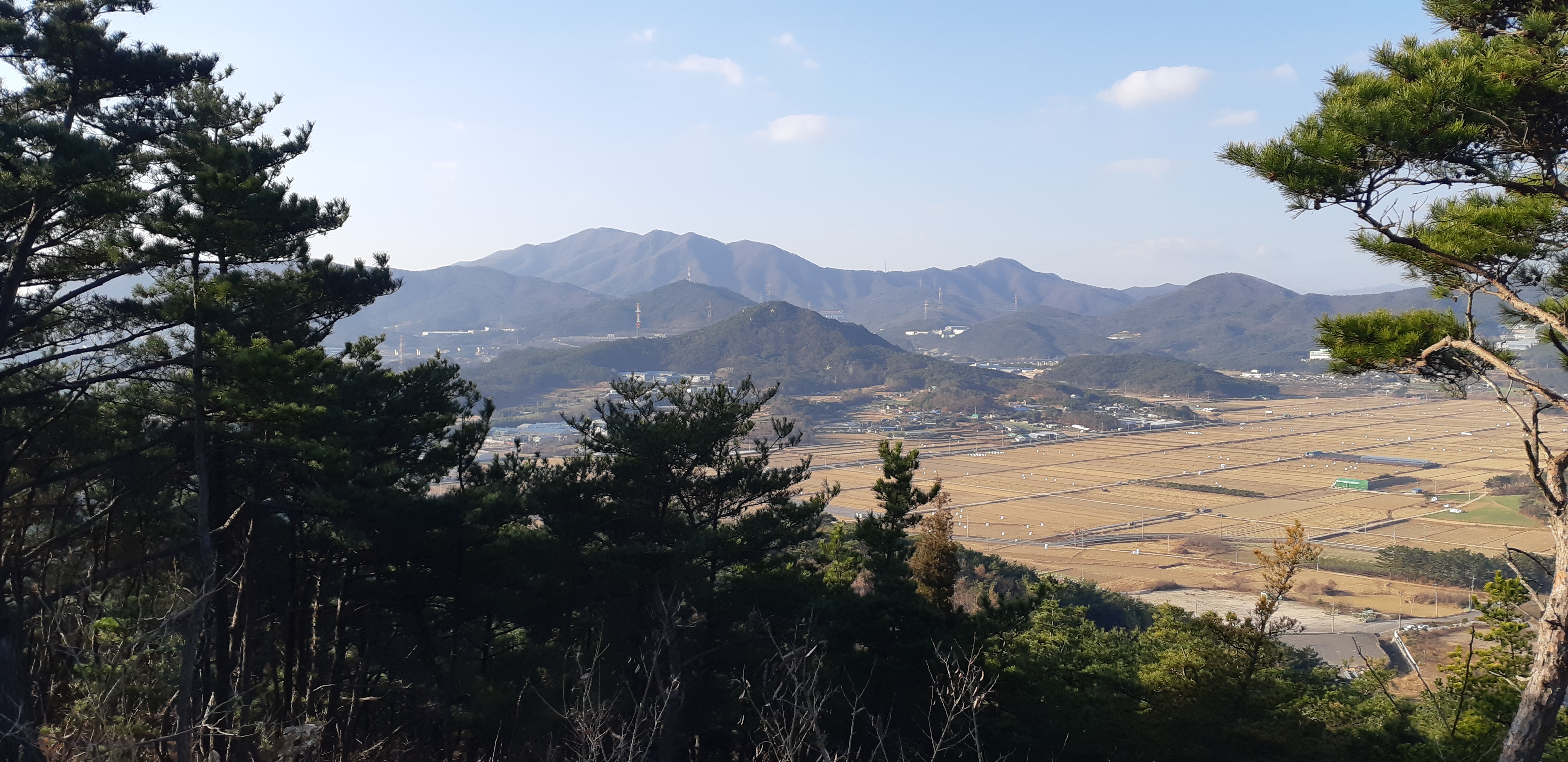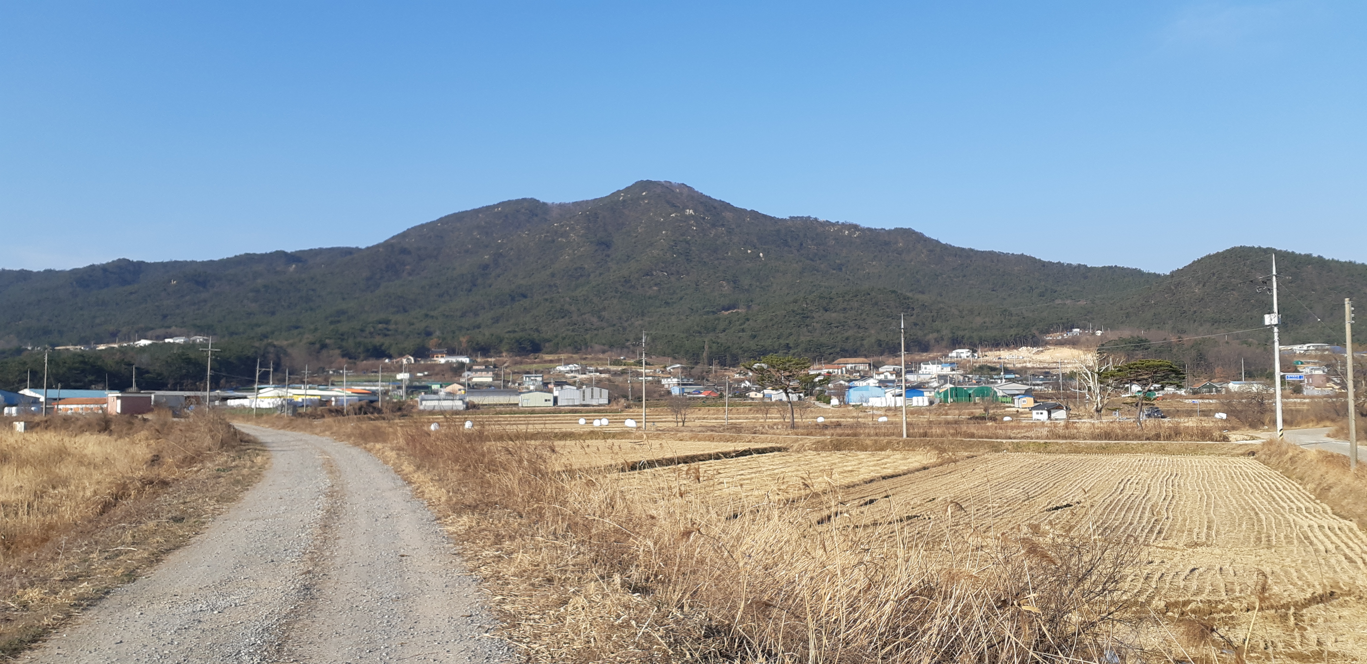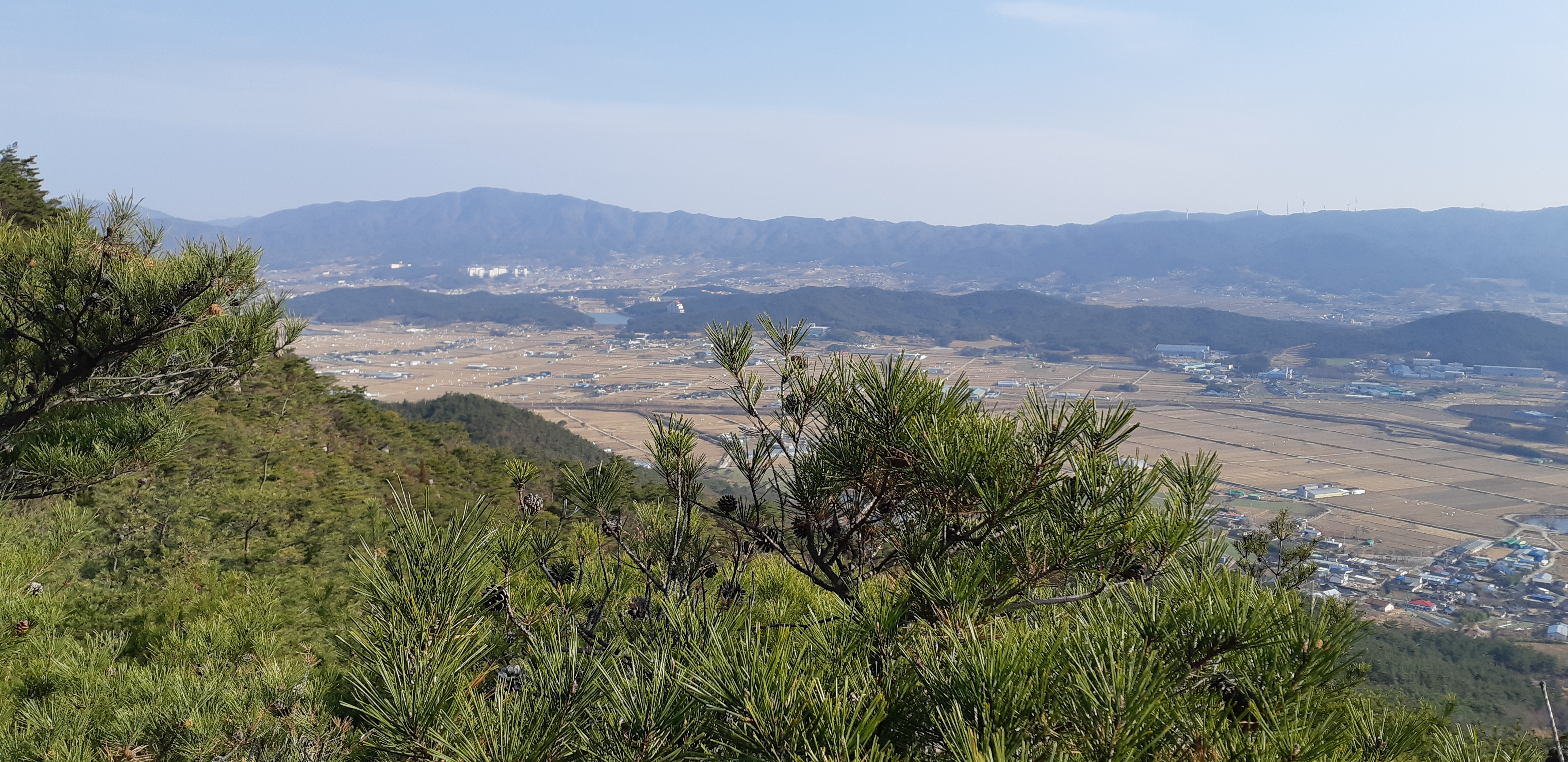 오른쪽으로 들판너머로 마석산이 한 눈에 들어온다(09:05)