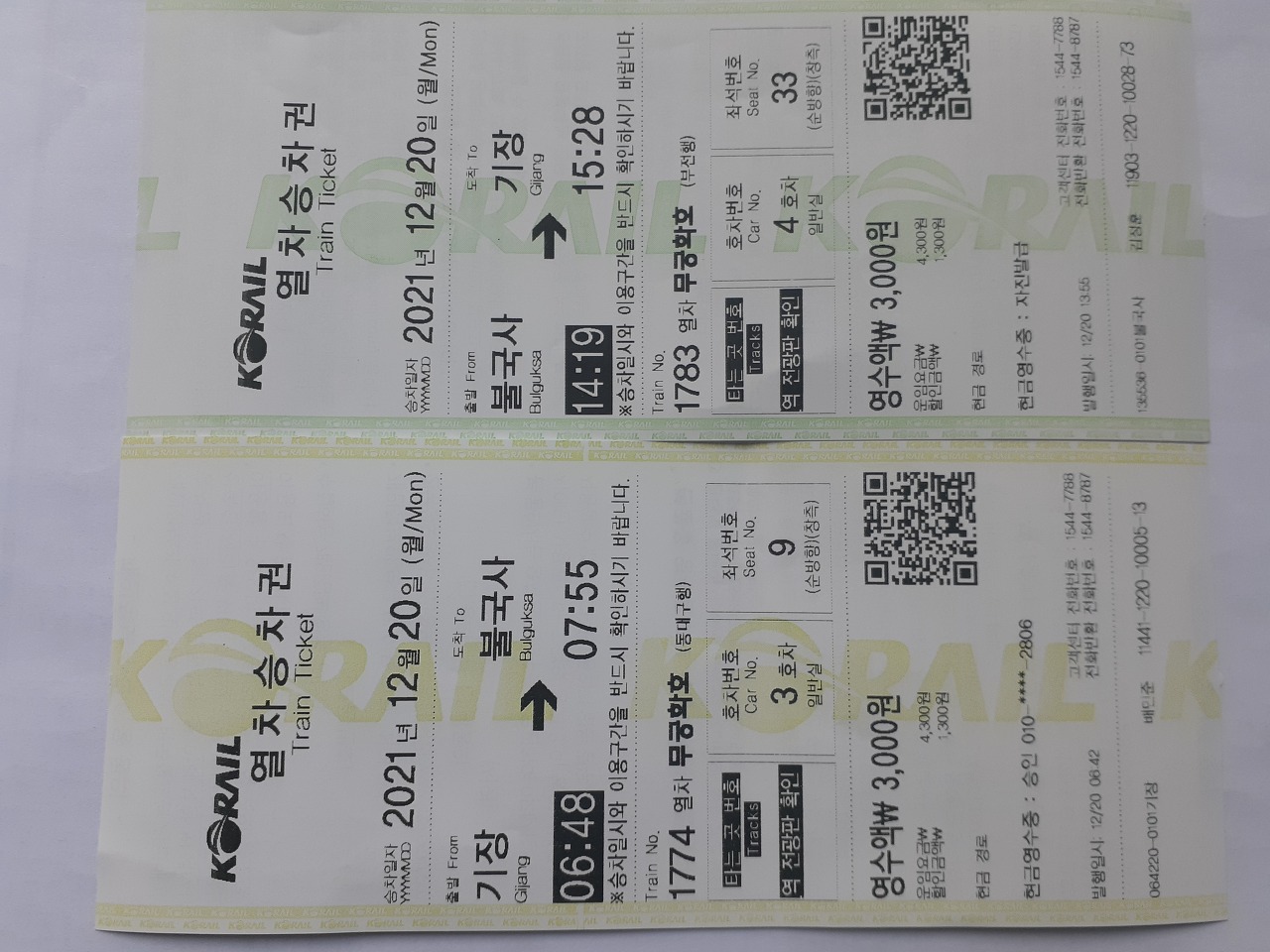 - 06:48 기장역 출발 - 07:55 불국사역 도착(무궁화 1774호)