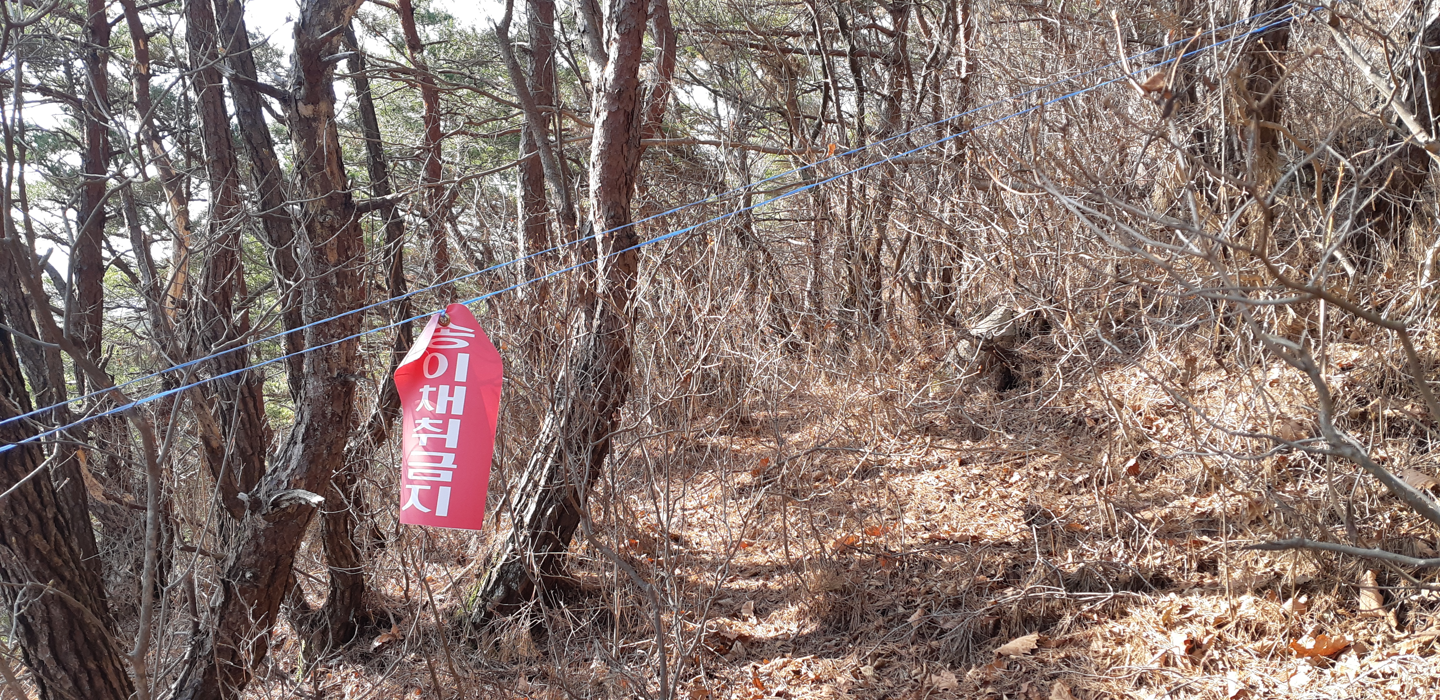 한우사육 농가들 지나 마루금으로 들어서는데 쇠줄이 걸려있다(10:10)