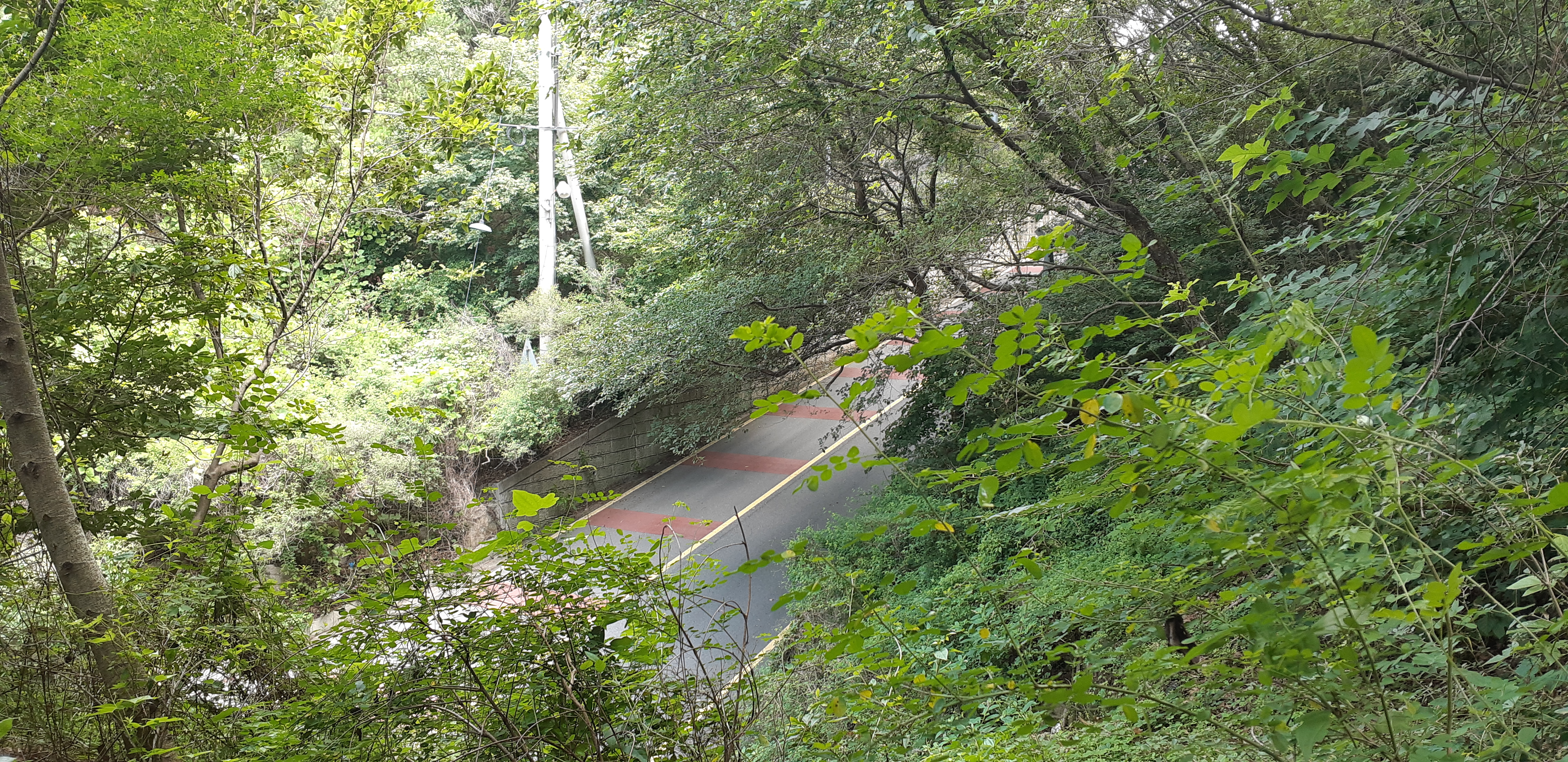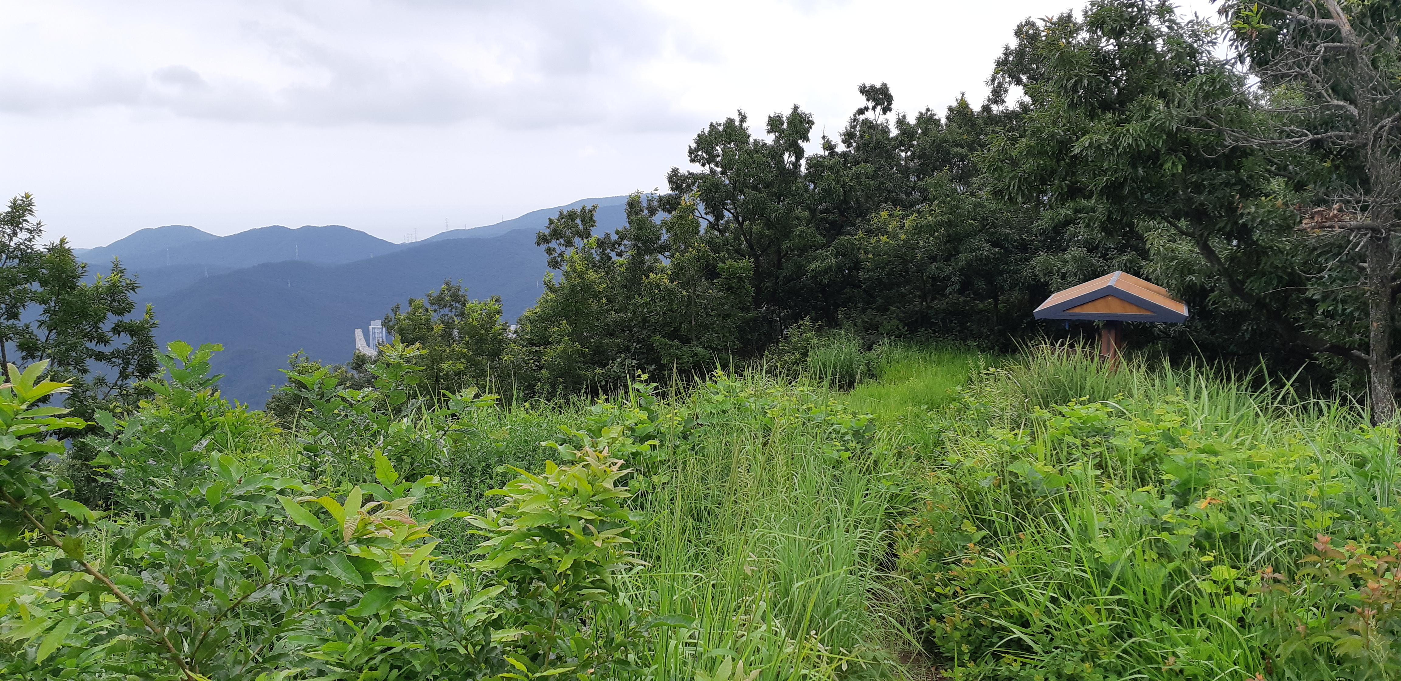 지하철 4호선 윗반송역에서 내려 무지산 들머리를 따라 정상으로 향한다. 지난주 장마가 멎은 뒤 연일 30℃ 가까이 오르내리는 기온과 습도가 높아 땀이 줄줄 흐른다. 무지산 정상을 다녀오고 실로암공원묘원 뒤편의 개좌산에 올랐다가 곧장 생태터널인 개좌고개로 내려간다. 고개 근처 생태터널이 설치된 곳 조금 못가서 왼쪽으로 꺾어야 하는데 잠시 길을 놓치는 탓에 왔다 갔다 하다 길을 찾아 지난다. 아홉산 줄기인 주능선에 올라 왼쪽으로 가면 조망이 트이는 정상에 닿는다. 오래 전에는 이곳에 정상석이 있었는데 장년산 방향으로 옮겨졌다. 시원한 바람이 부는 정상의 그늘에서 회동수원지를 바라보며 옥수수 한 자루 먹고 출발한다. 270봉 가기 이전부터 능선에는 산불흔적이 그대로 남아 있는데 아직도 불에탄 나무들의 탄내가 그대로 남아있다. 249봉을 지나 날머리 도로에 내려서고 동대교에서 수영강변의 갈맷길따라 집까지 걸어서 온다.