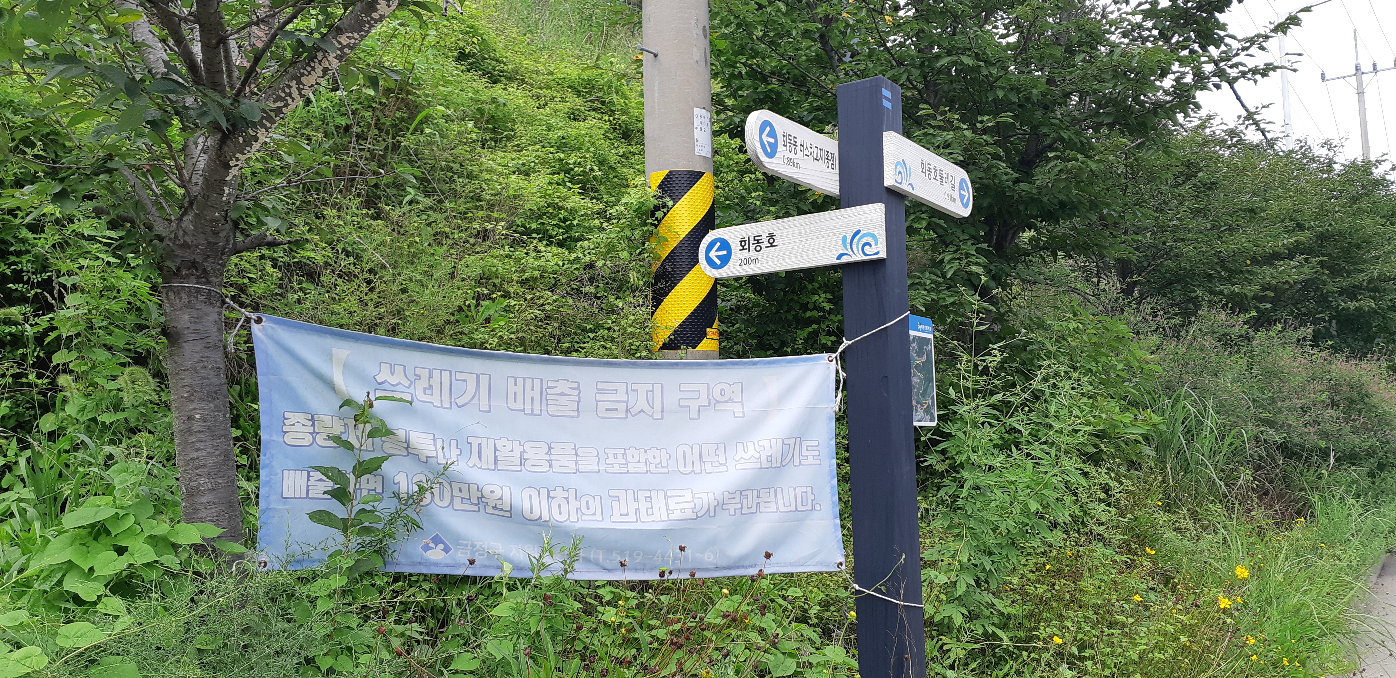 수영강변의 갈맷길 이정표(13:57)