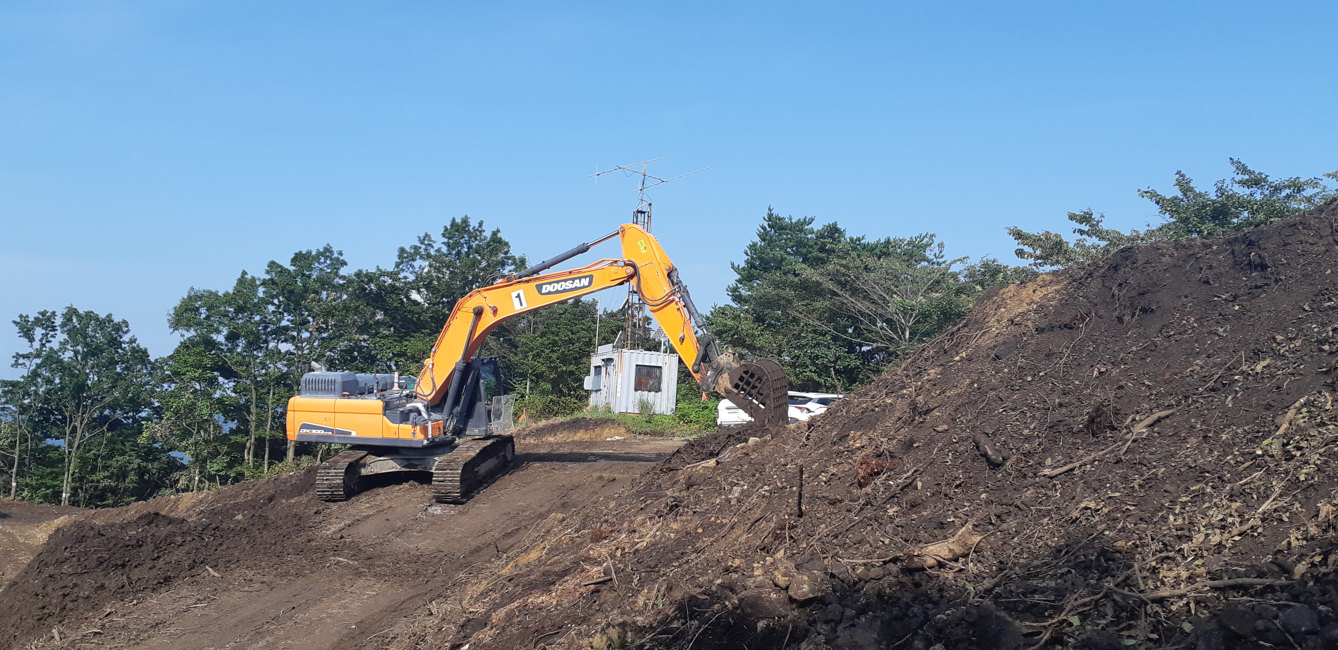 내석고개/풍력발전시설 공사가 진행되어 덤프트럭이 대기하고 있다08:26)