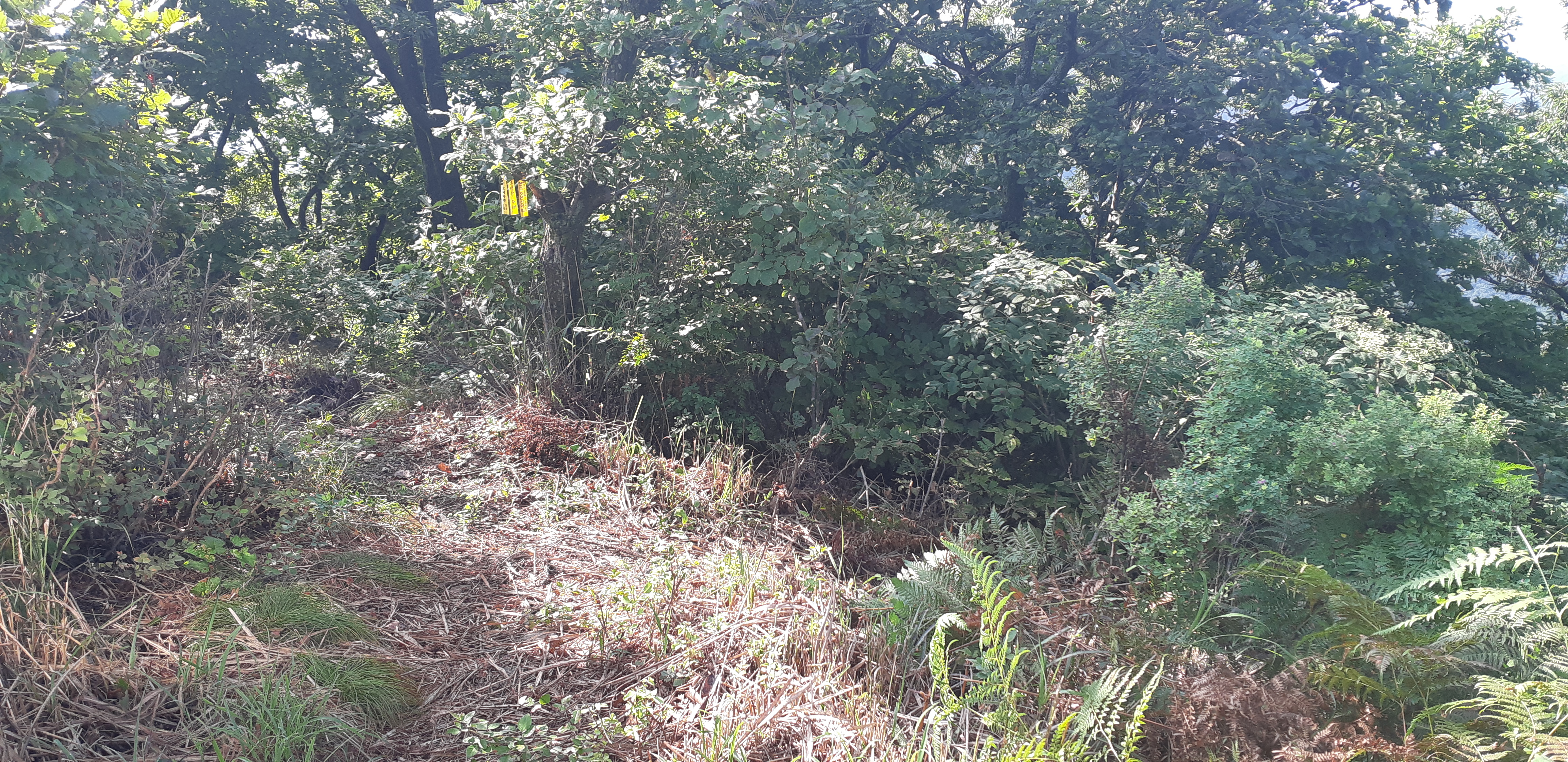 염수봉 정상에서 내림길로 정면은 지맥길이고 오른쪽은 조금전 올라온 길이다(09:13)
