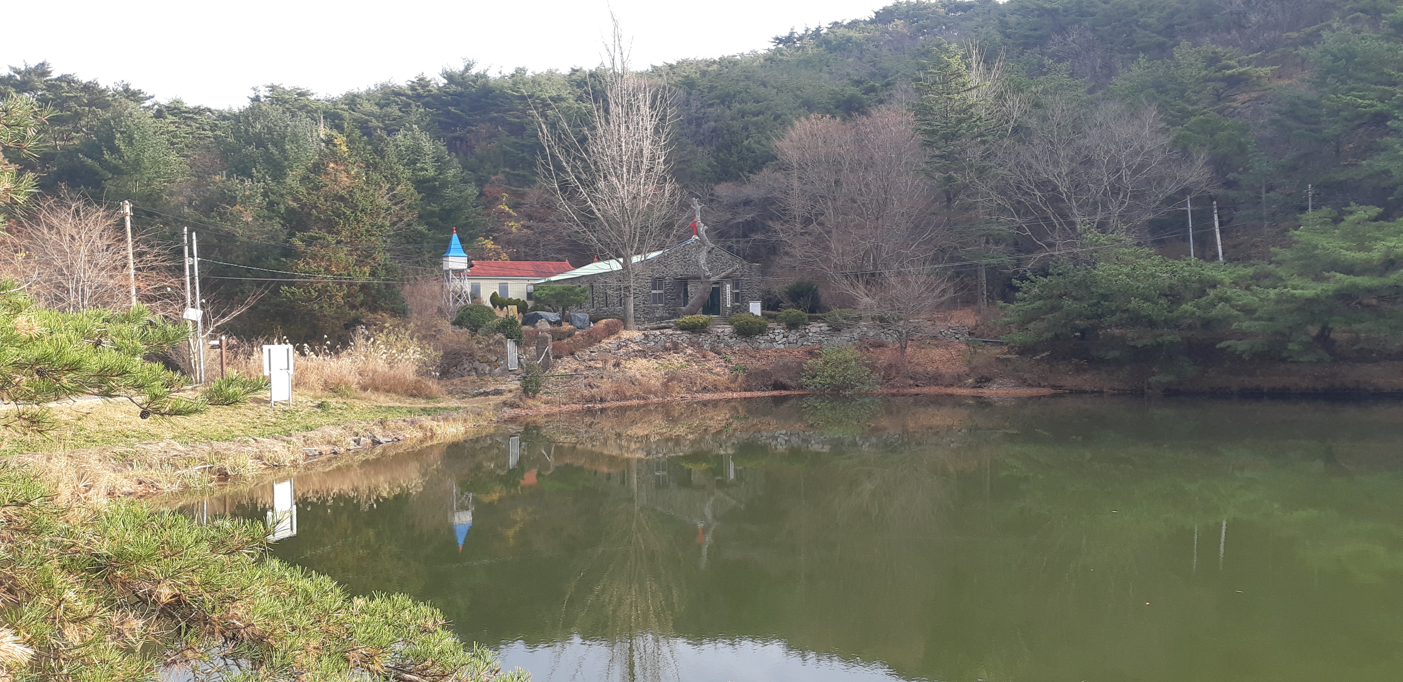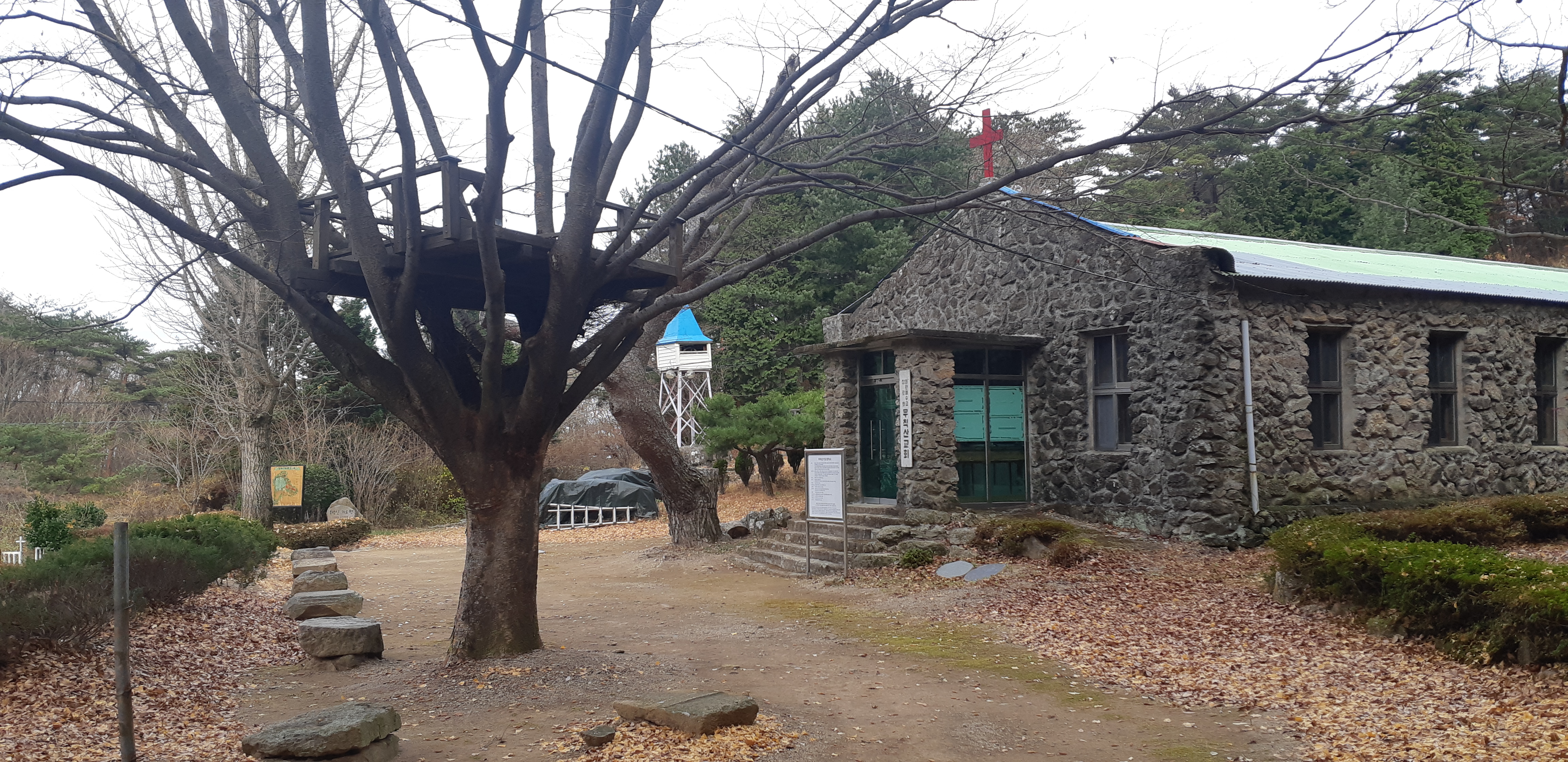 천지 주위의 무척산교회(08:40)