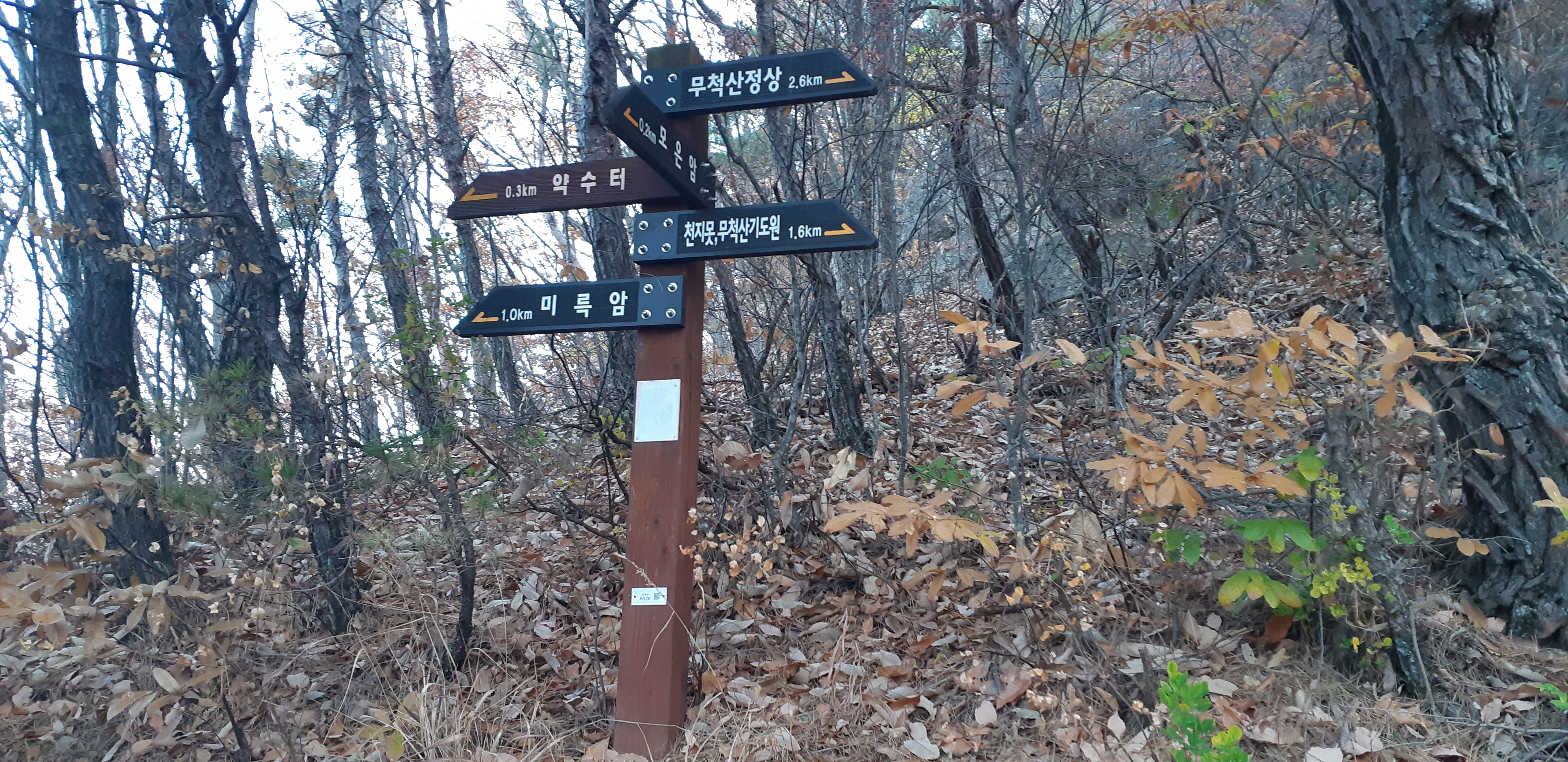 무척산 1.2km를 알리는 이정표(08:28)