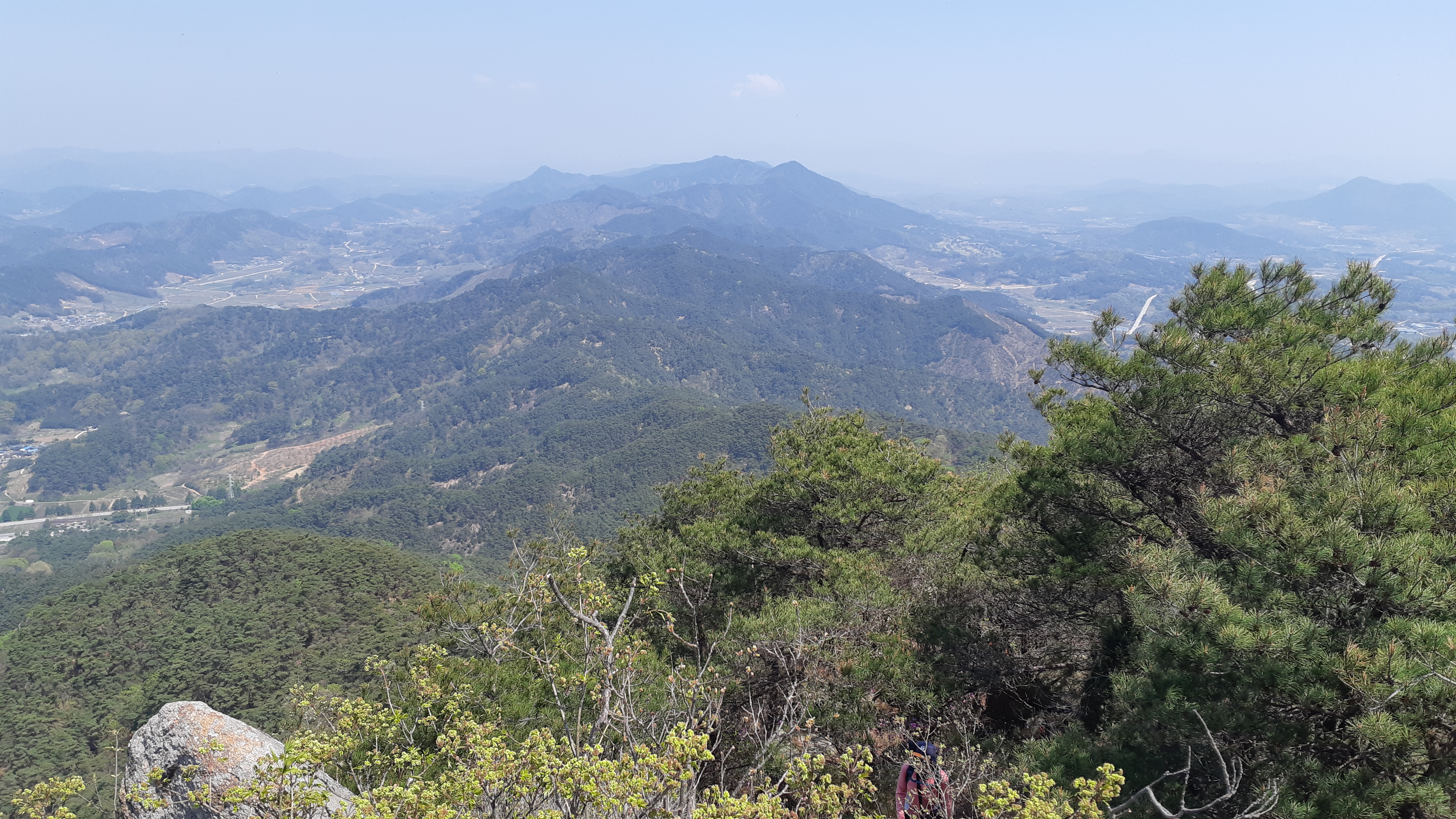 문덕봉 정상에서 바라본 출발지점인 비홍치와 저 멀리는 풍악산이다(11:42)