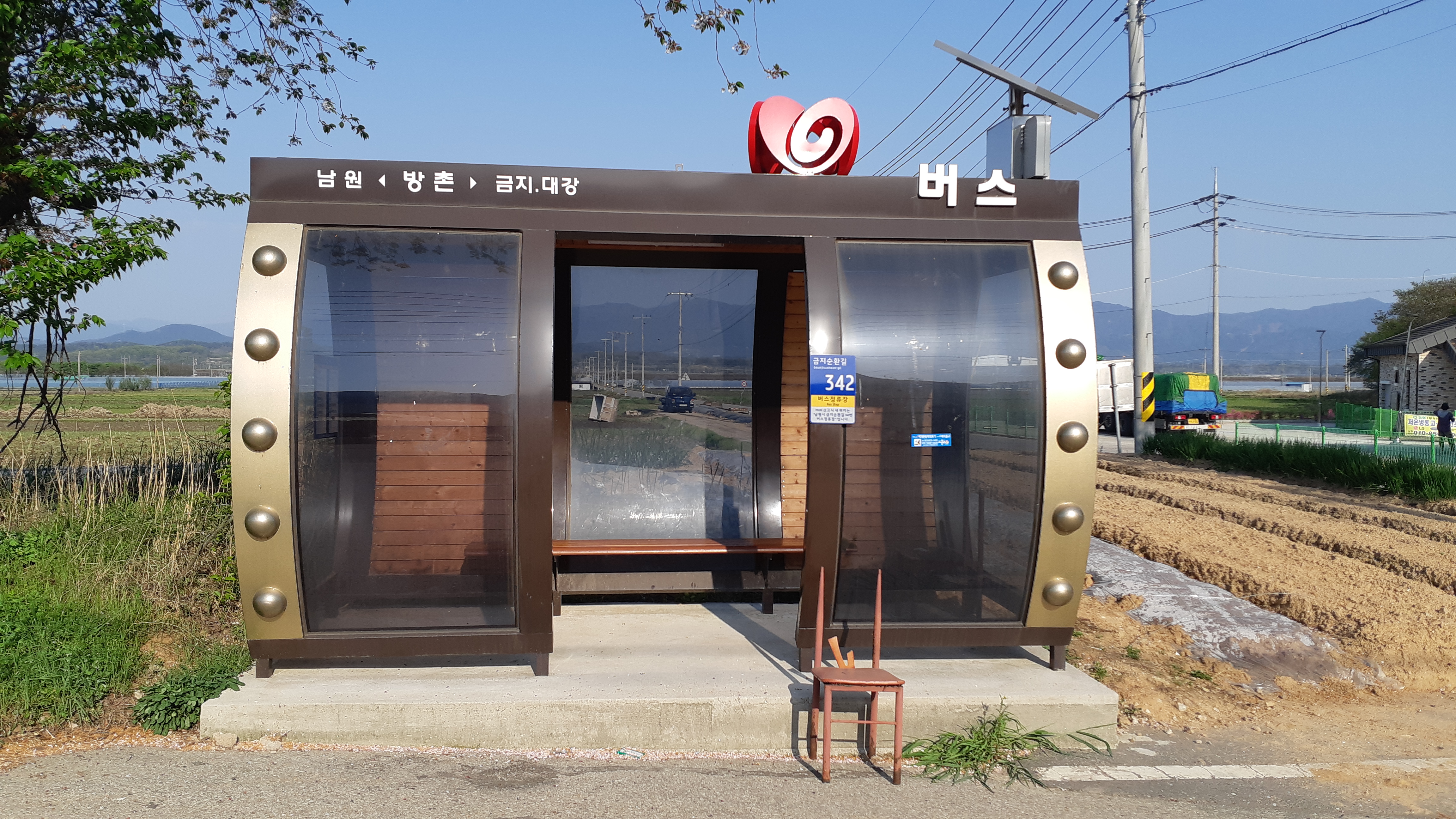 방촌마을의 버스승강장/예정 시간보다 18분이 초과 되었다(16:48)