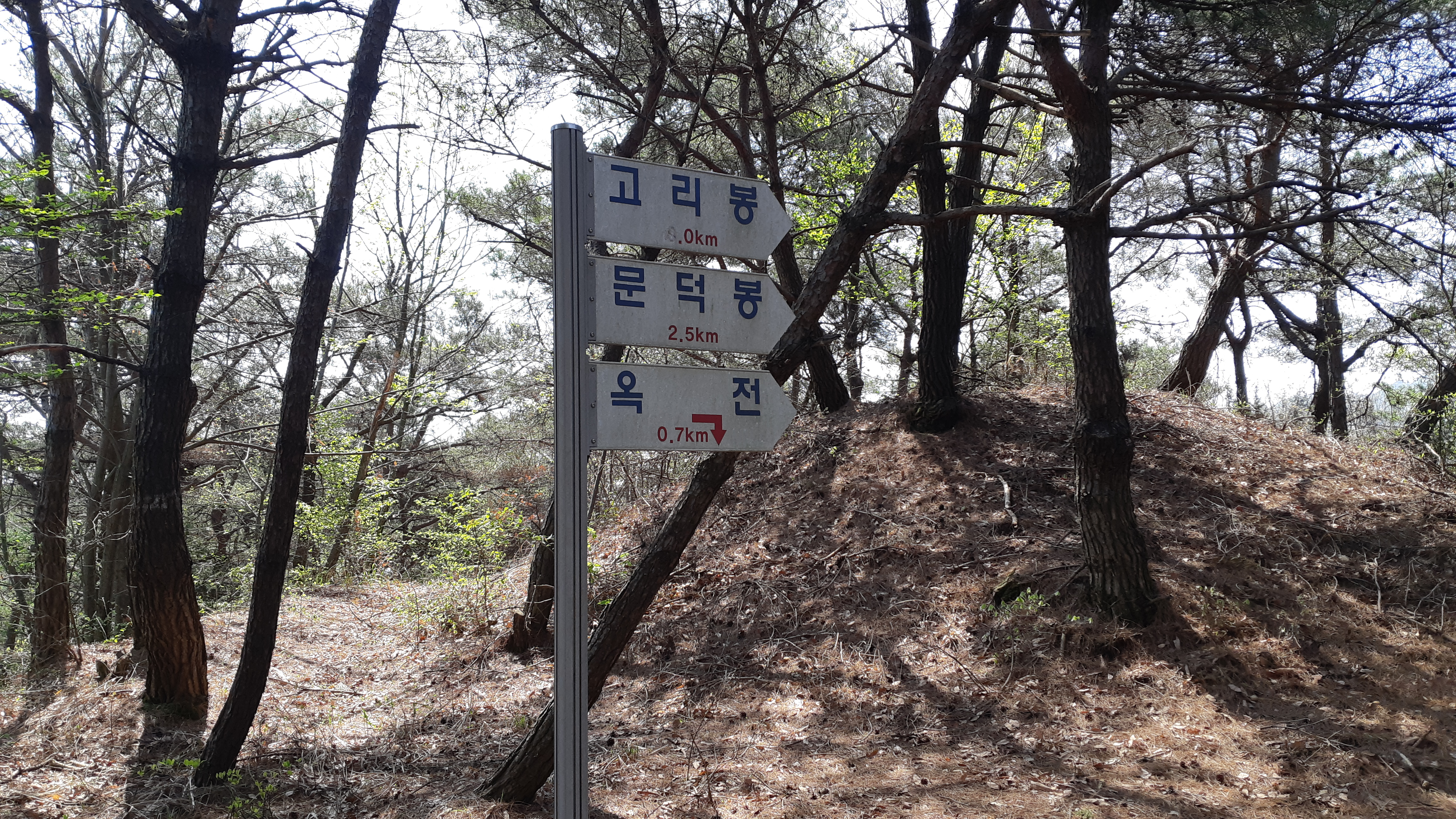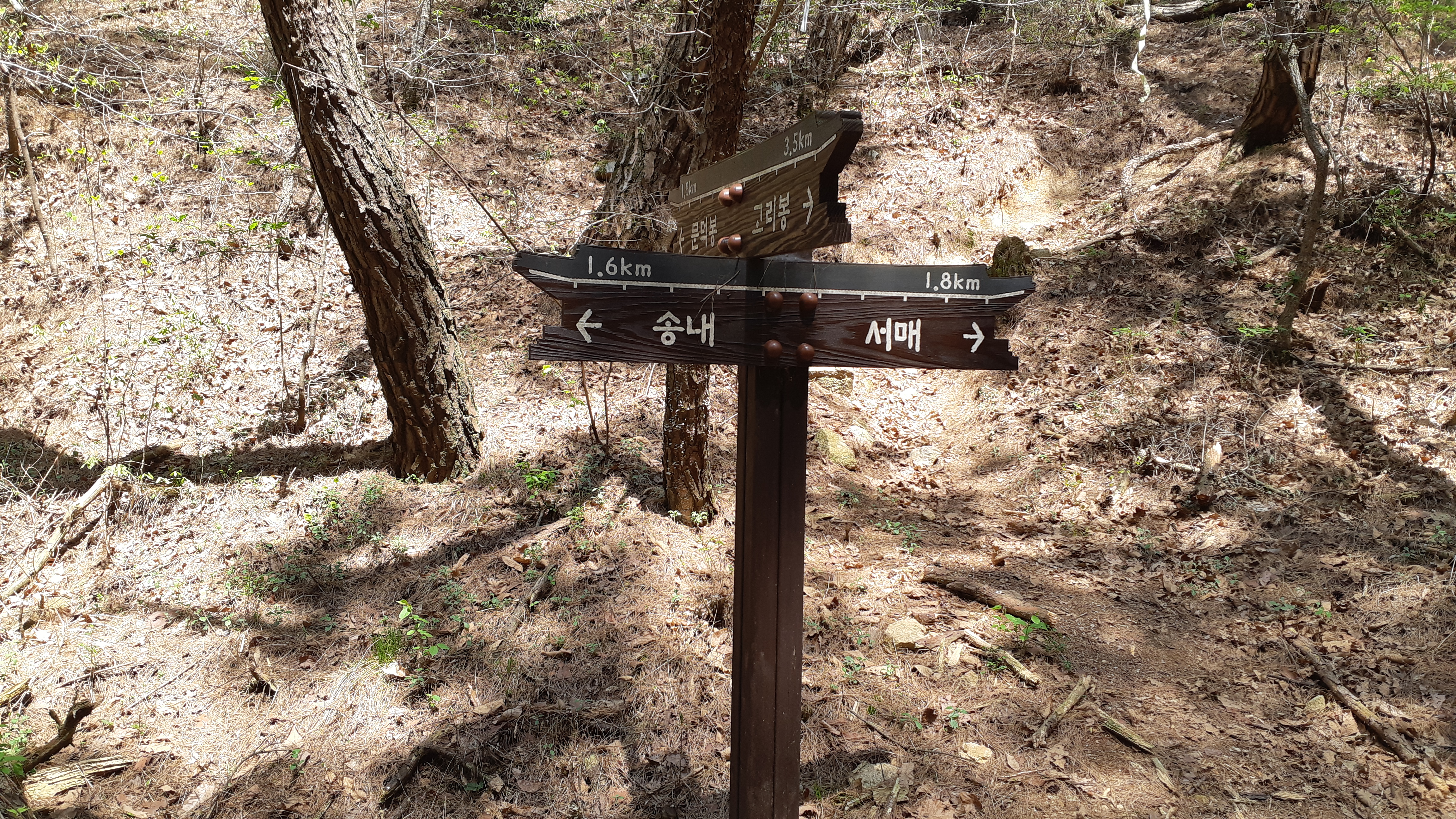 오늘 가려는 고리봉 방향의 이정표/이곳 이정표의 거리는 들쭉날쭉 멋대로라 믿을수가 없다(10:18)