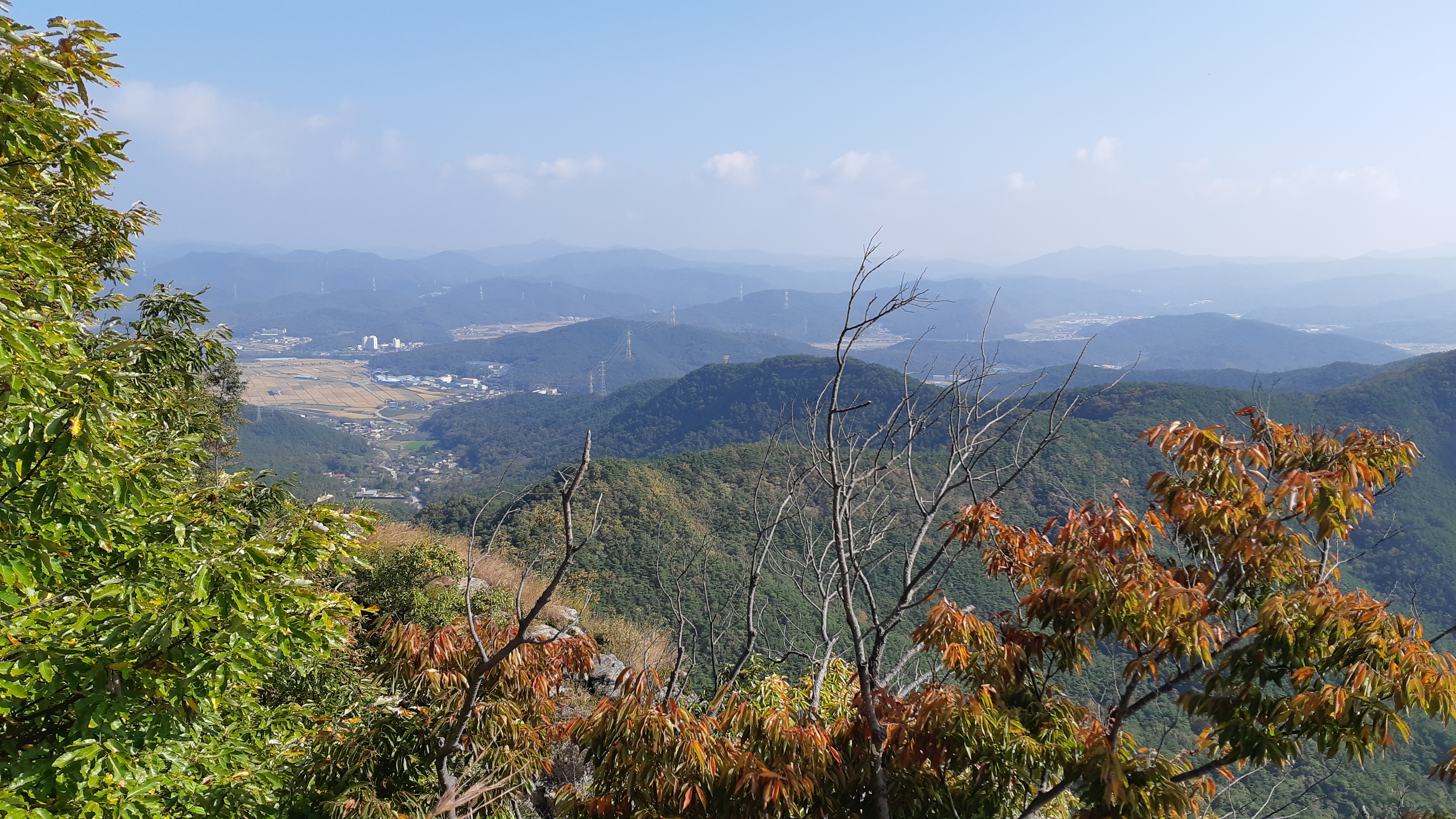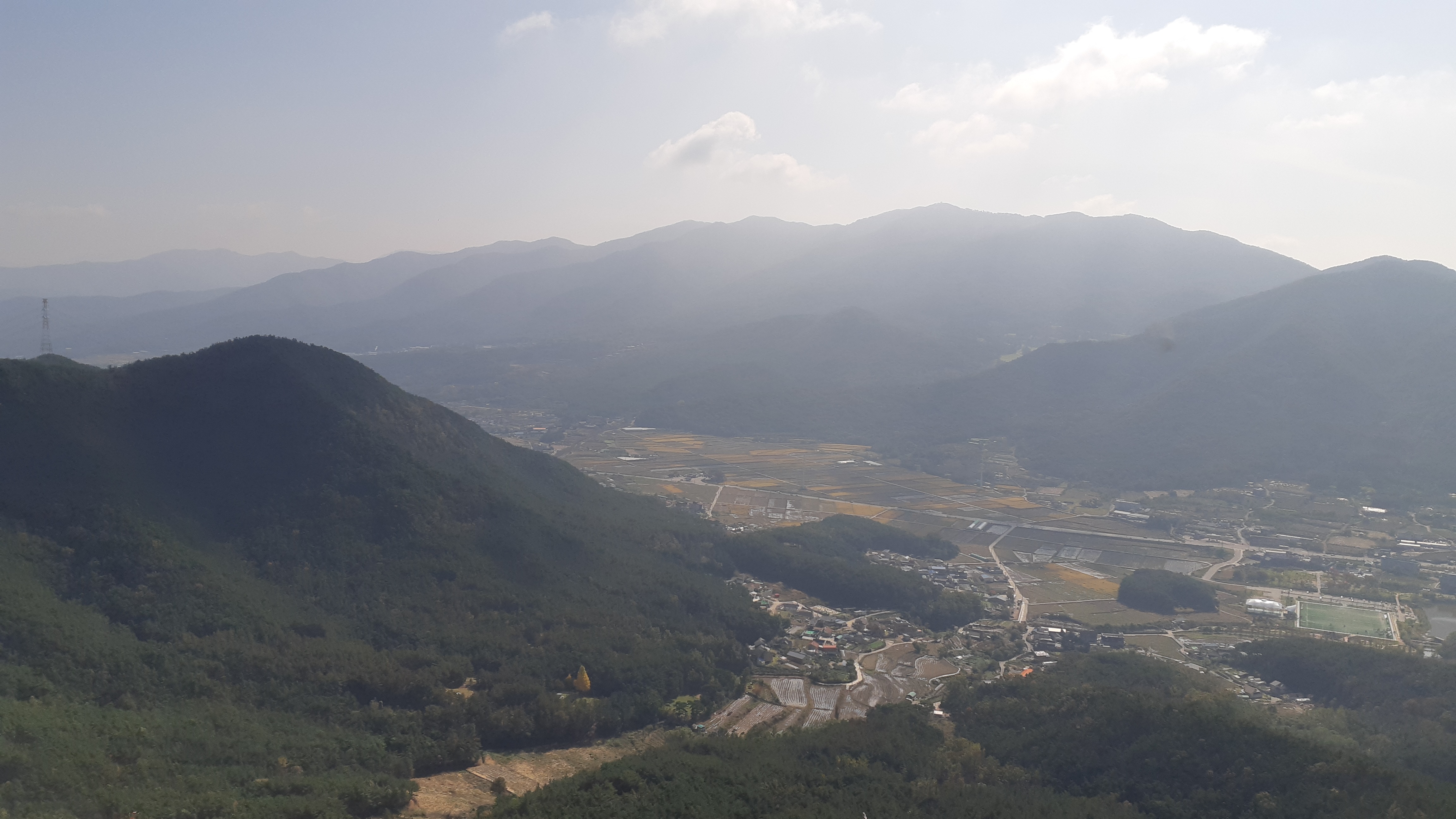 미덕암 입구에서 내려다본 구평동 방향(11:31)