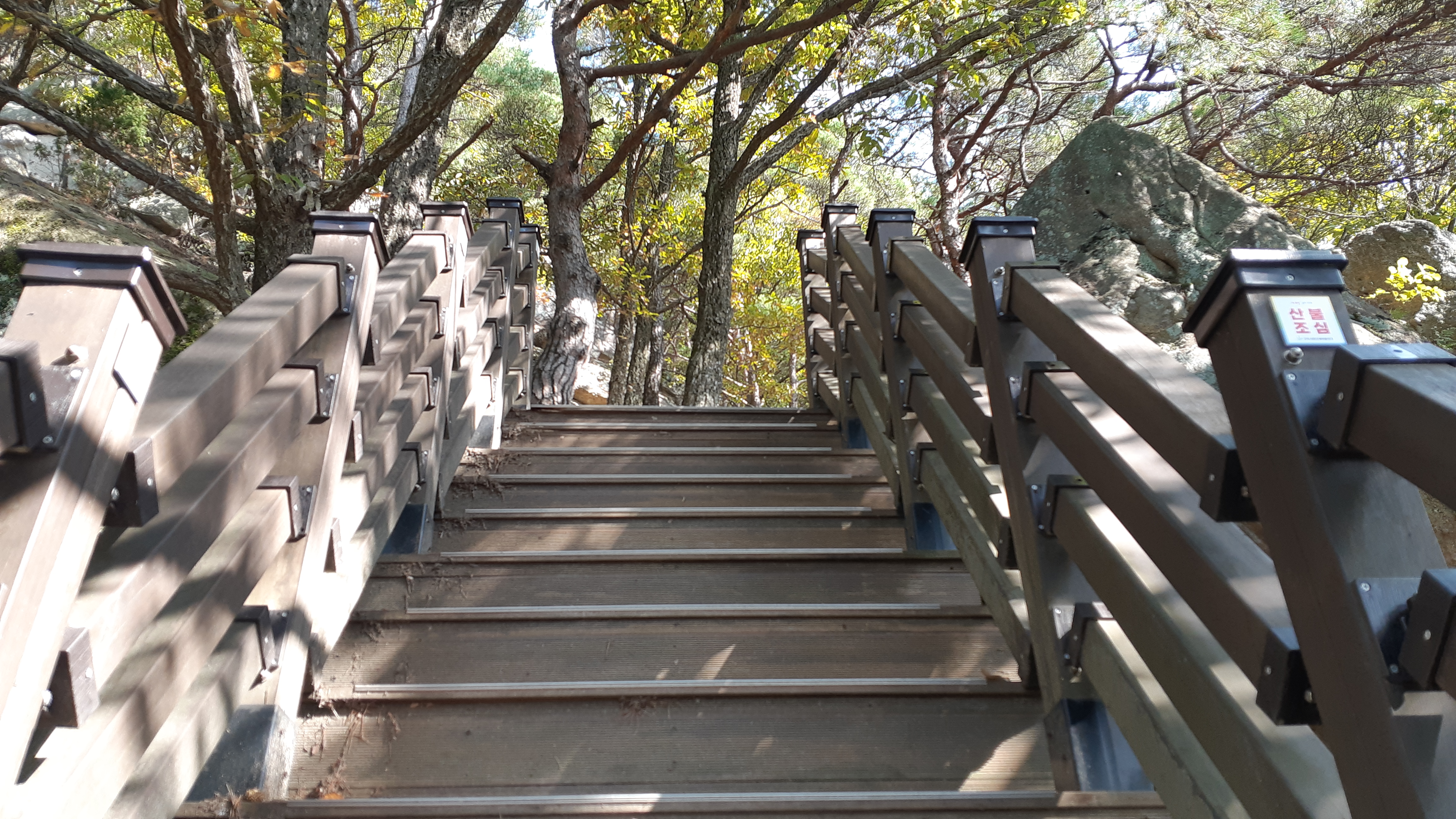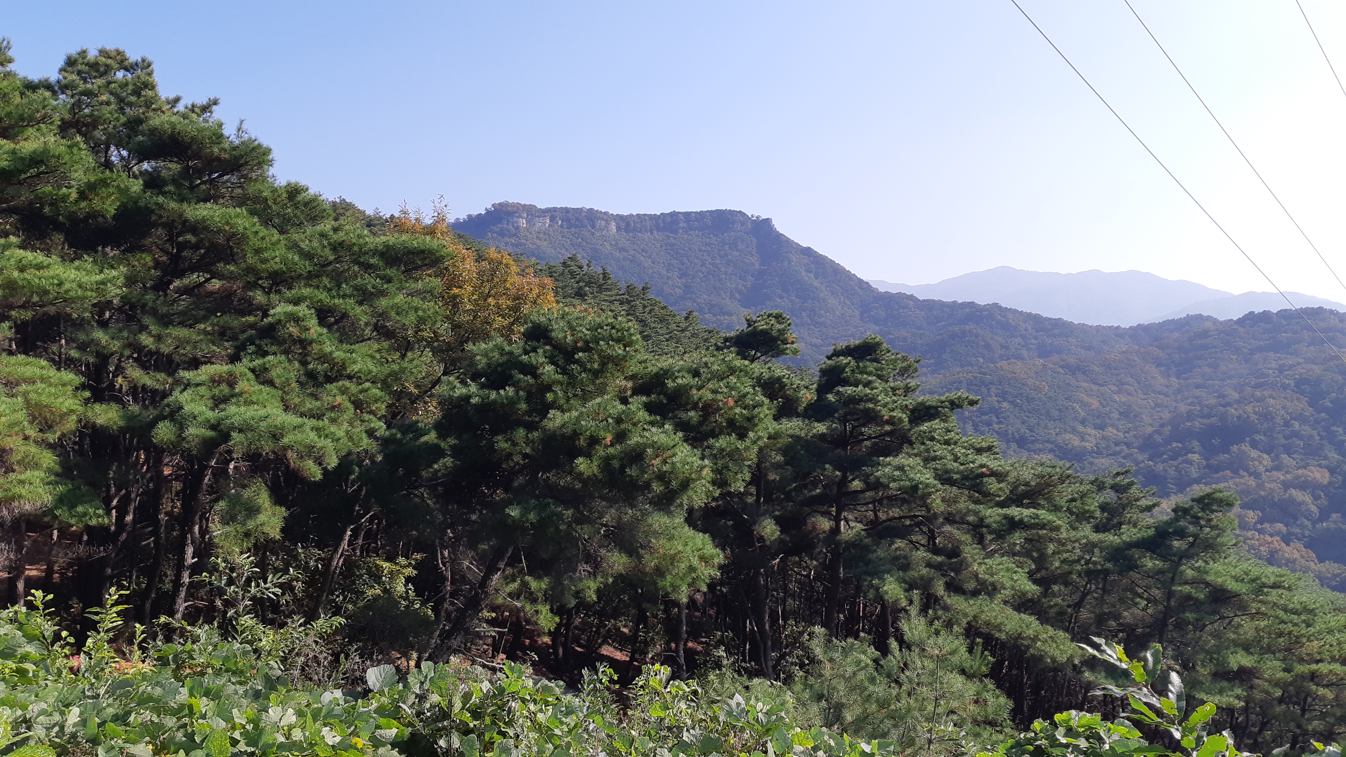 미덕암 오른길 계단에서 바라본 유학산이 보인다(11:28)
