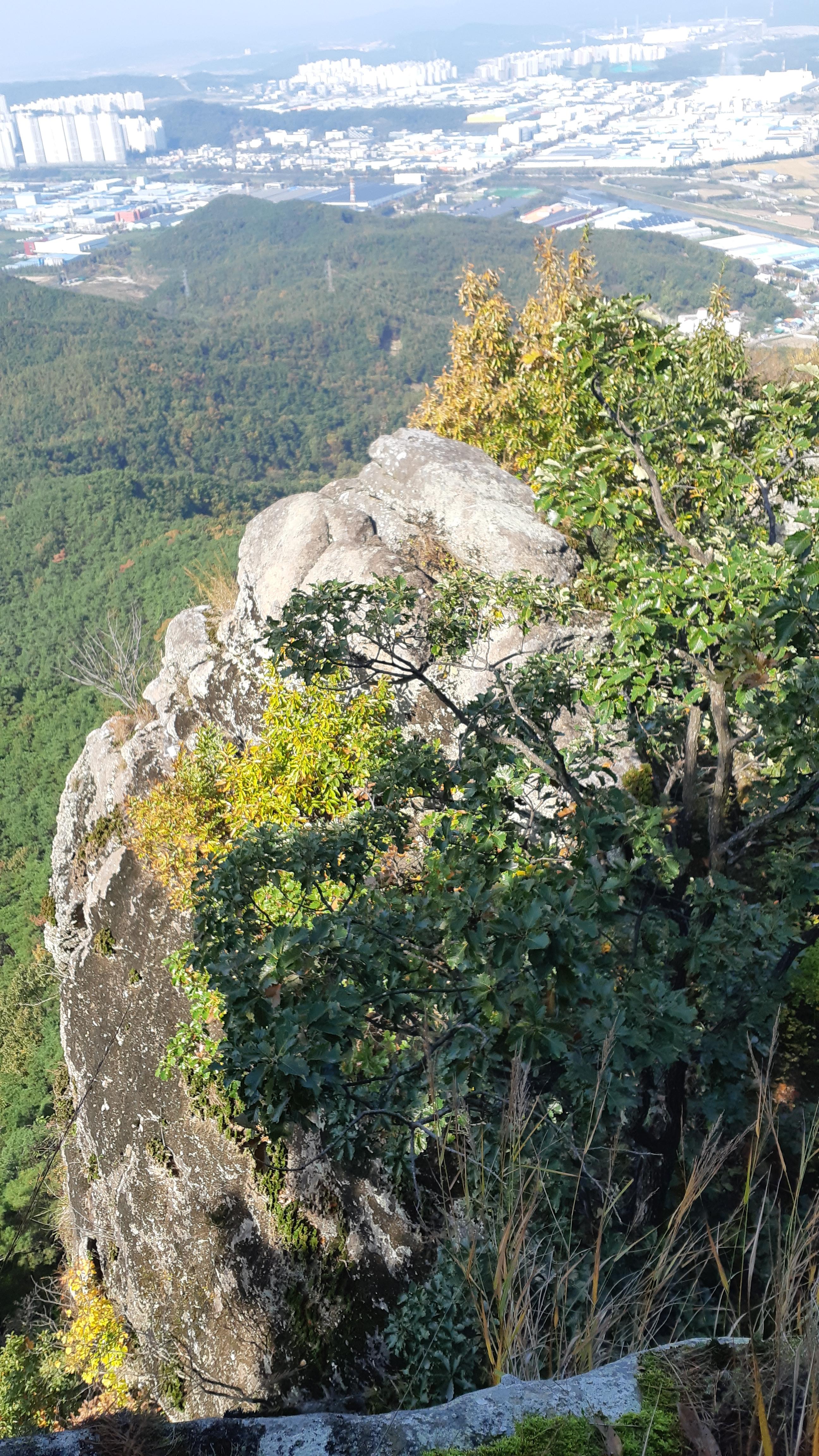 통신바위 너머로 구미시가지가 가까이 보인다(12:42)