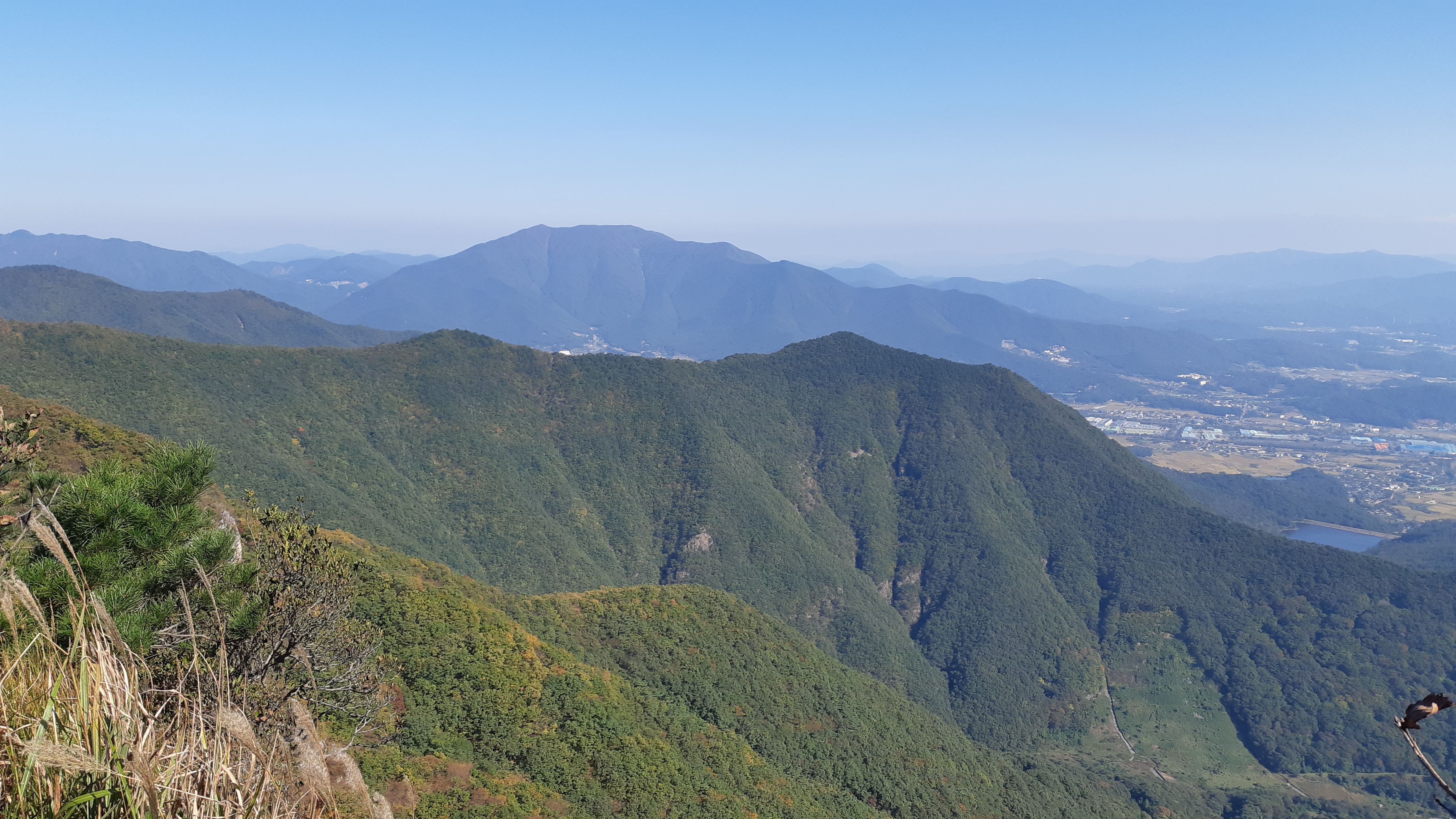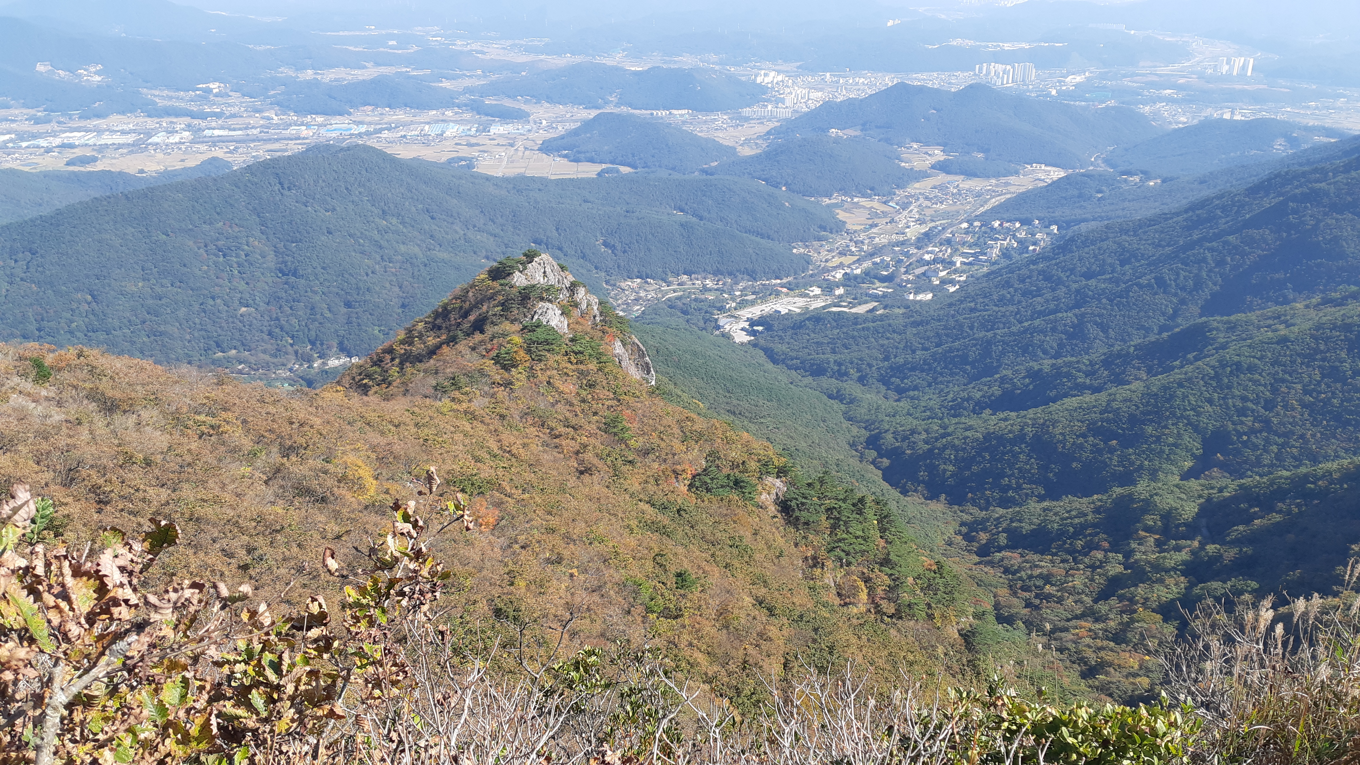 조망처에서 바라본 언양시가지와 오른쪽 멀리 문수산과 남암산이 조망된다(10:26)