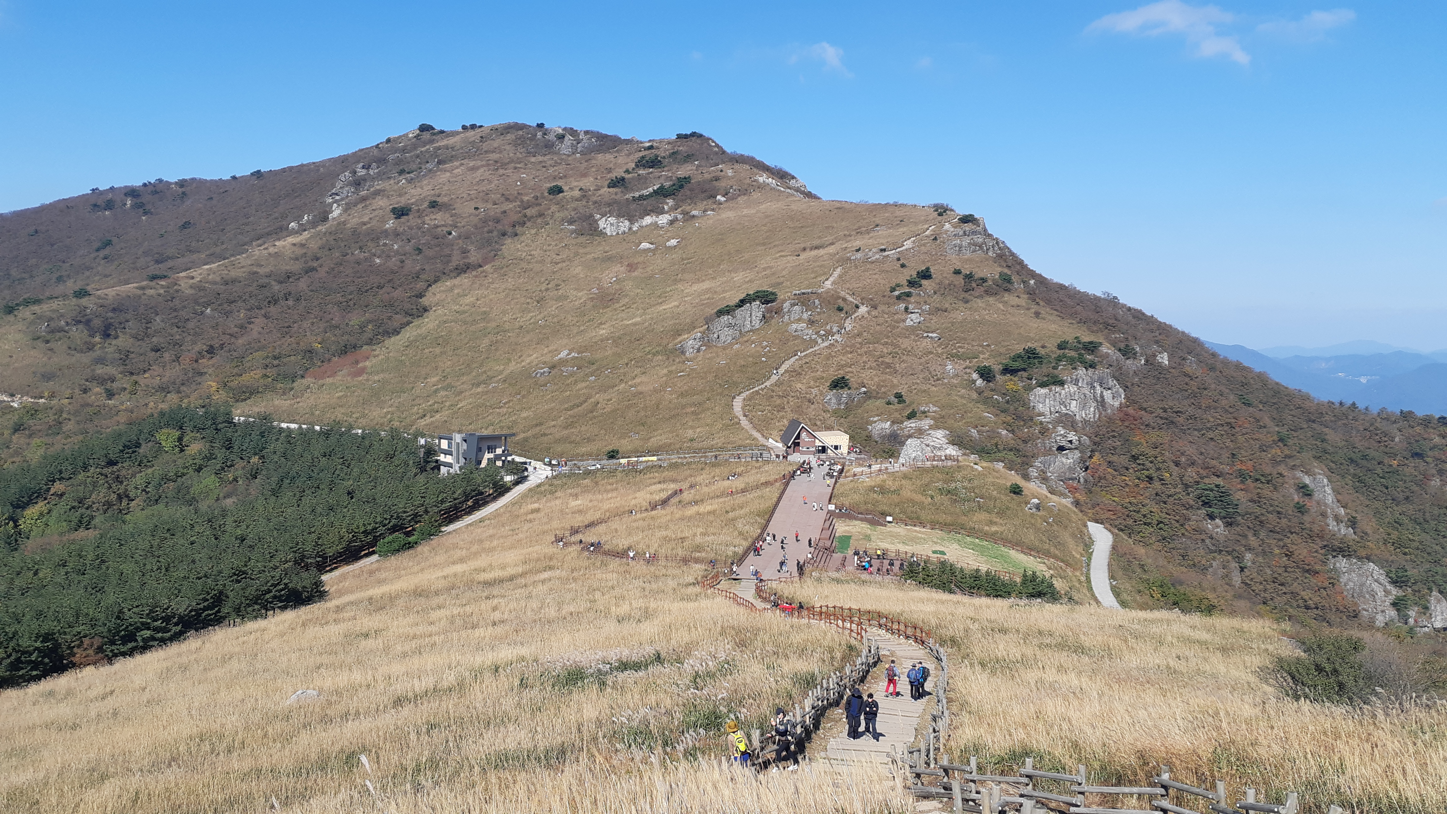 간월산을 뒤로 하고 잠시 진행하니 간월재의 억새평원이 내려다보인다(11:32)