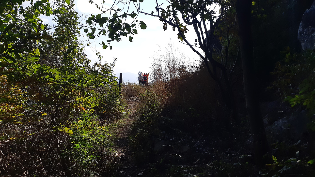 지산마을 갈림길에서 올려다본 독수리바위(14:00)