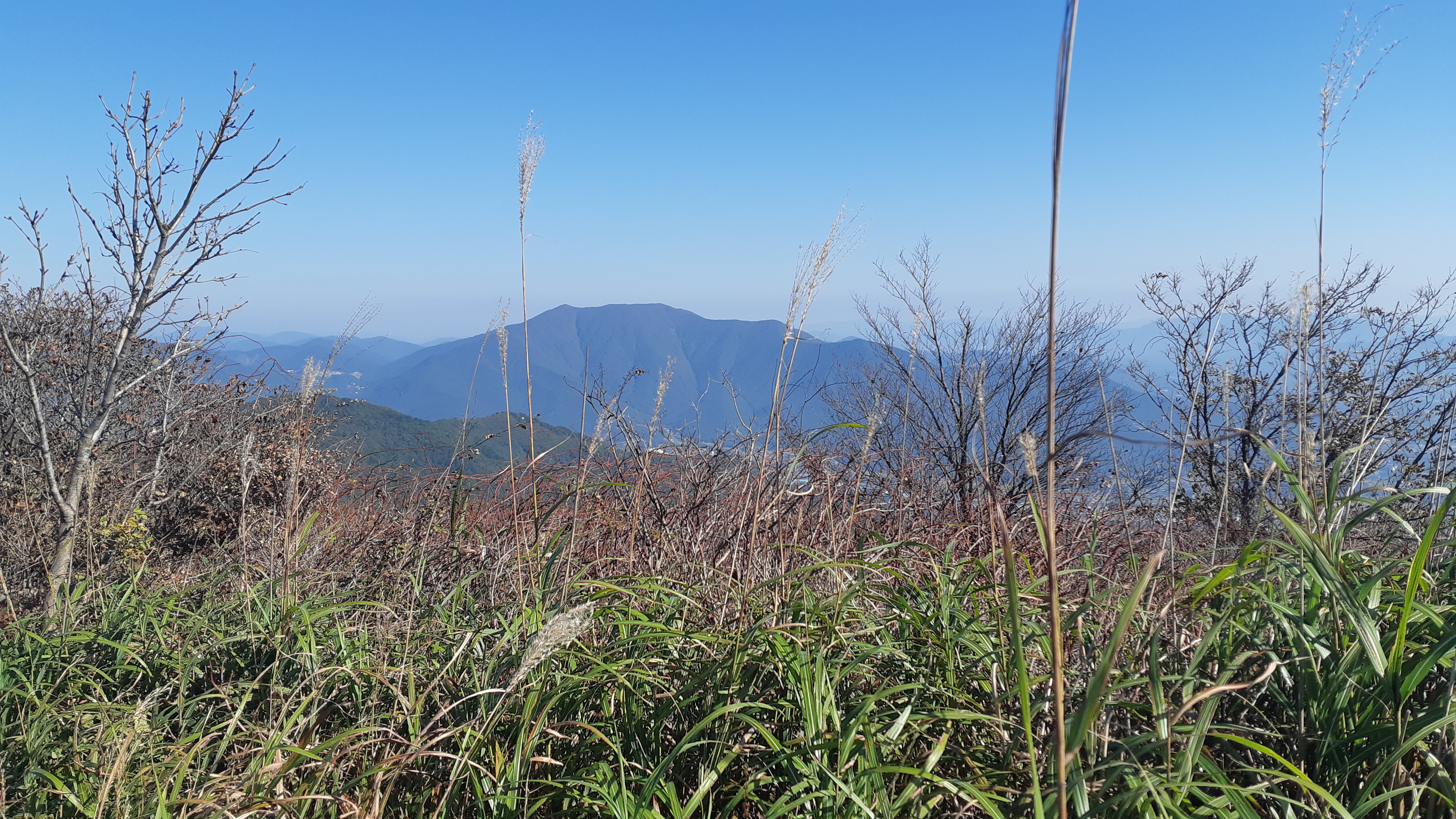 억새밭 저멀리 왼쪽 뾰족한 곳이 영축산 정상이다(13:33)