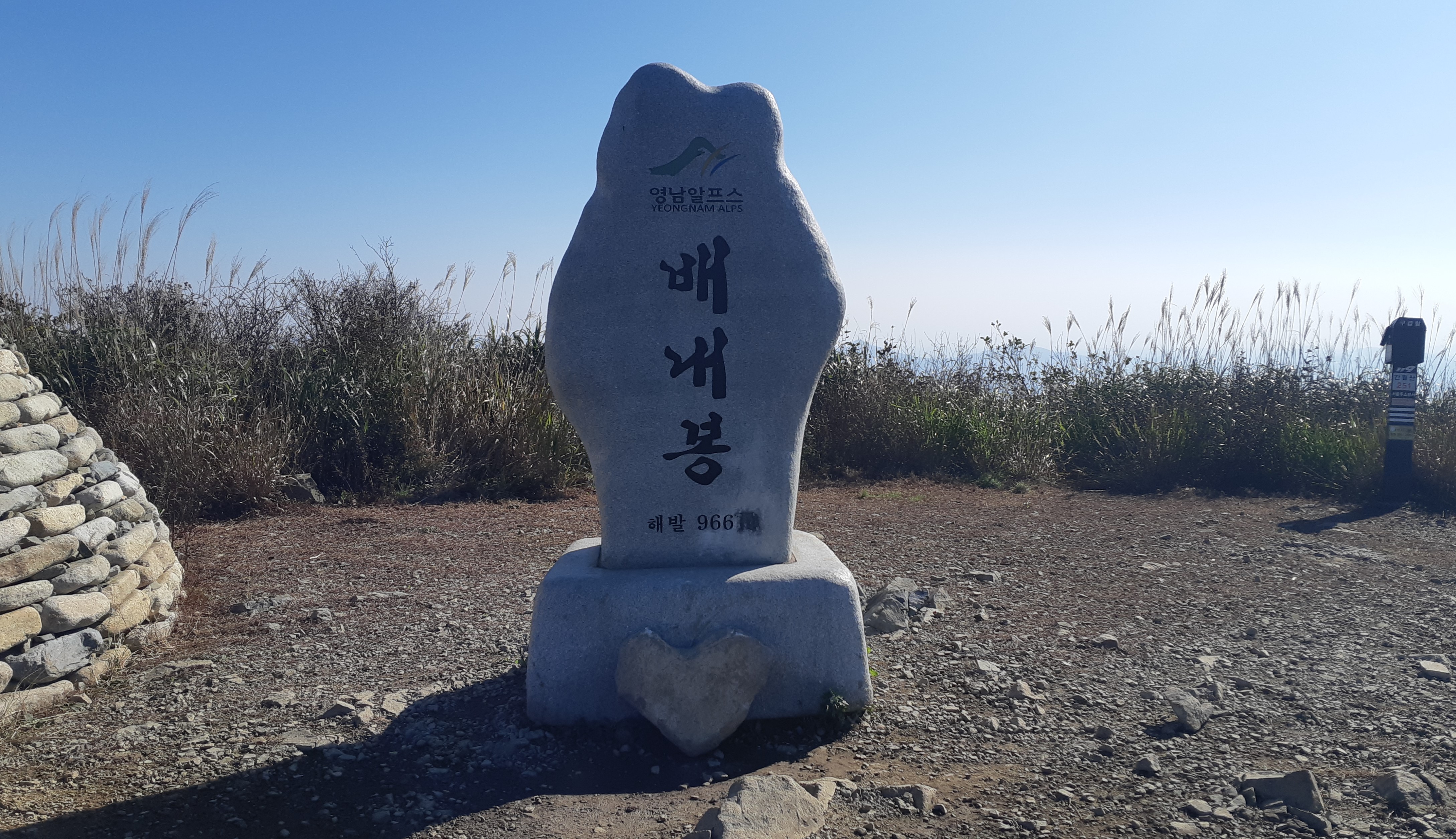 오늘은 대중교통을 이용 영남알프스 배내고개에서 배내봉~간월산~신불산~영축산을 지나 통도사가 있는 지내마을까지 산행을 하려고 한다. 접근은 동해선 전철로 부산원동역을 출발하여 태화강역에서 석남사행 직행시내버스로 갈아타고 석남사 입구에 도착하니 8시40분이다. 약 40여분 기다려 도착한 버스를 환승하여 태봉(배내골)행 울산시내버스를 이용 배내고개까지 가고 올때는 신평터미널에서 출발하는 버스를 이용하면 된다. 배내고개에서 버스에서 내린 뒤 배내봉에 올라 하늘억새길을 걸어 간월재와 신불재 그리고 단조성 부근의 억새평원을 둘러 지내마을까지 약14km 거리의 산행을 마무리 하였다.
