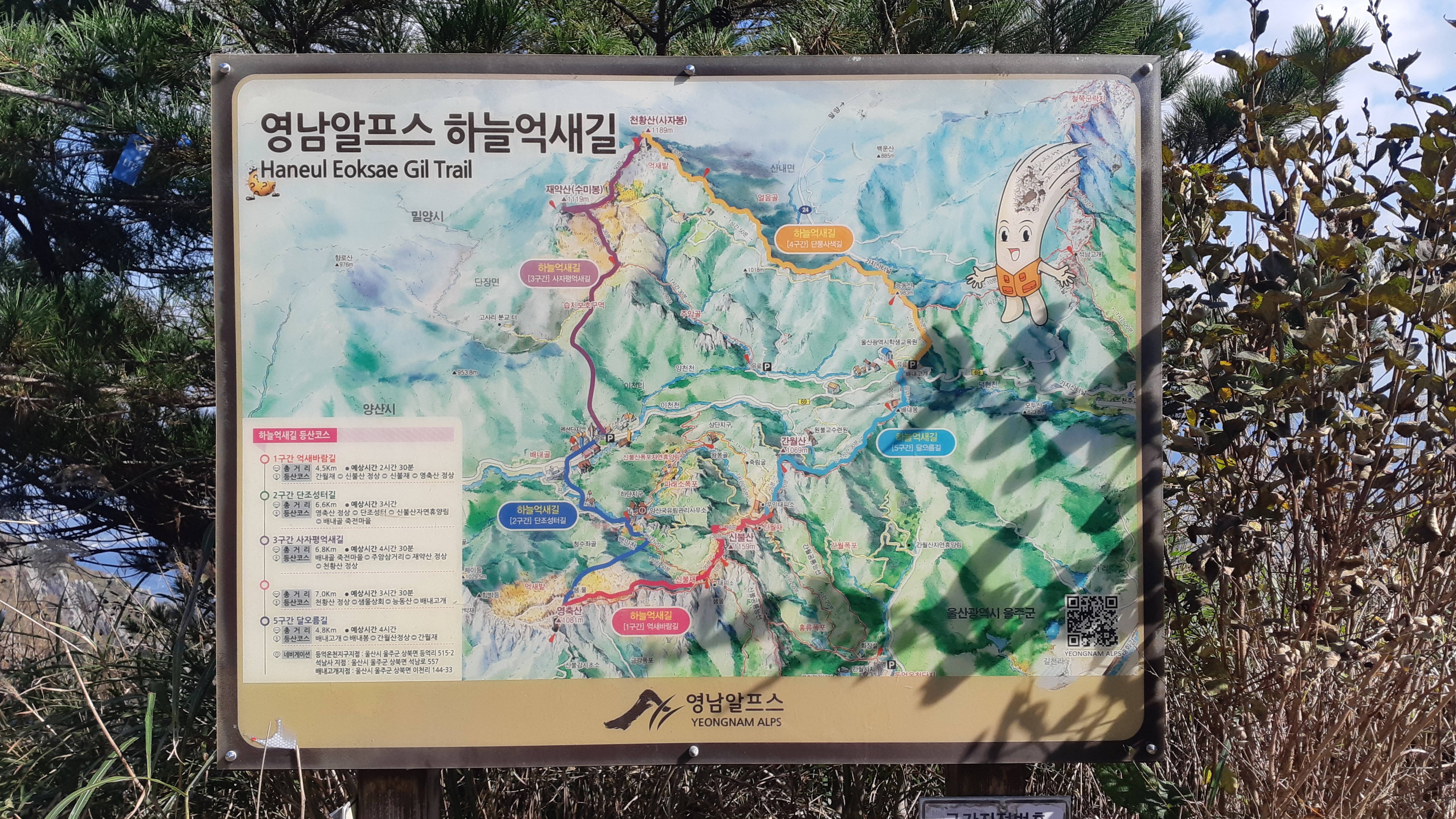 지내마을 날머리의 영축산 등산로 안내도(15:14)