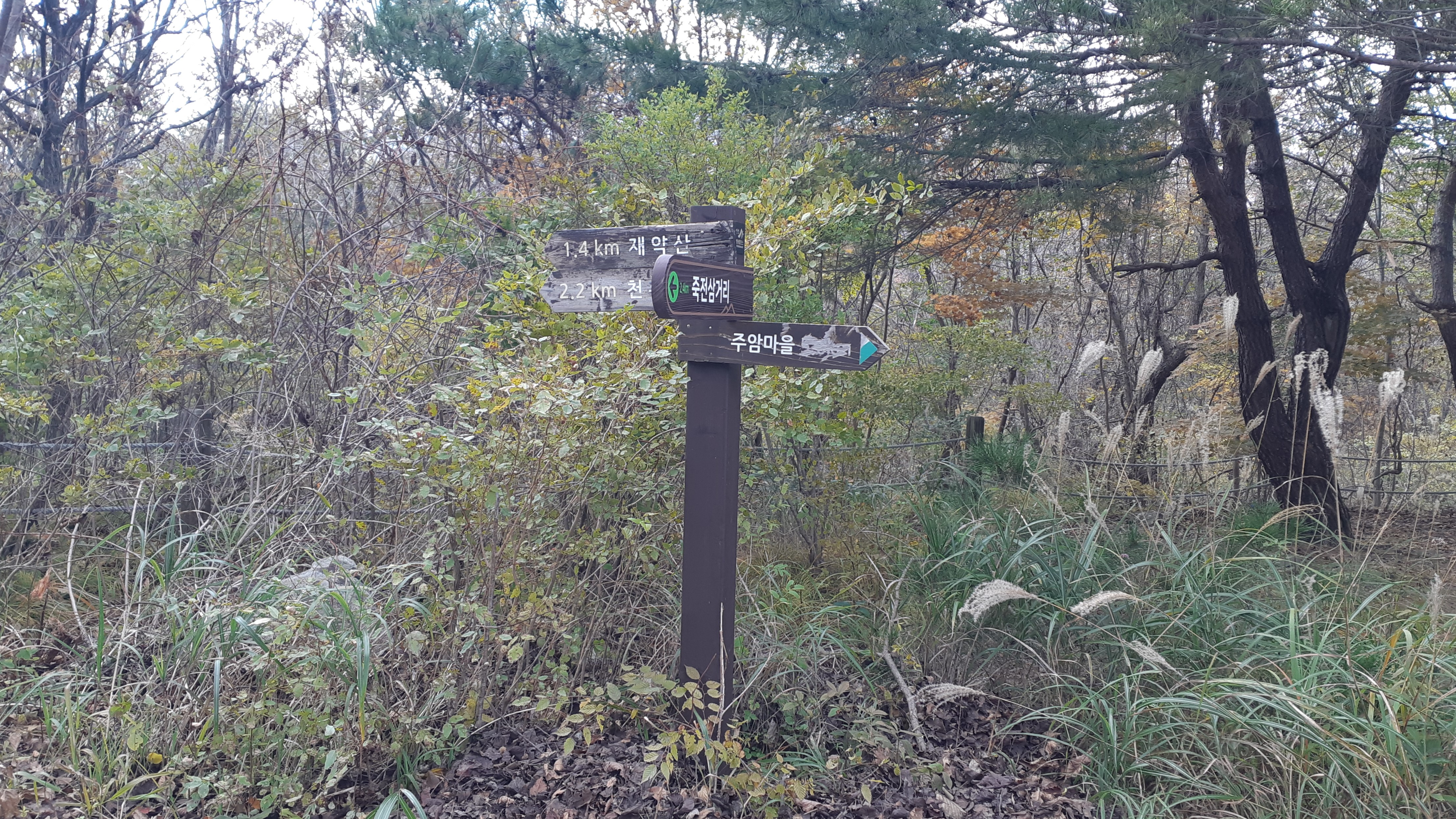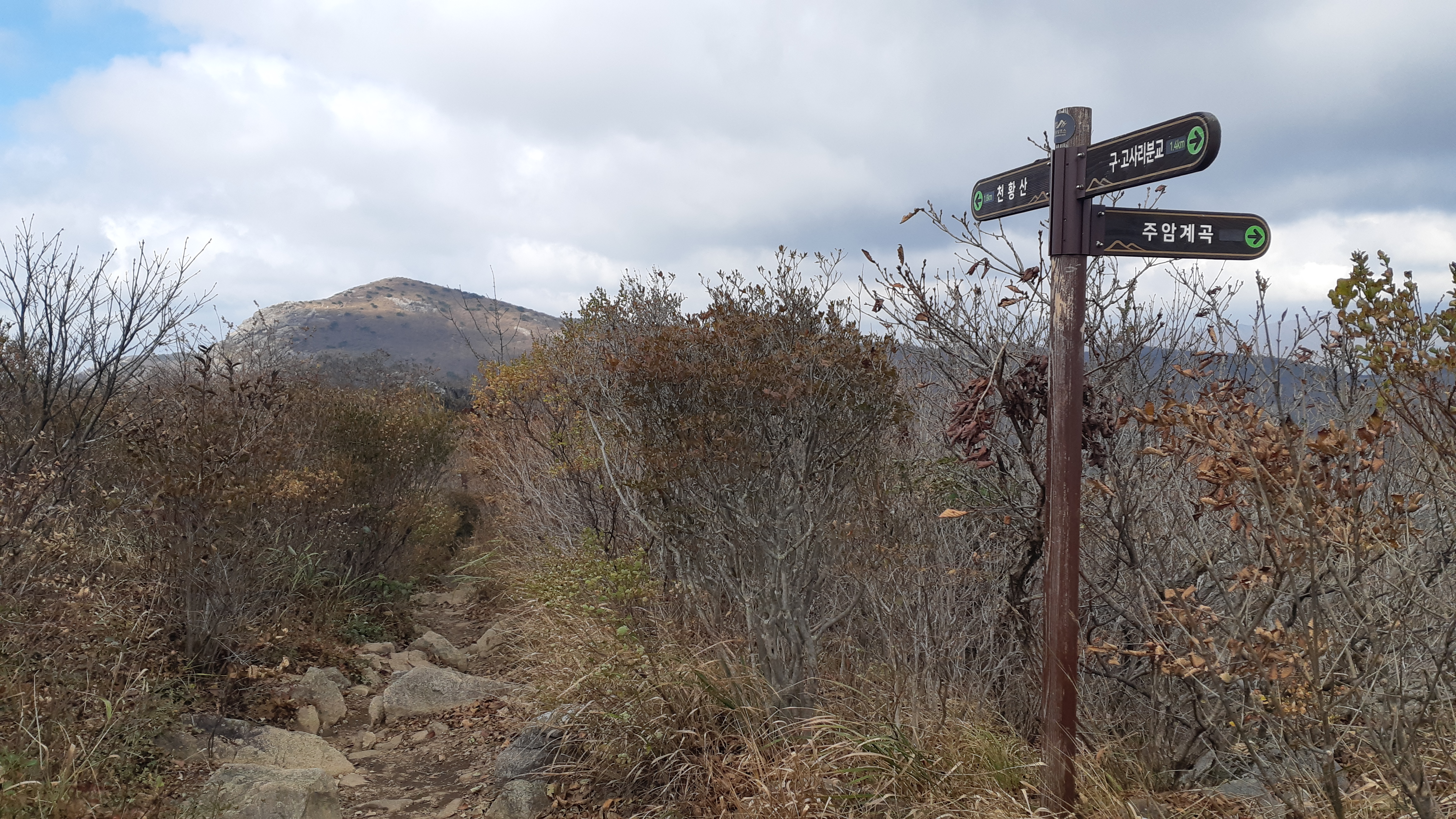 주암계곡 갈림길의 이정표(13:03)