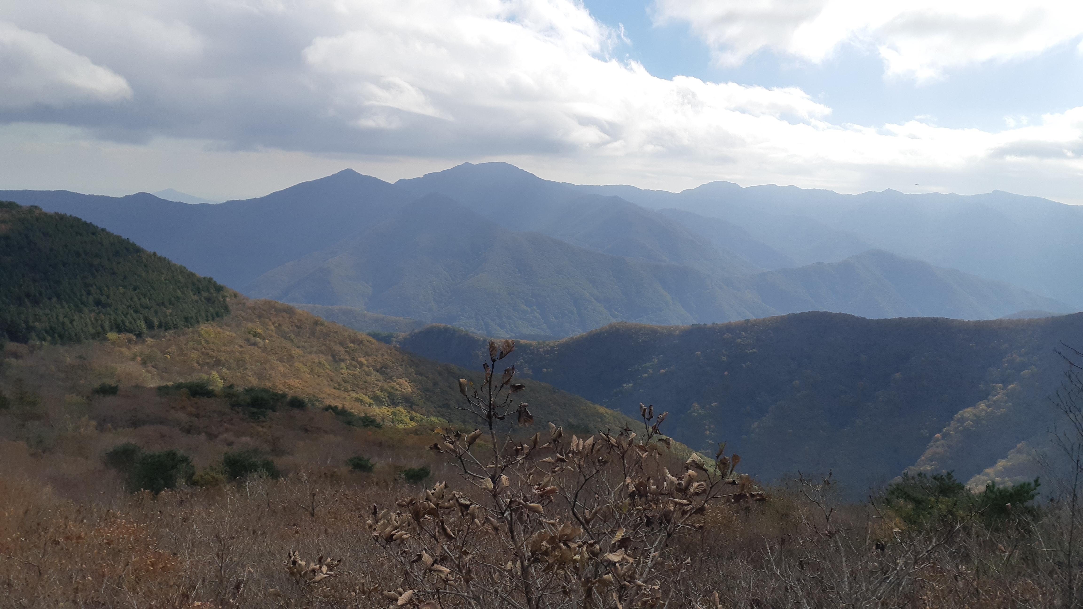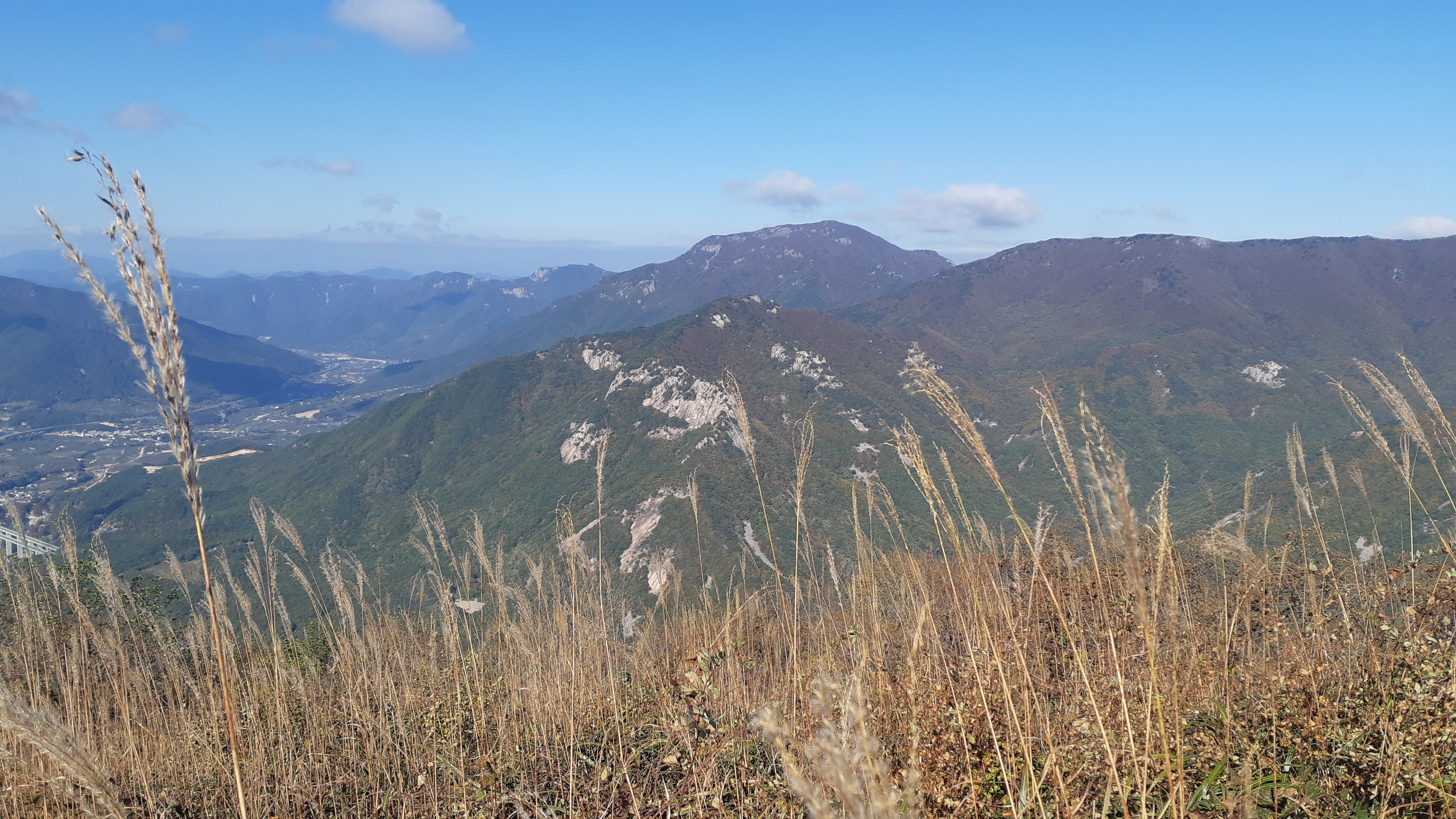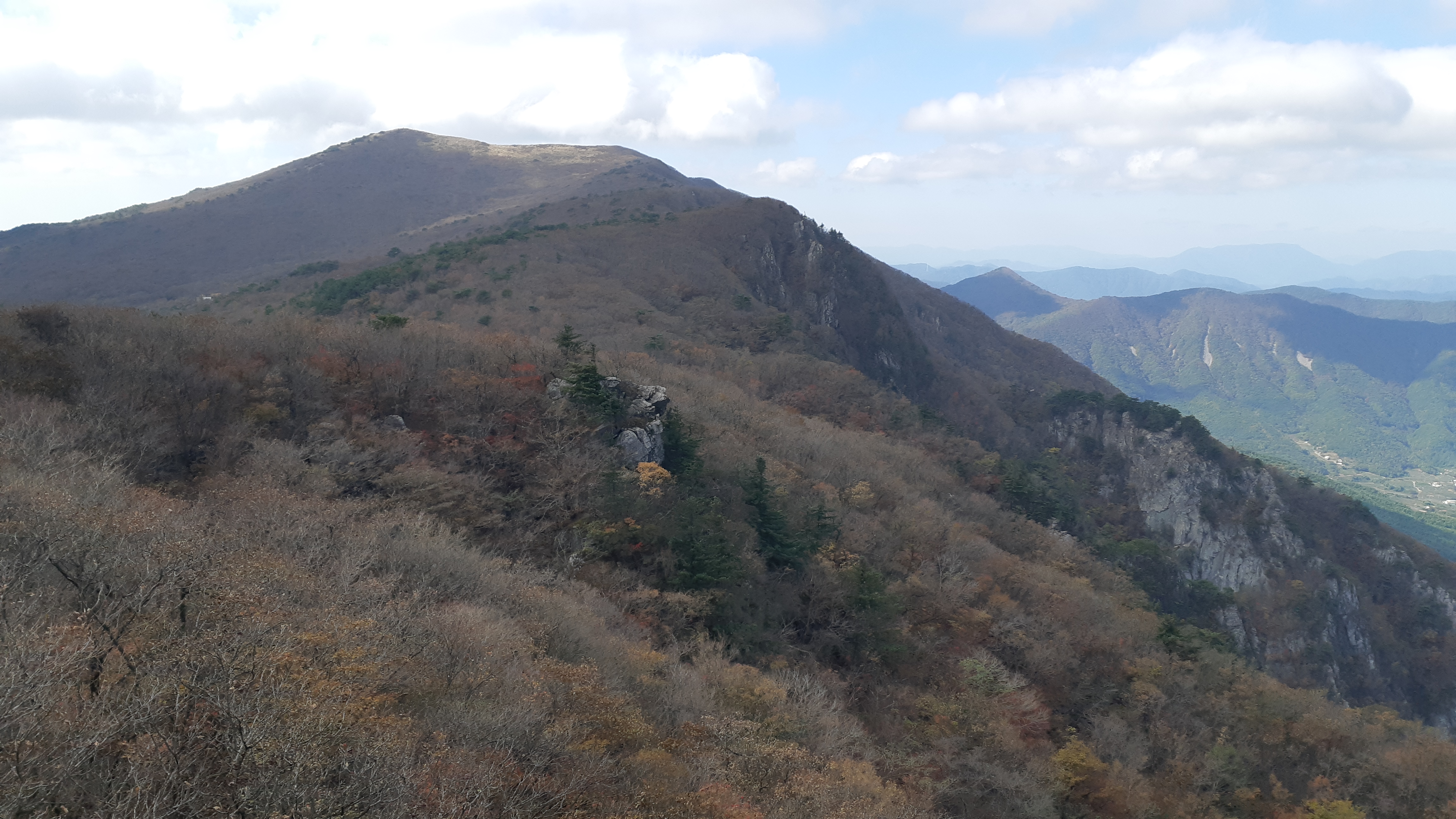 왼쪽으로 지난주 수요일(10월29일) 걸었던 배내봉에서 간월산 신불산 그리고 영축산이 조망된다(10:23)