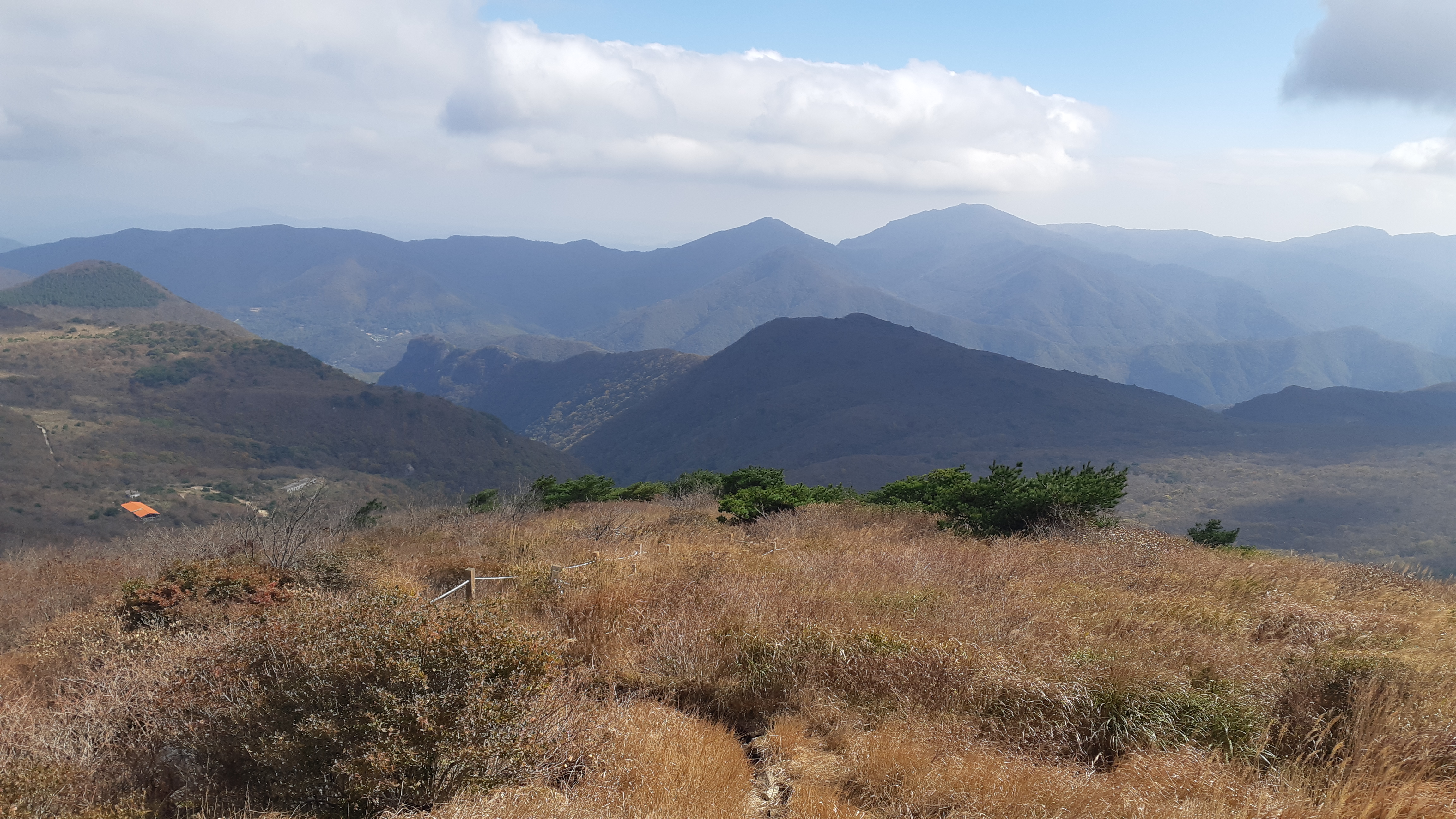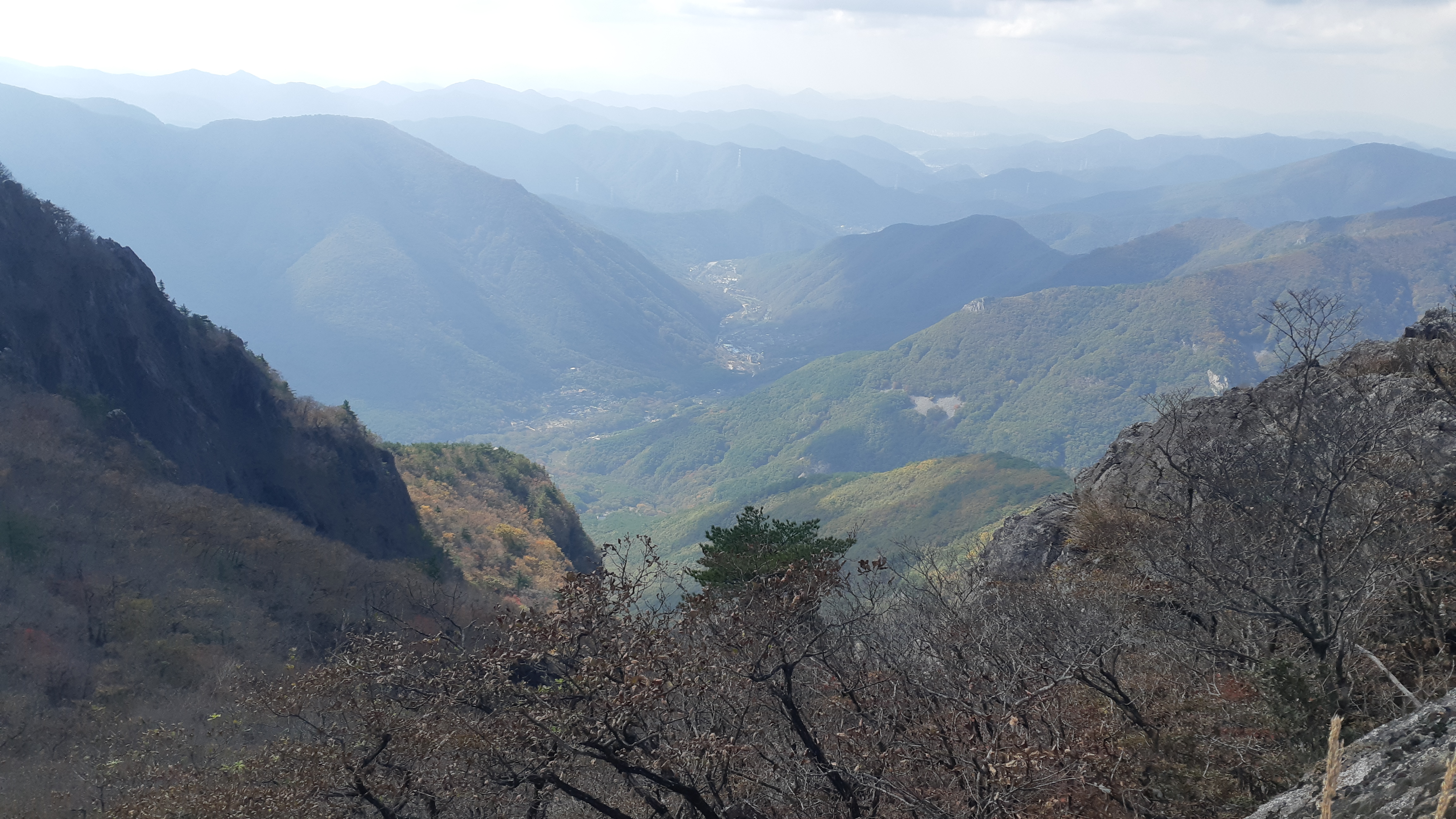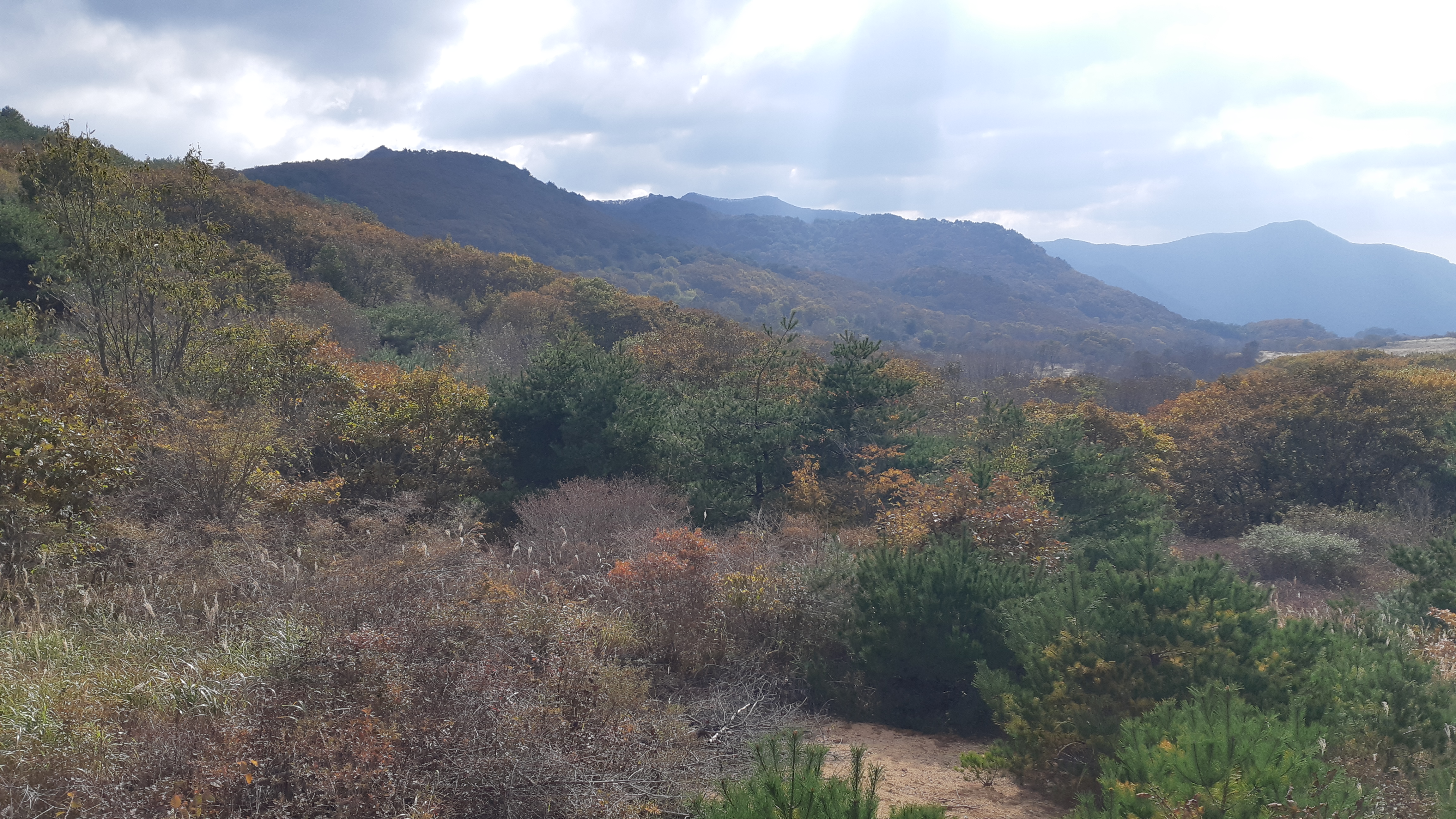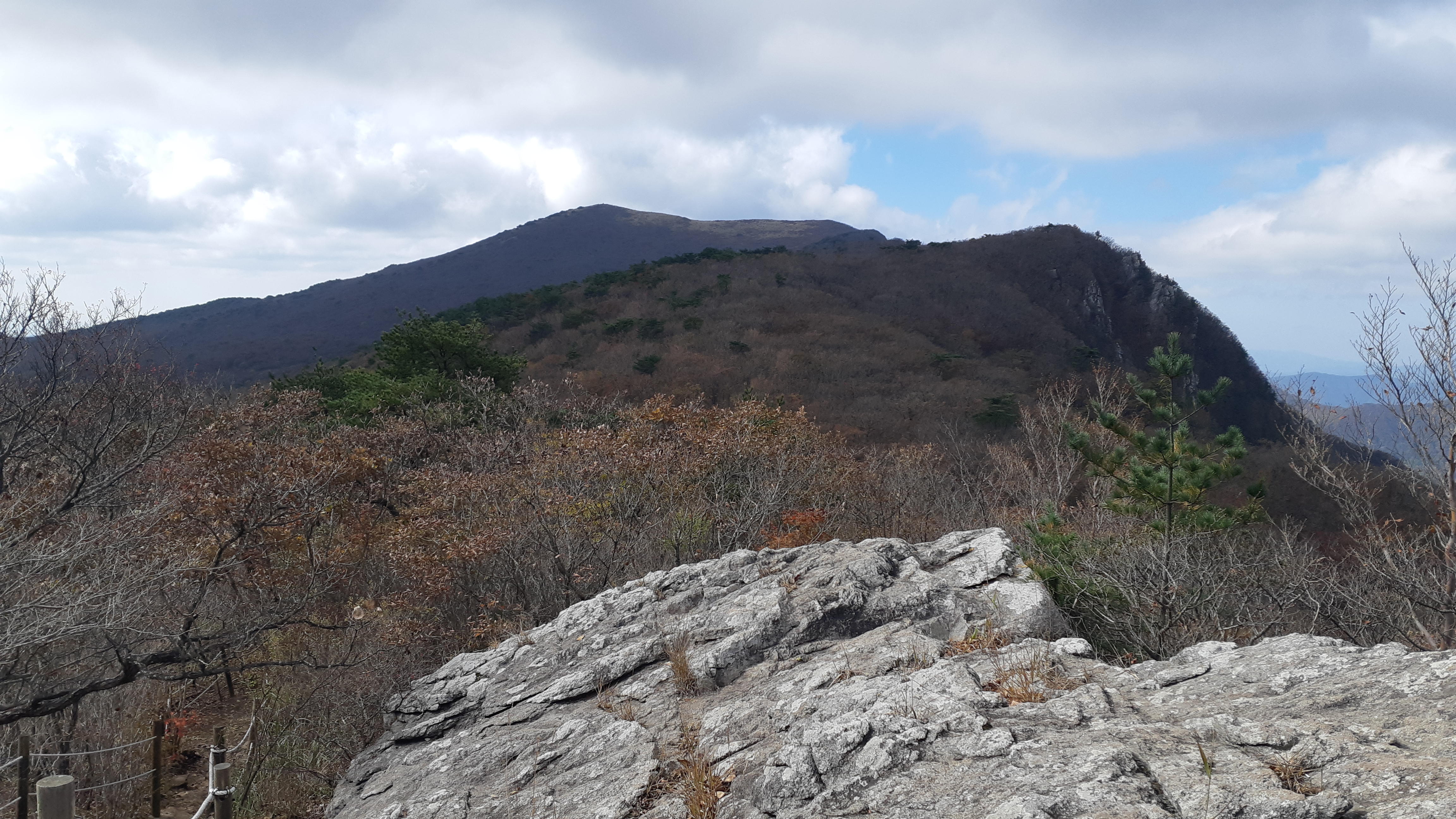 왼쪽으로 지난주 수요일(10월29일) 걸었던 배내봉에서 간월산 신불산 그리고 영축산이 조망된다(10:23)