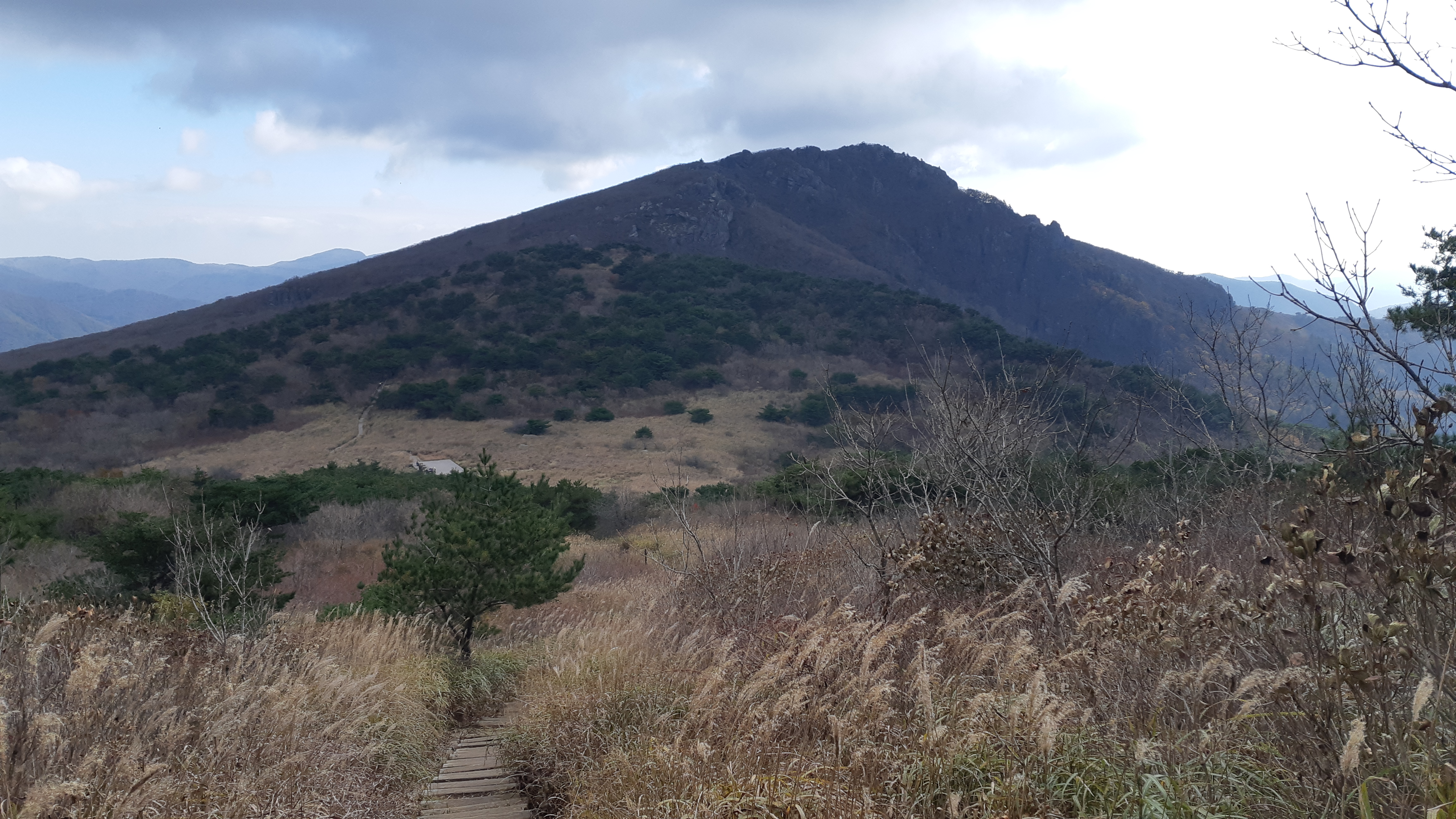 억새밭 너머로 고개를 내민 재약산(13:35)