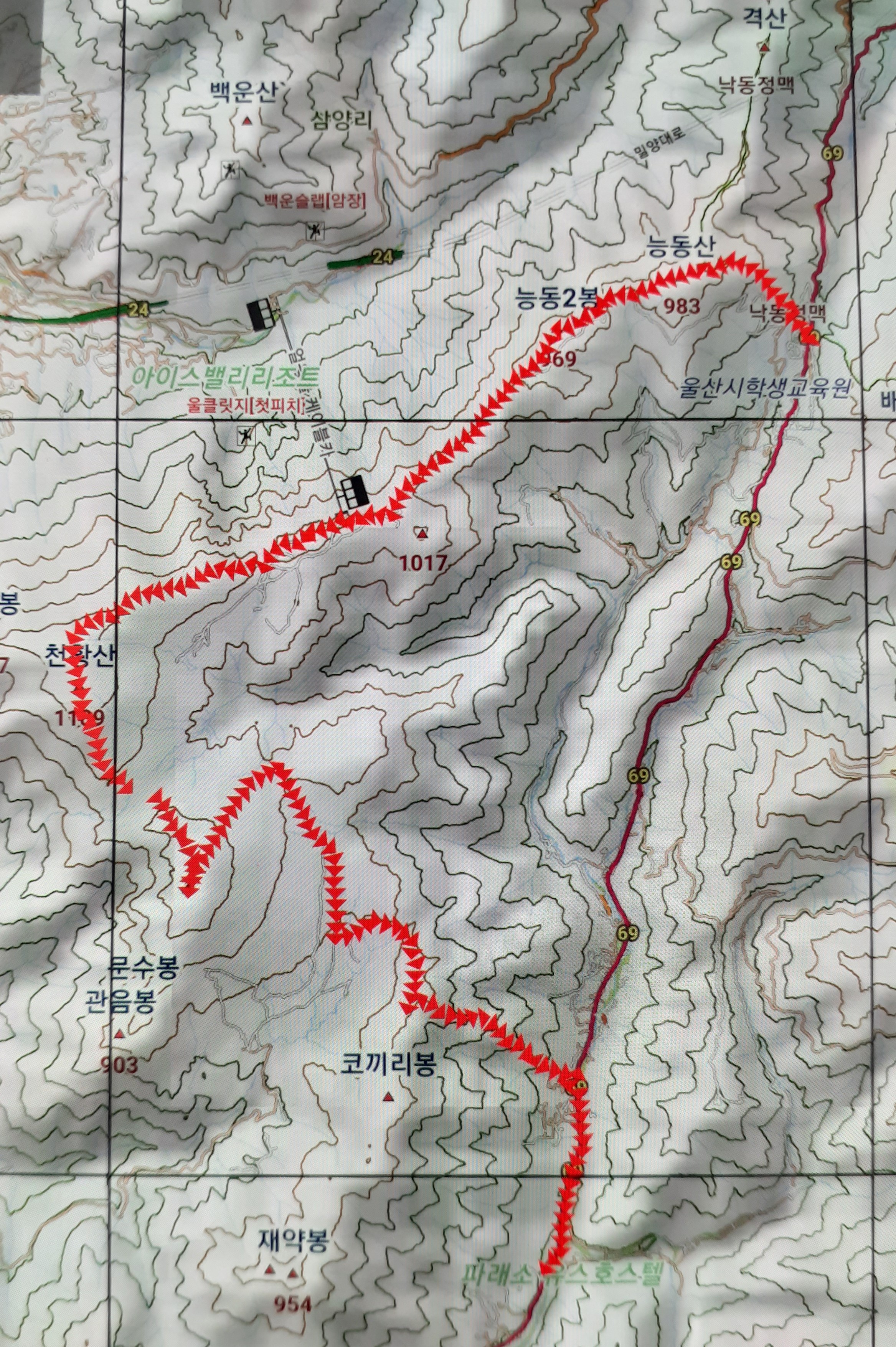 2. 오른산 : 능동산(983m), 능동2봉(968m), 천황산(1,189m), 재약산(1,108m)