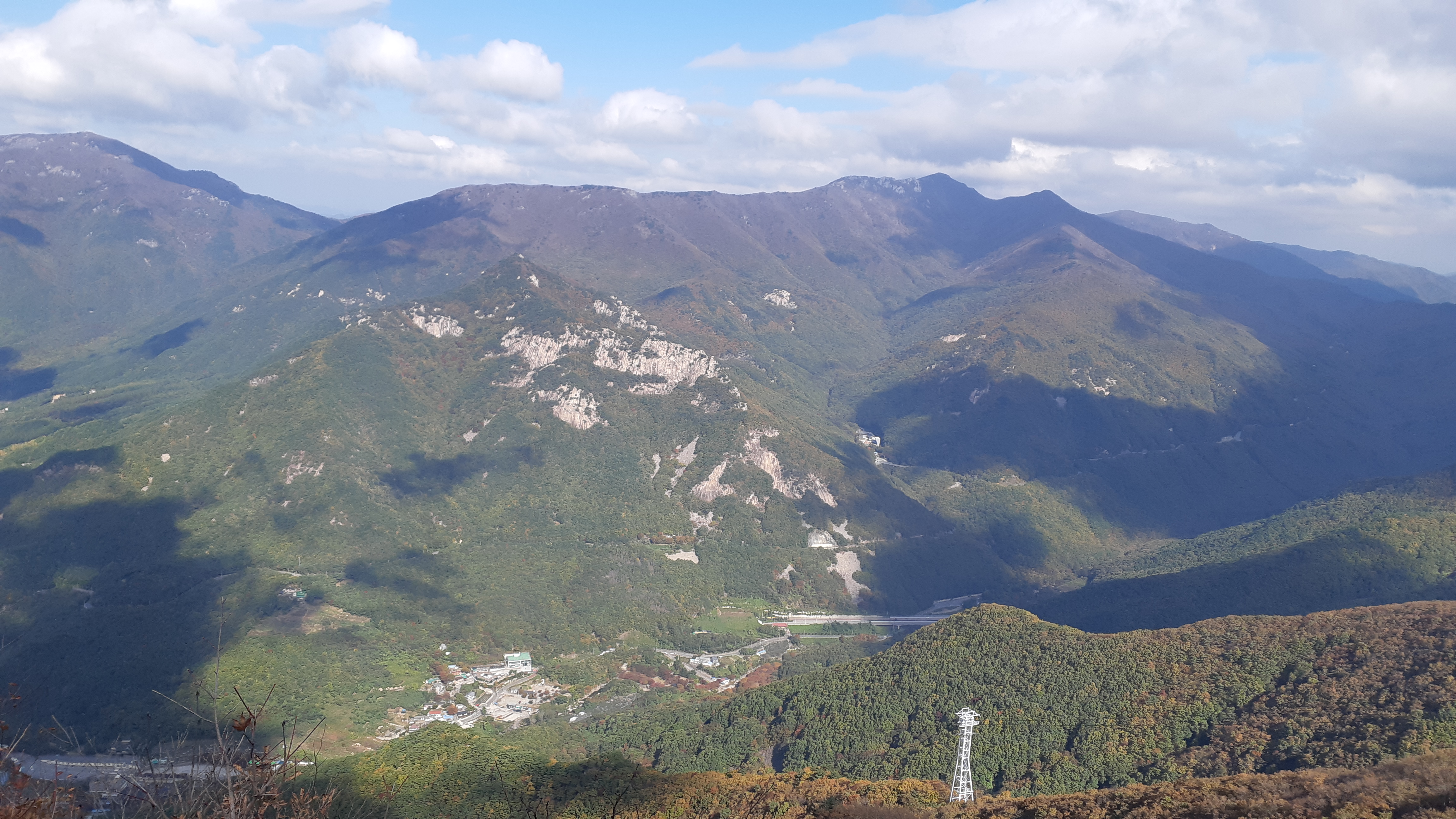 하늘정원에서 바라본 남명리와 뒤로는 정승봉(11:00)