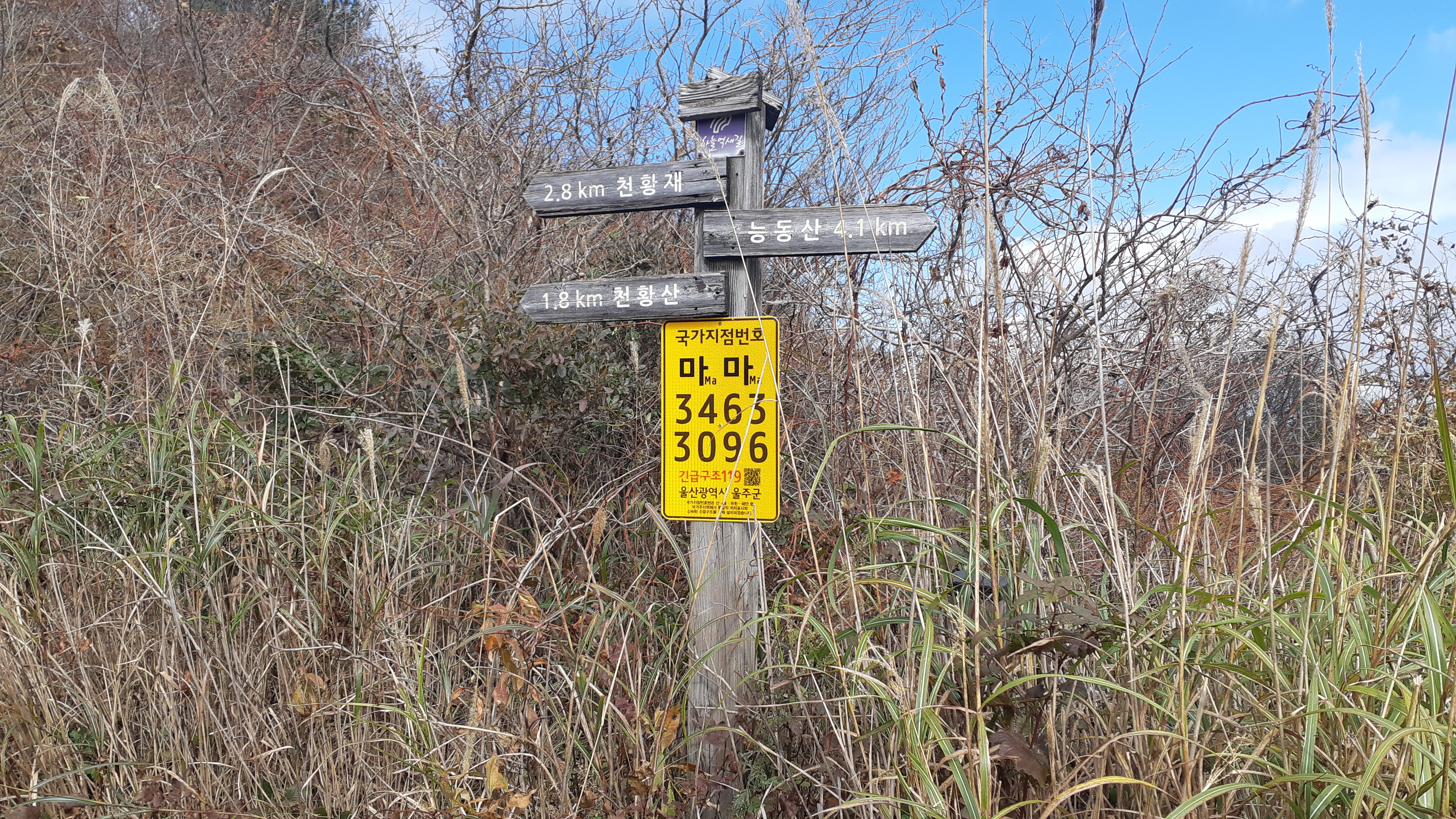 천황재 갈림길의 이정표(13:18)