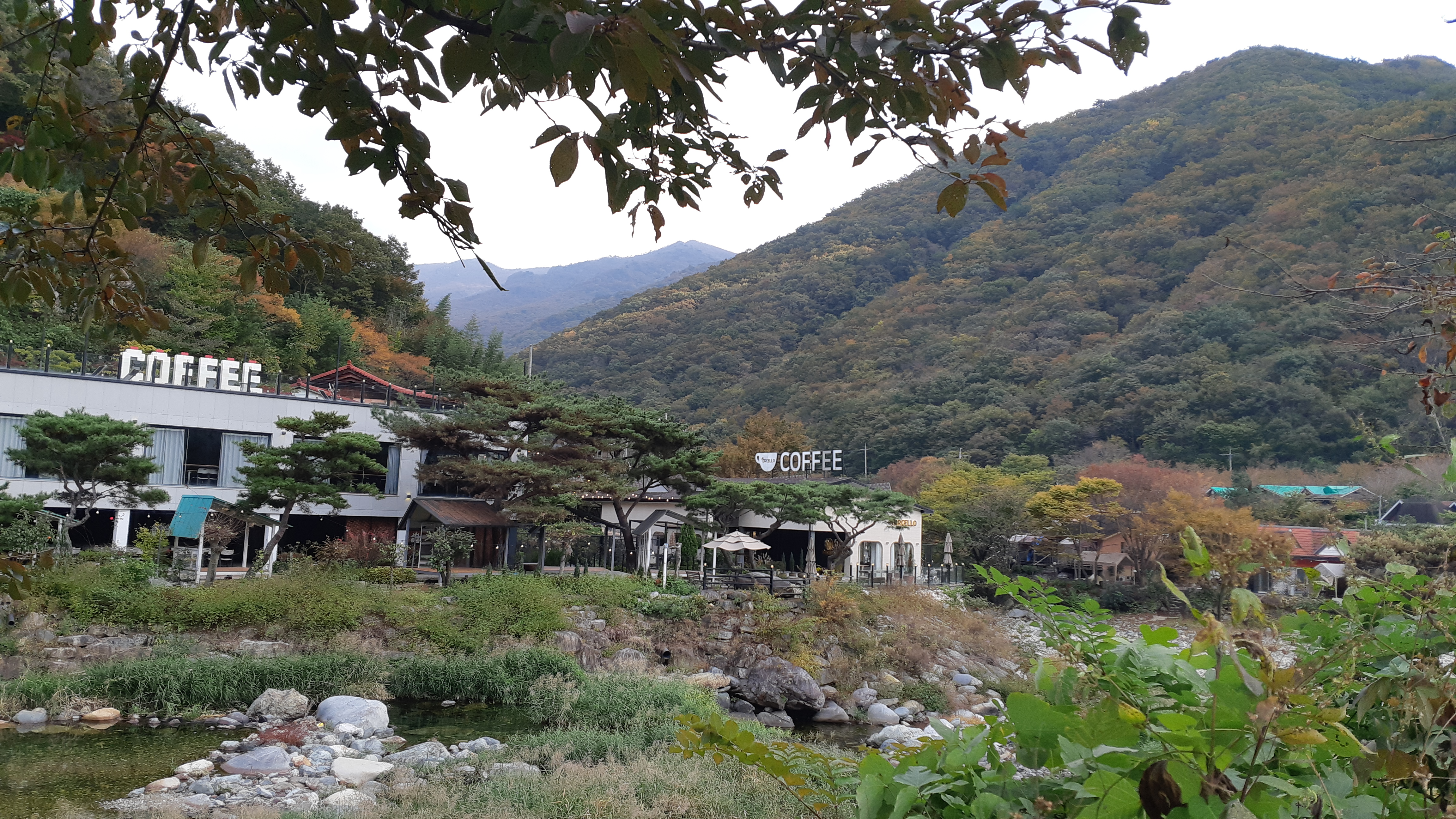커피점 계곡 안쪽이 국립신불산자연휴양림이 자리한다(15:10)