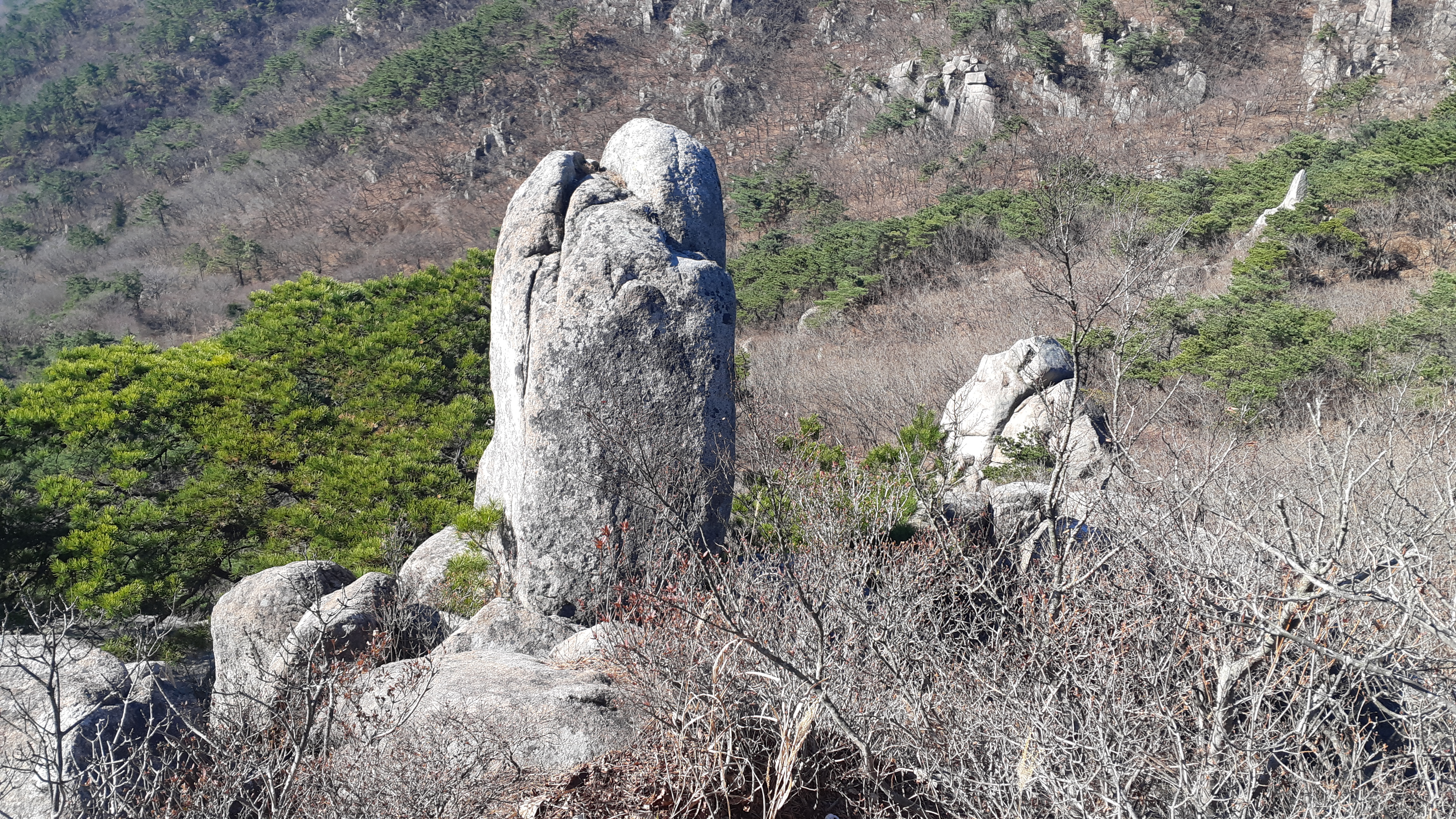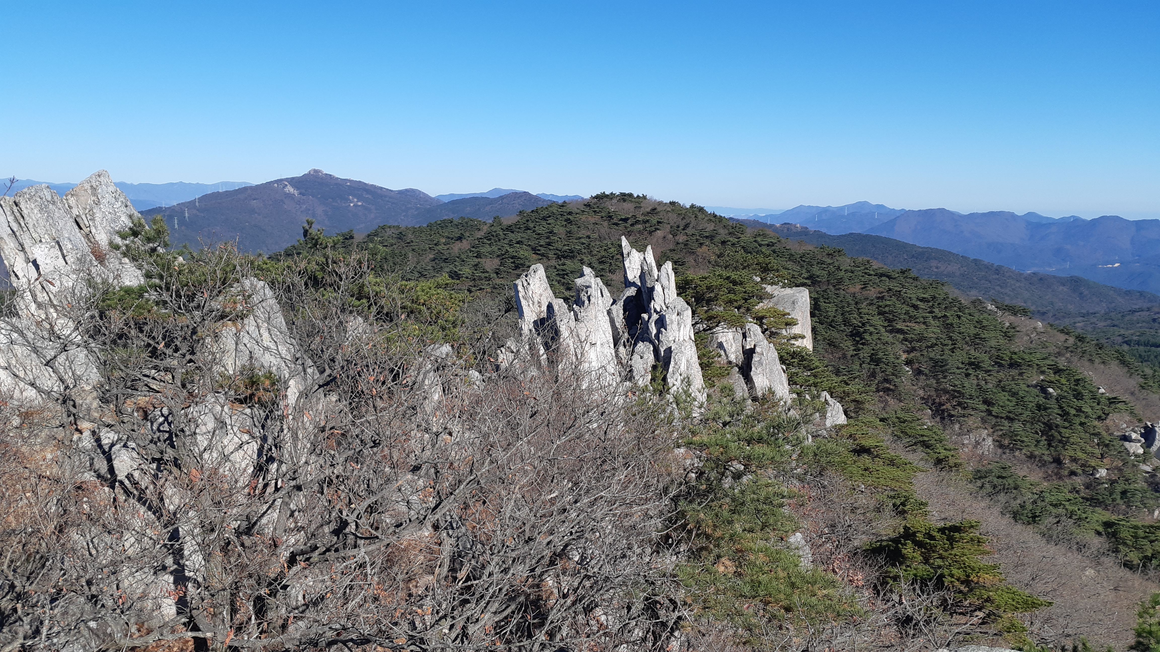 상계봉 정상에서 바라본 닭벼슬바위(11:30)