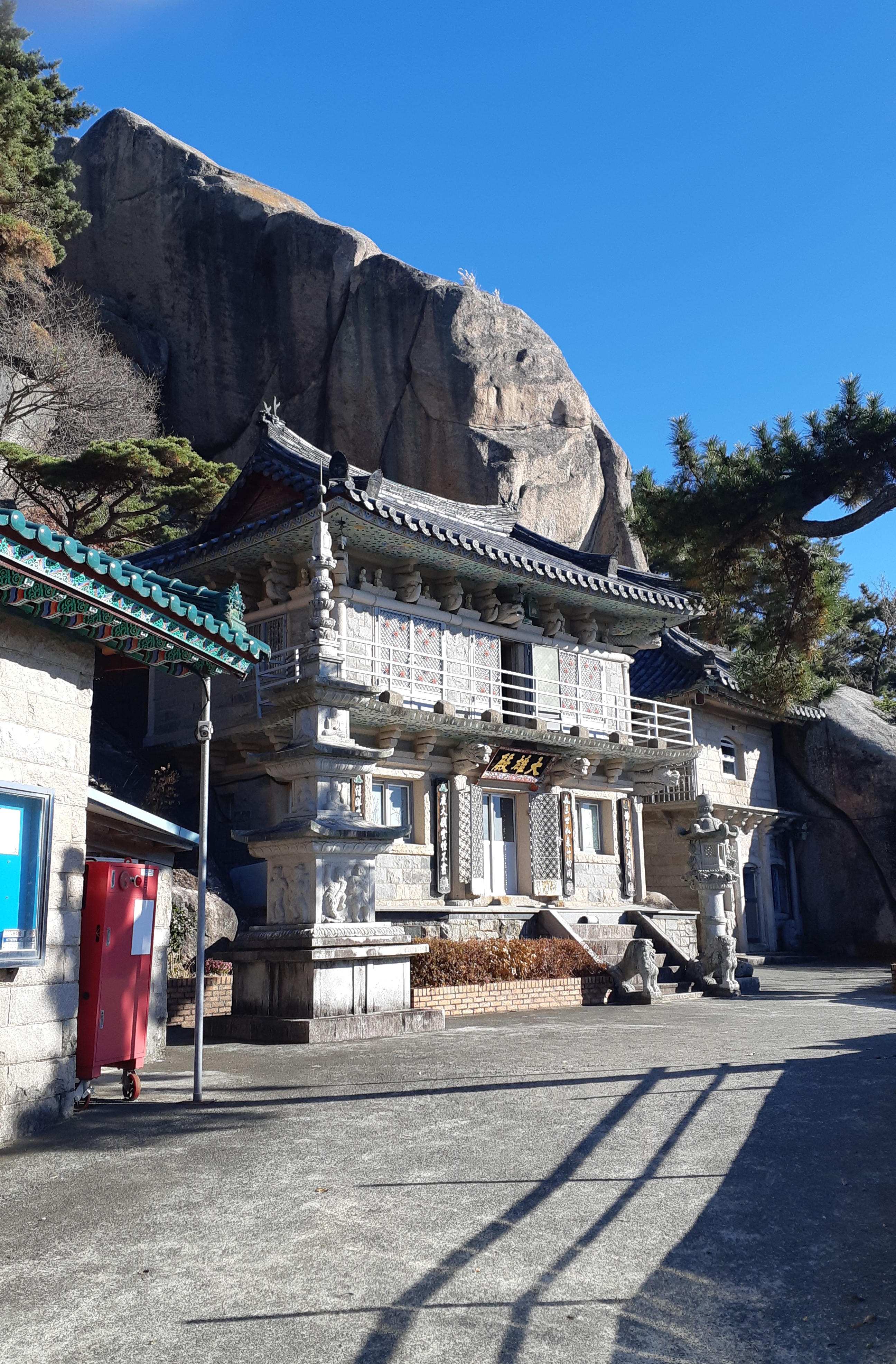 오늘은 부산의 진산인 금정산 자락인 상계봉으로 향한다. 전철 동해선과 도시철도 3호선을 환승 만덕역에서 내려 만덕 민속 오리마을 지나 병풍암 석불사를 향하면서 본격적인 산행이 시작된다. 만덕역을 출발 약1시간 걸려 석불사에 도착하여 잠시 둘러보고 이어 상계봉에서 남문으로 이어지는 능선에 도착한다. 능선에 오르니 가까이 상계봉이 바라보이고 주위는 기암들의 전시장이나 다름없다.