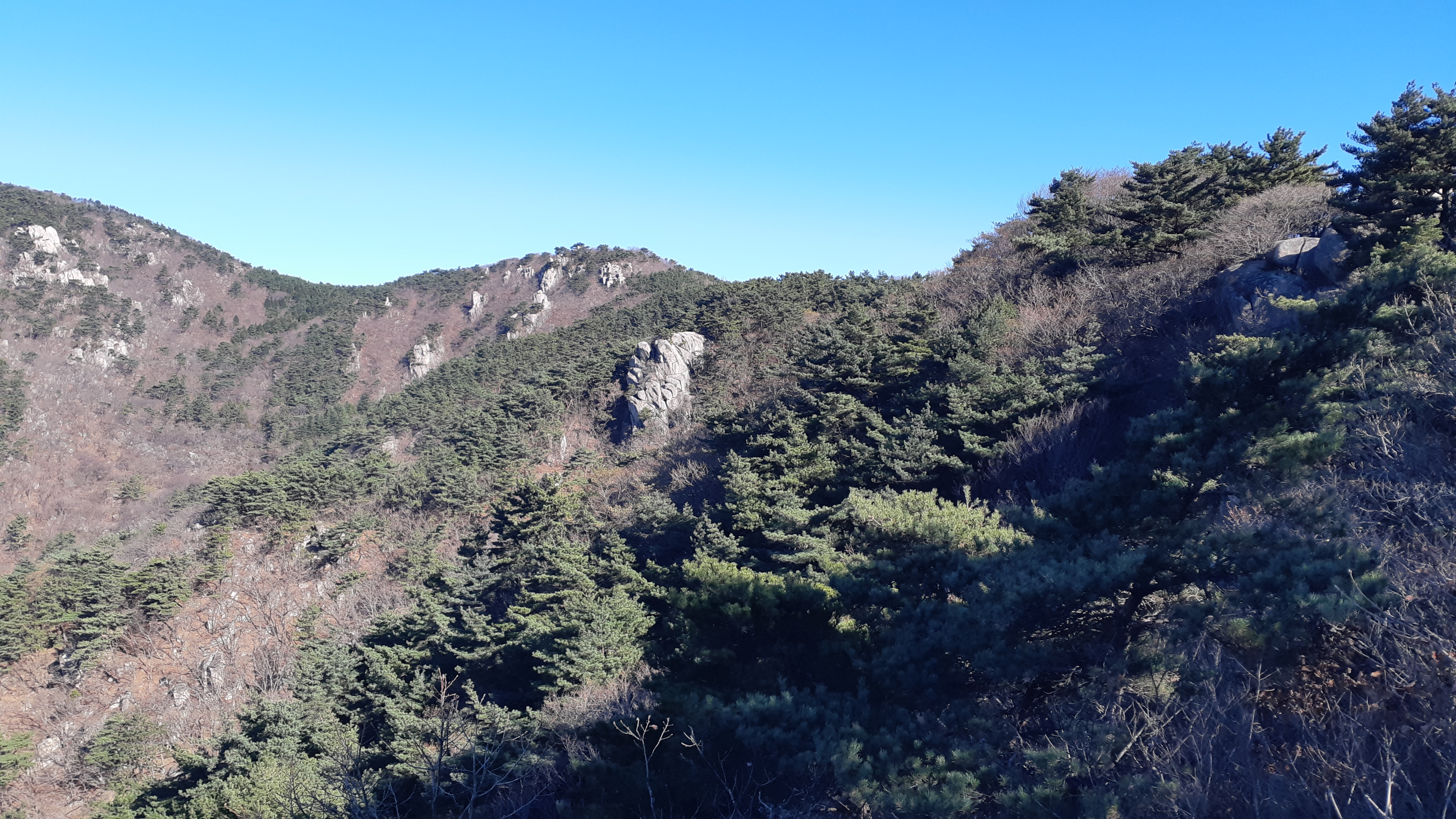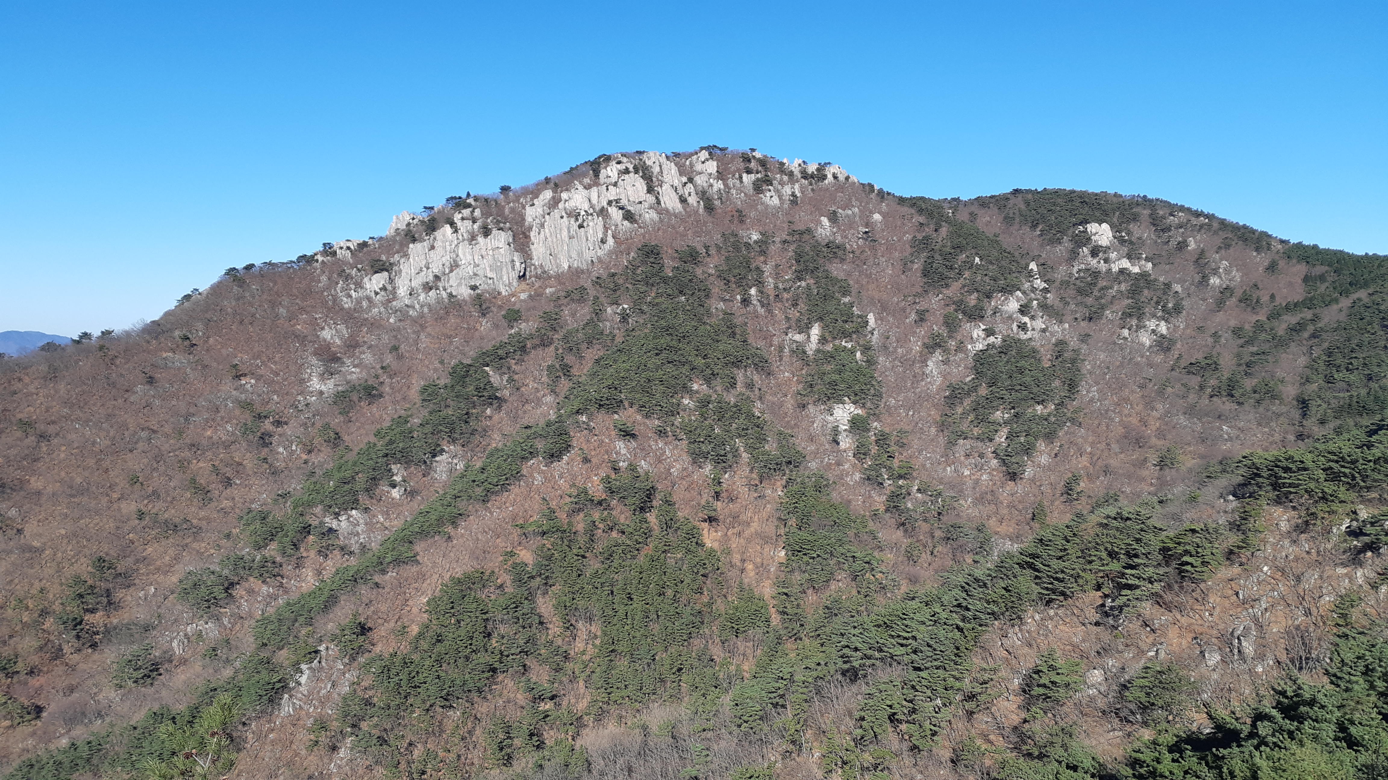 조망처에서 바라본 상계봉에서 남문으로 이어지는 능선(10:30)