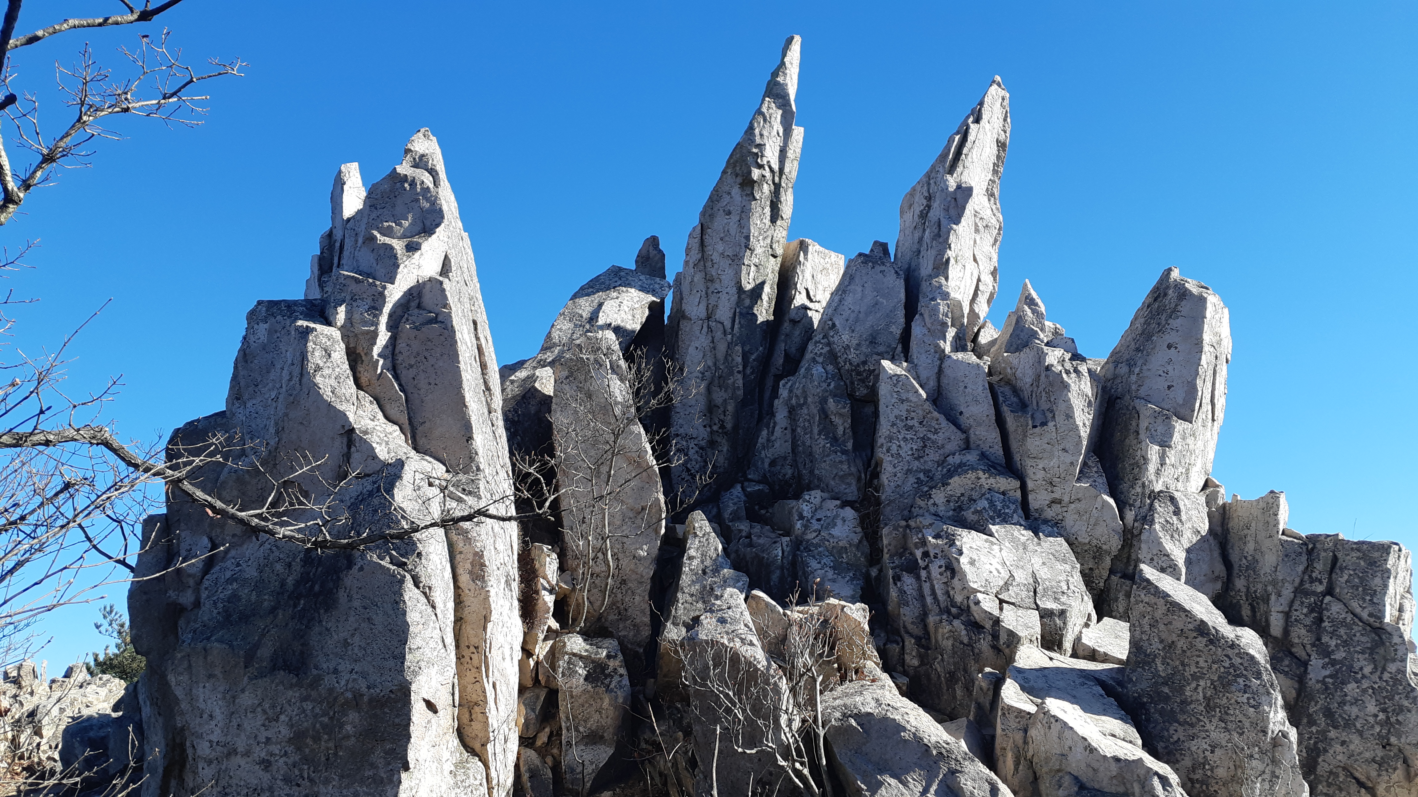 지도상 상계봉 정상의 석문/바람을 피하여 점심식사를 하고 출발한다(11:44~12:10)
