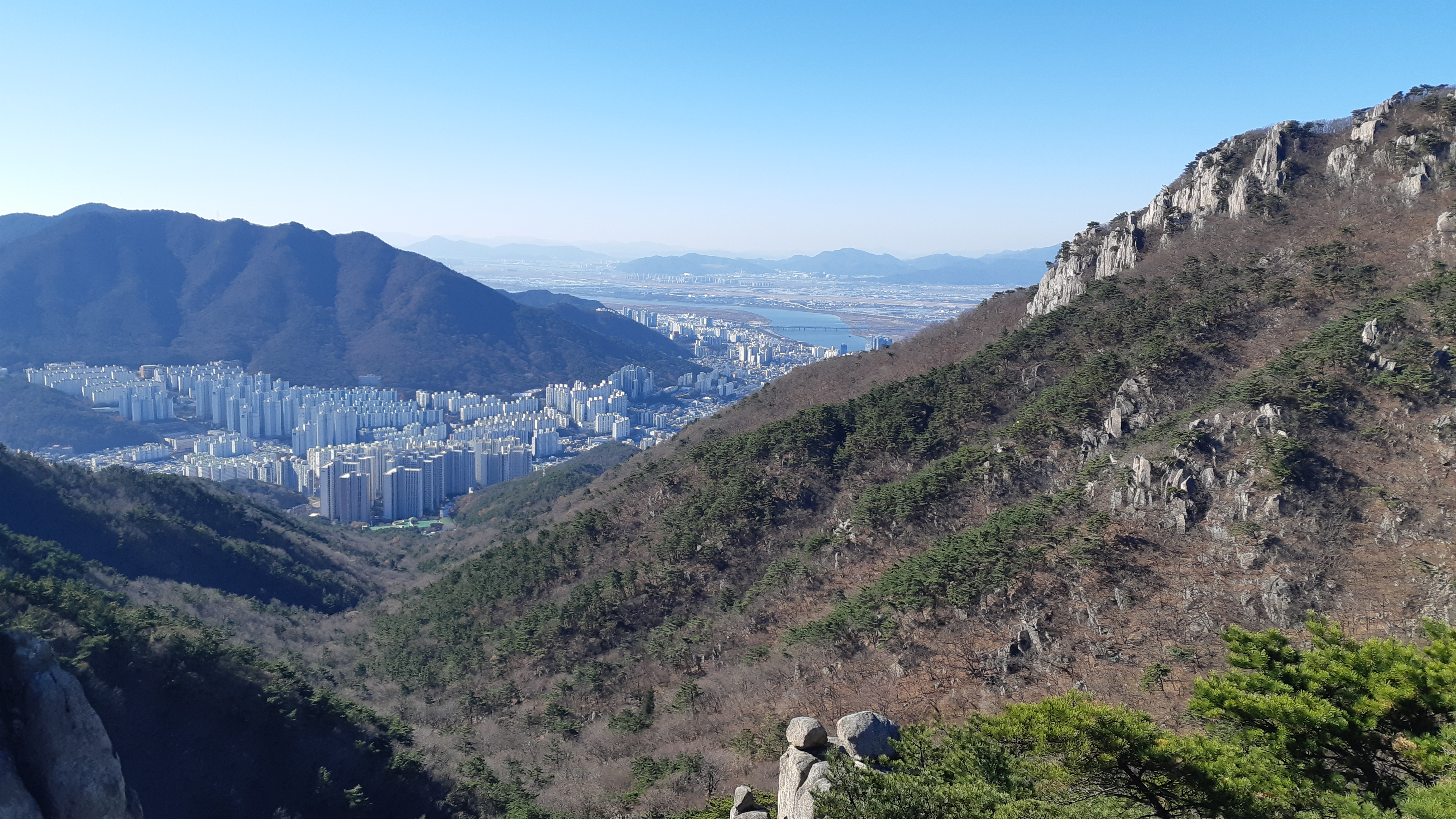 마당바위에서 바라본 덕천동과 구포동 너머로 낙동강이 흐른다(10:43)