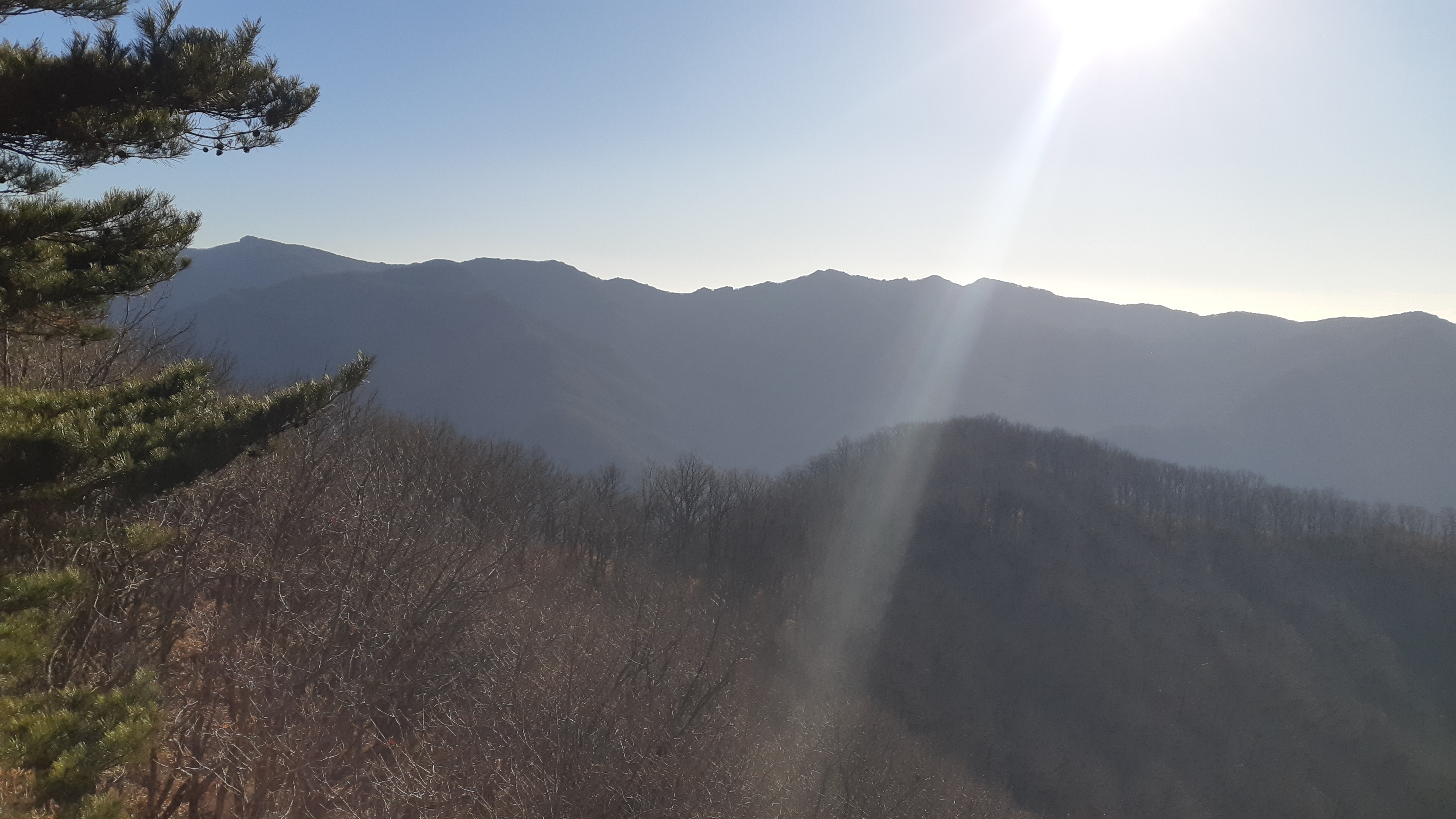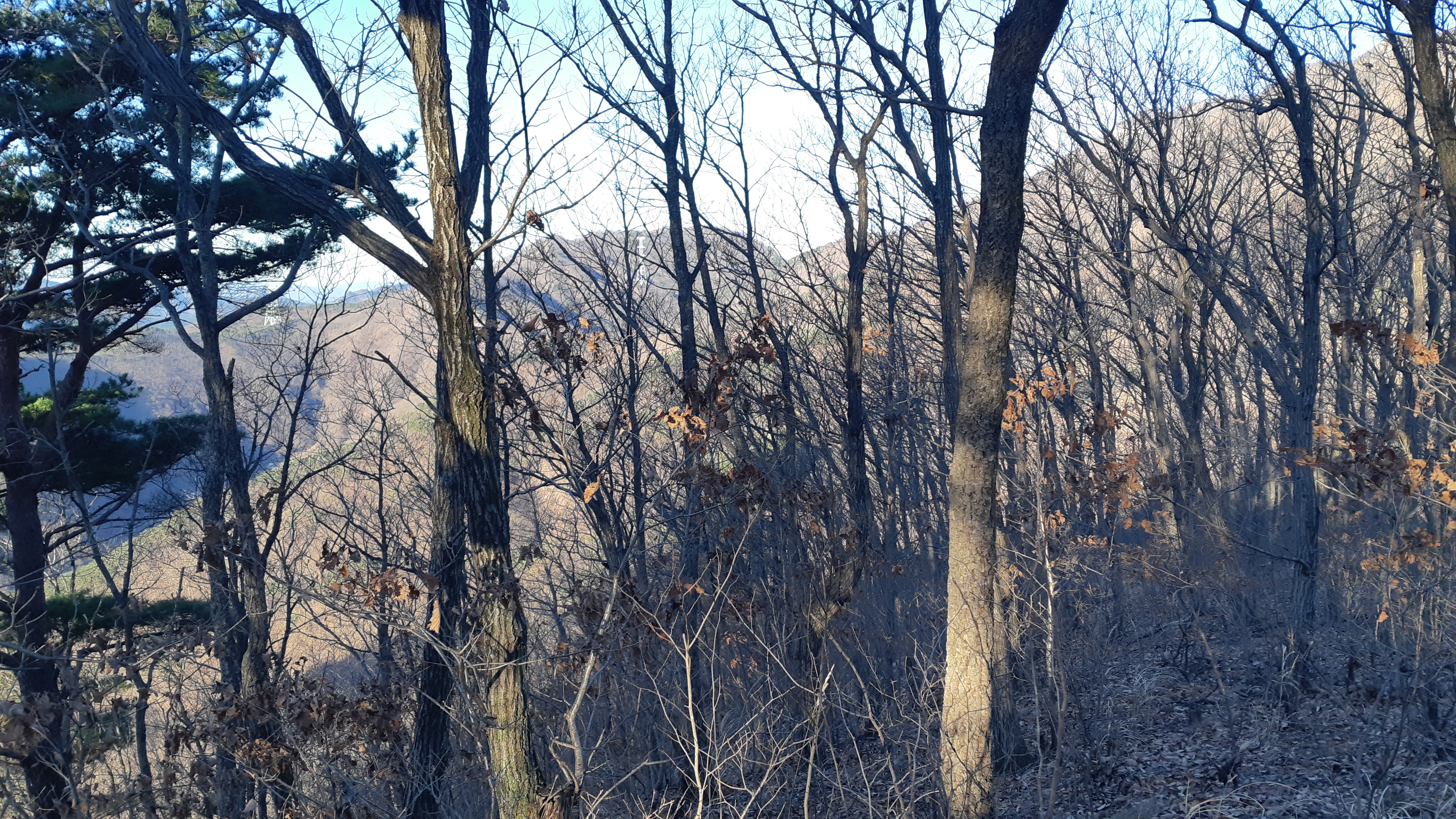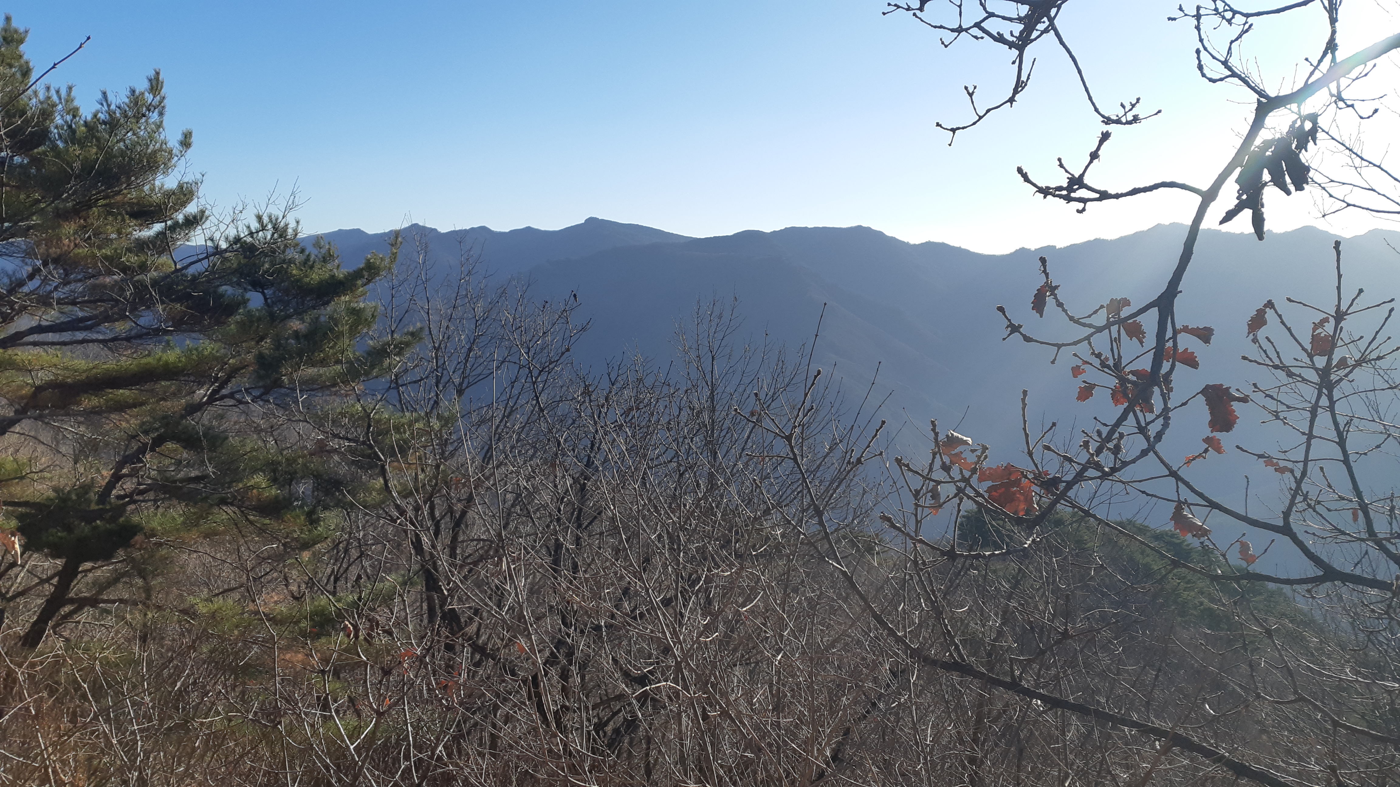 나뭇가지 사이로 향로산 정상(10:07)