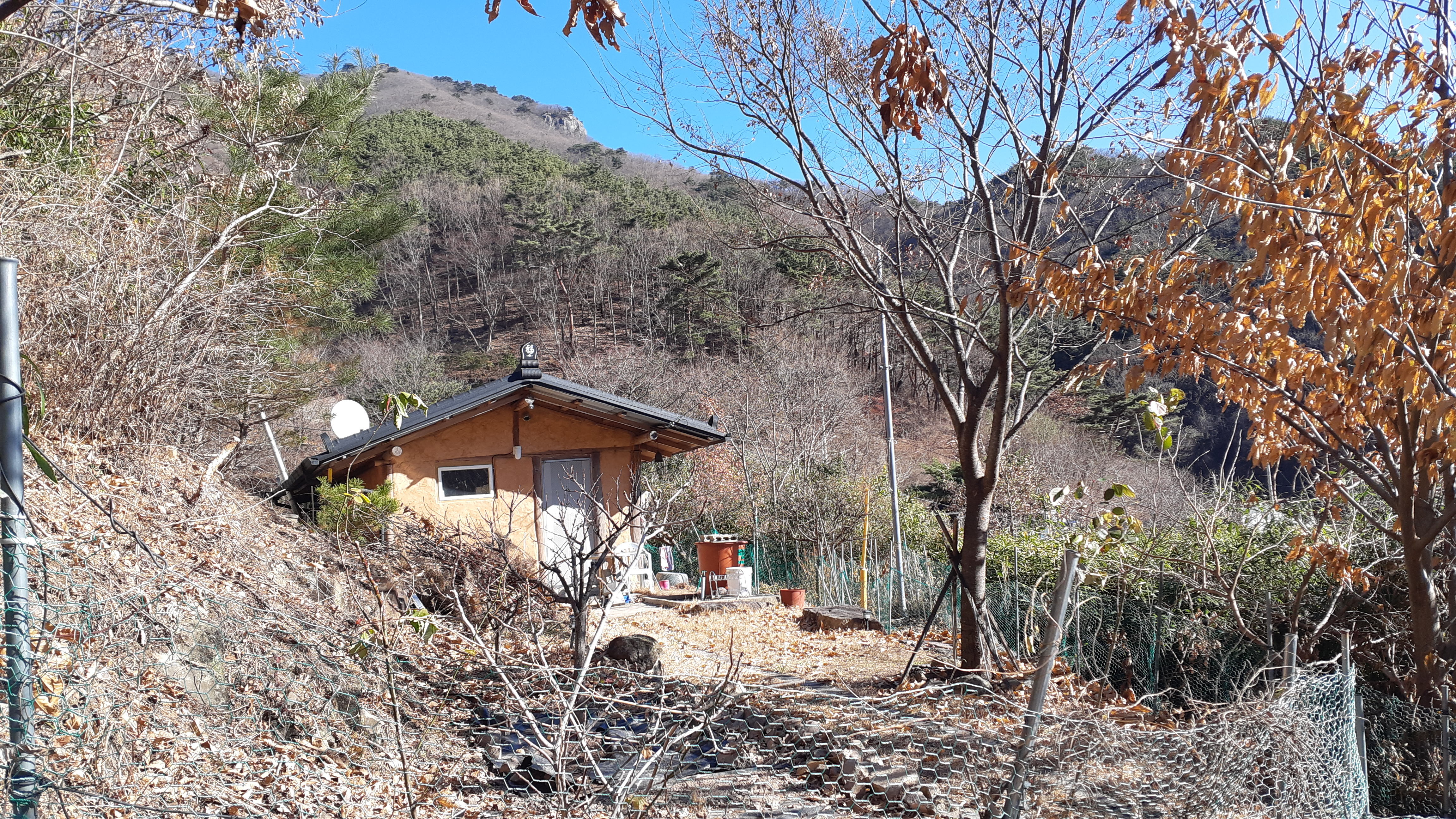 오늘은 24절기 중 스물두 번째 절기인 동지(冬至)로 일 년 중에서 밤이 가장 길고 낮이 가장 짧은 날이다. 긴 밤을 보내고 새벽 일찍 일어나 영남알프스의 한 자락을 걷기위해 아침 일찍 집을 나선다. 먼저 양산시 원동 배내의 대리약수터에서 생수를 담고 5분여 소요되는 거리의 원동초등학교이천분교에 주차를 하고 곧장 산행에 나선다. 조금 전 차량으로 이동할 때 차량의 Outside 온도가 영하7도를 알리는걸 보니 제법 추운 것 같다. 원동면 선리 배내골사과 정보화마을을 지나 왼쪽 들머리에서 가파른 산길로 올라간다.