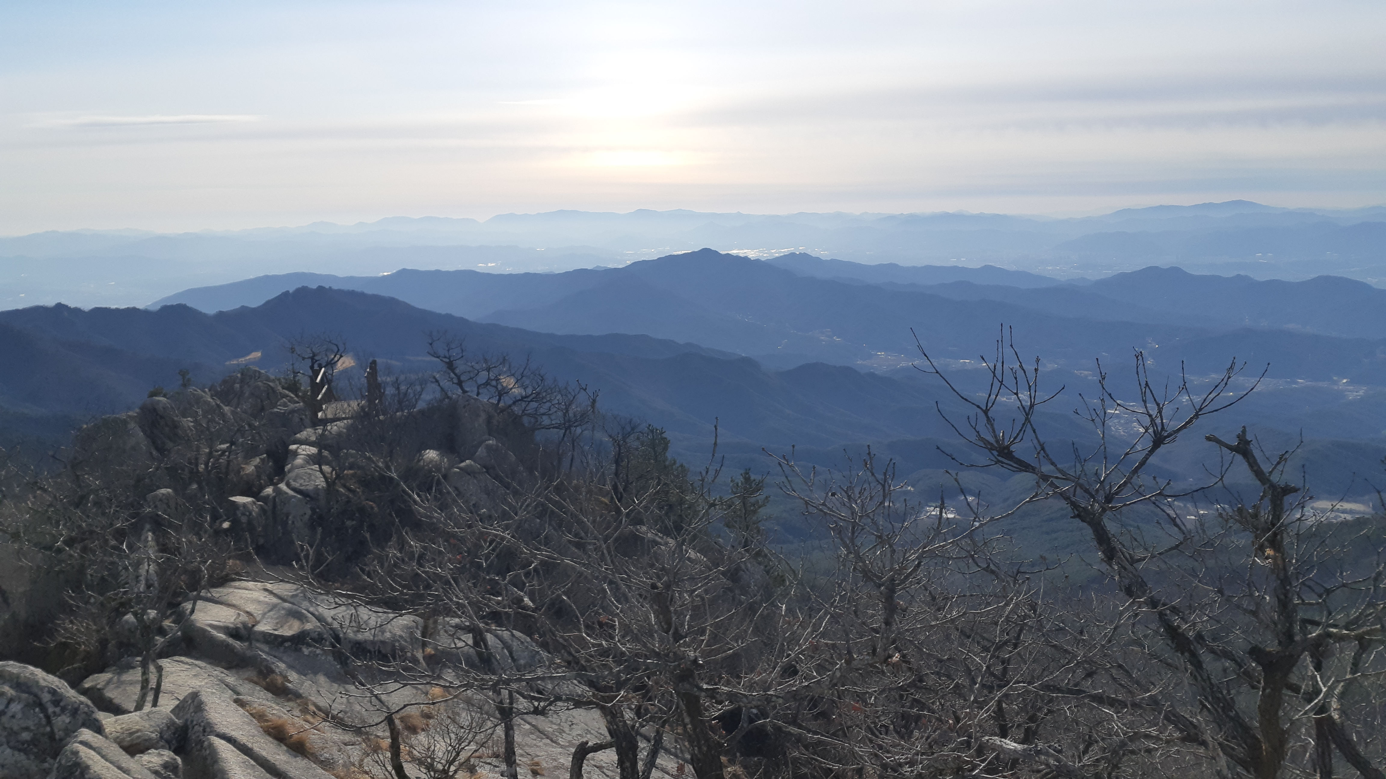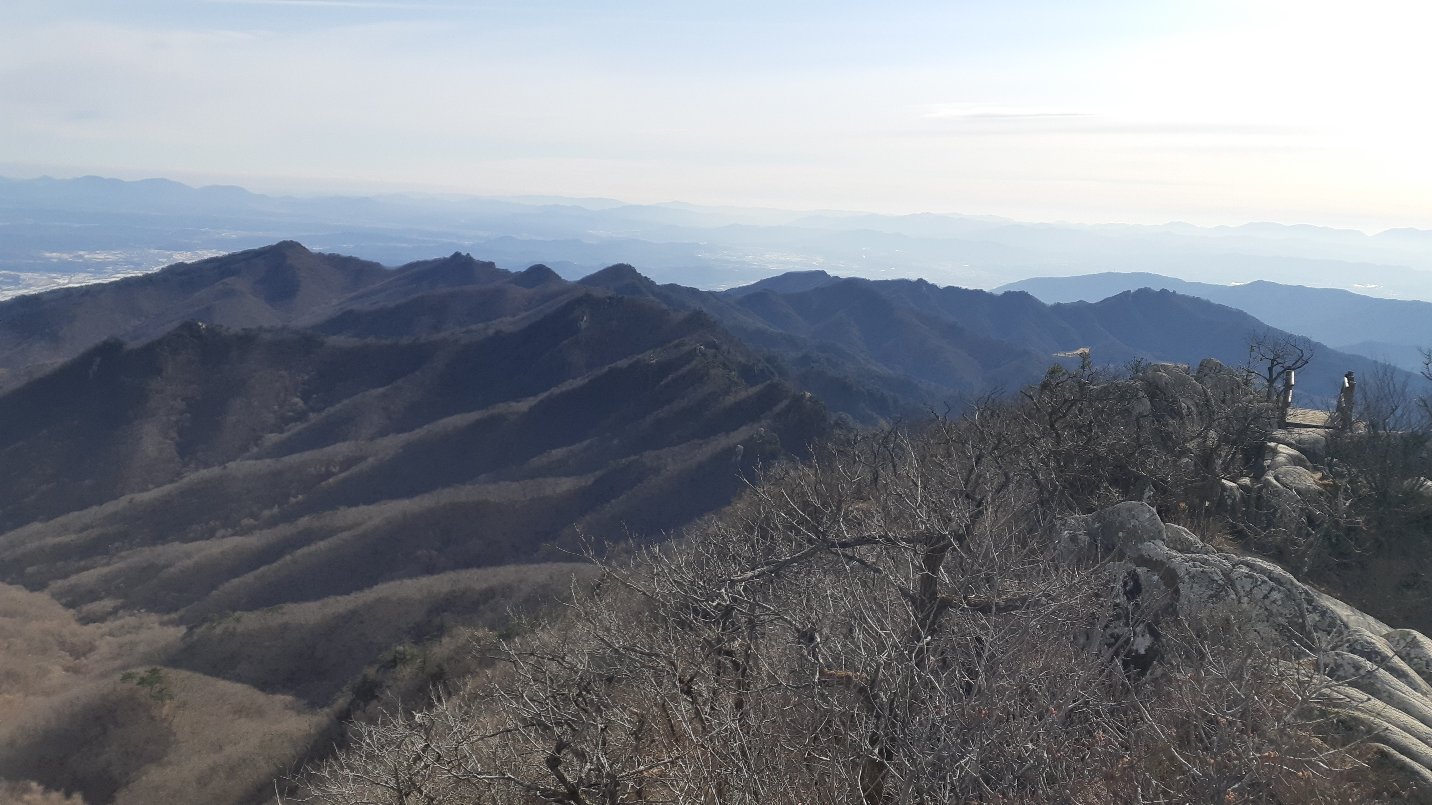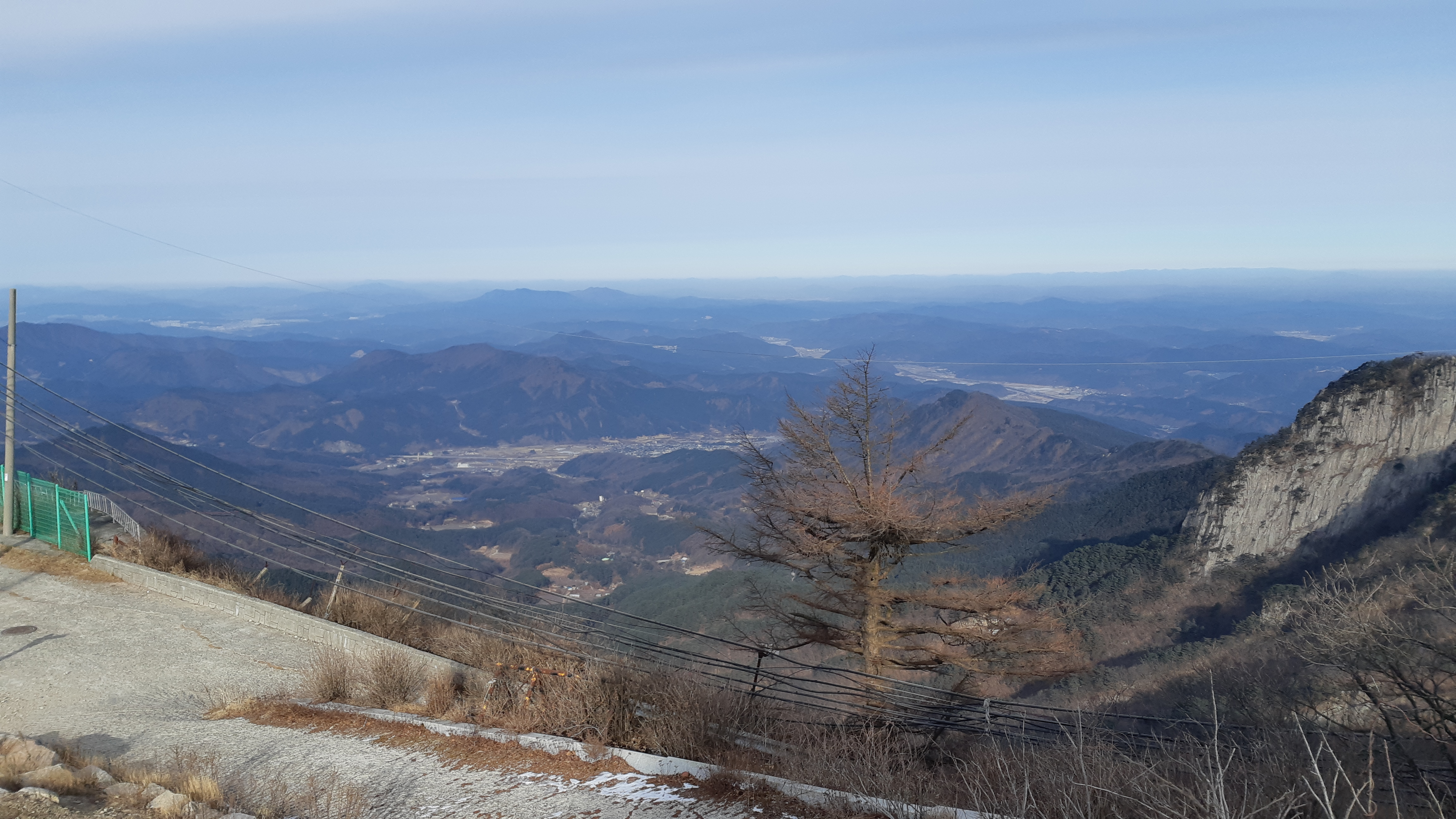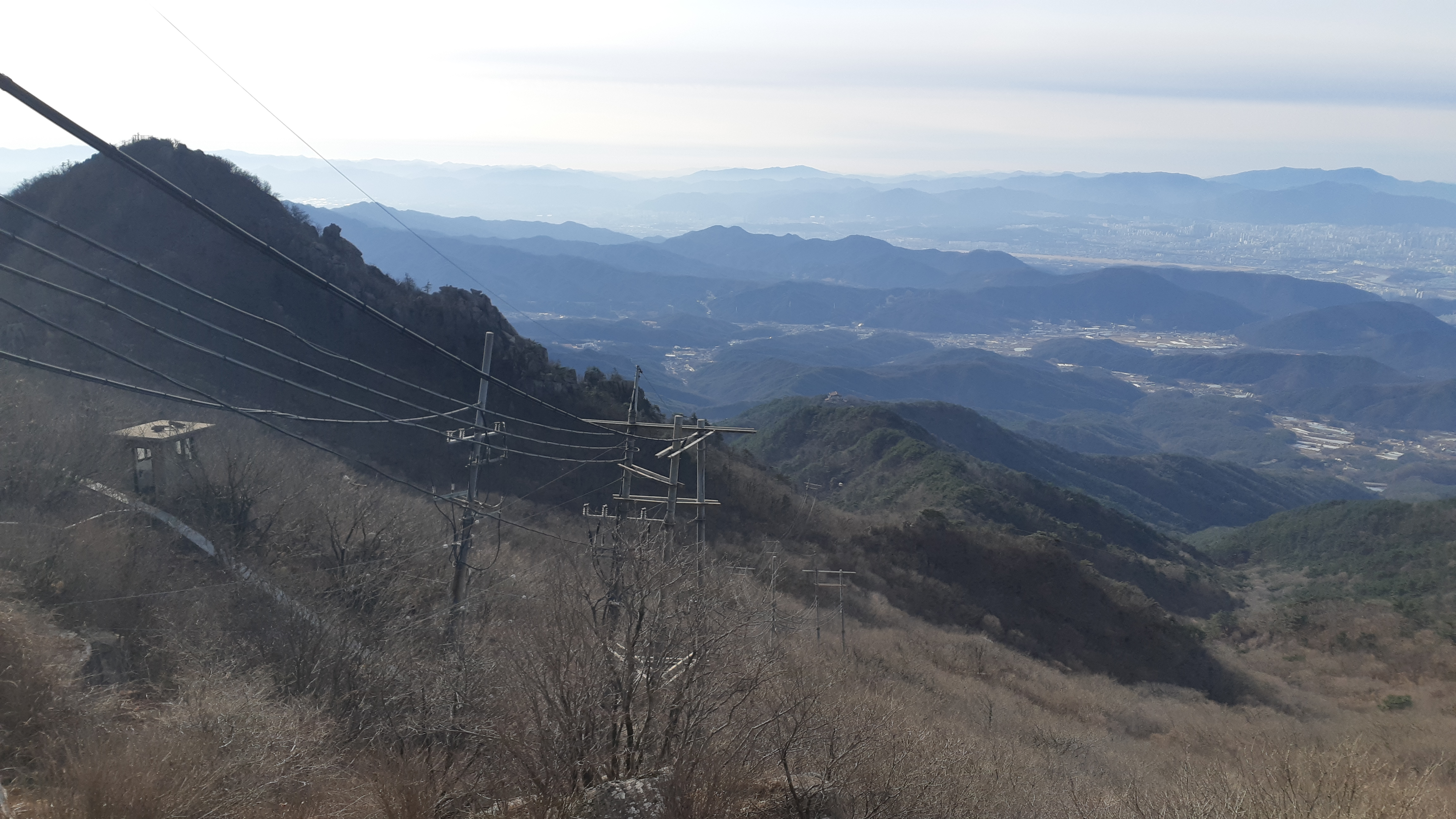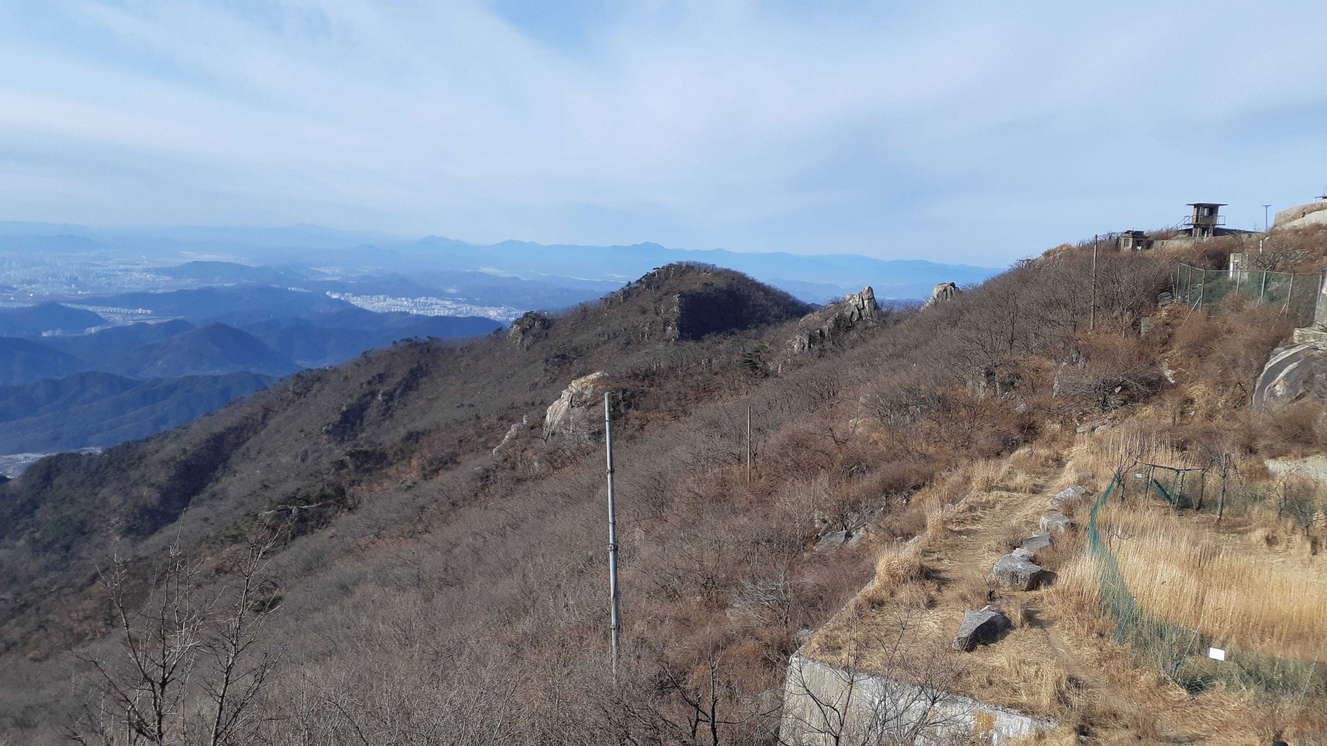 비로봉 정상부 직전에서 바라본 군부대가 보이는 팔공지맥 주능선(10:10)