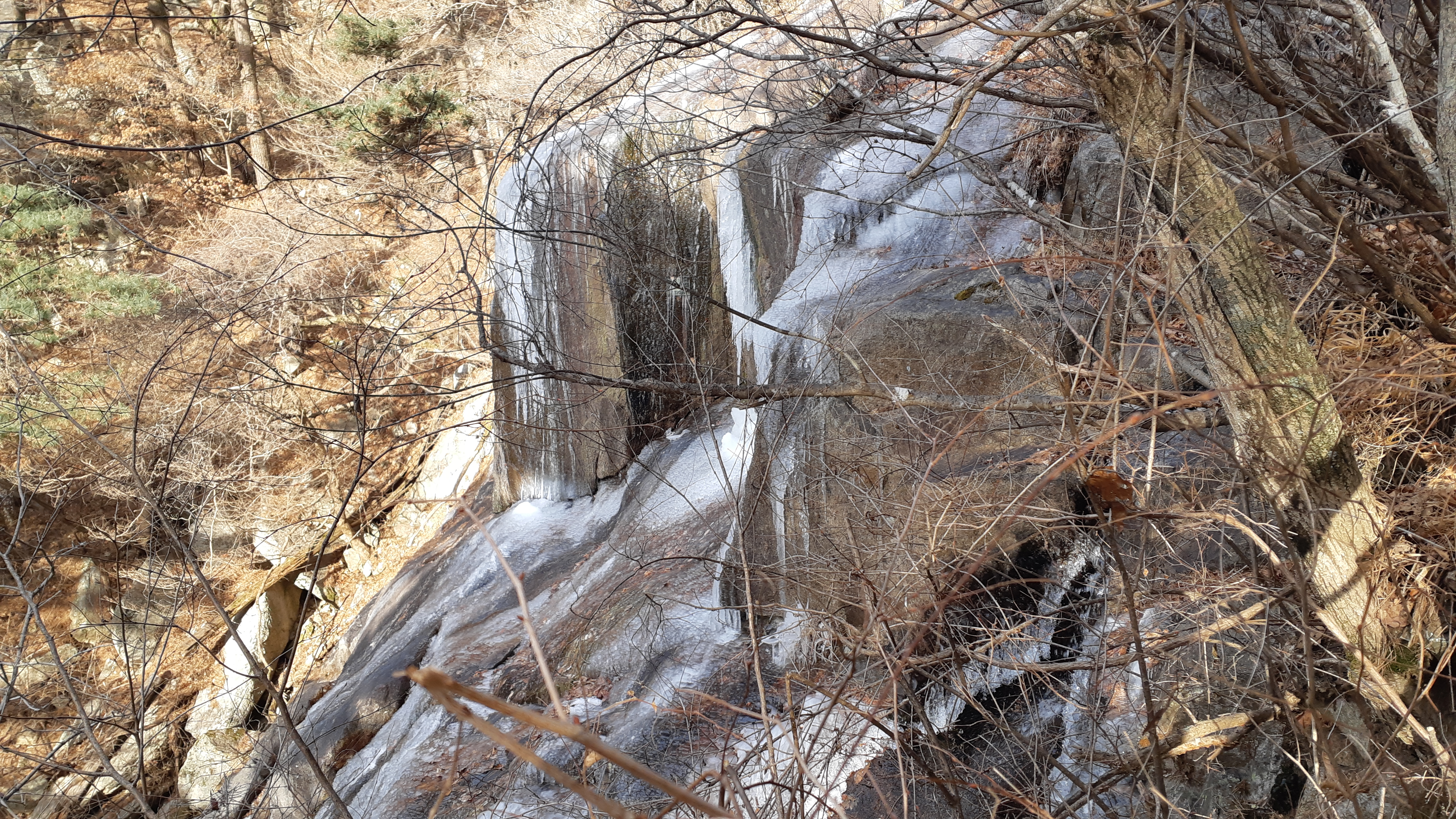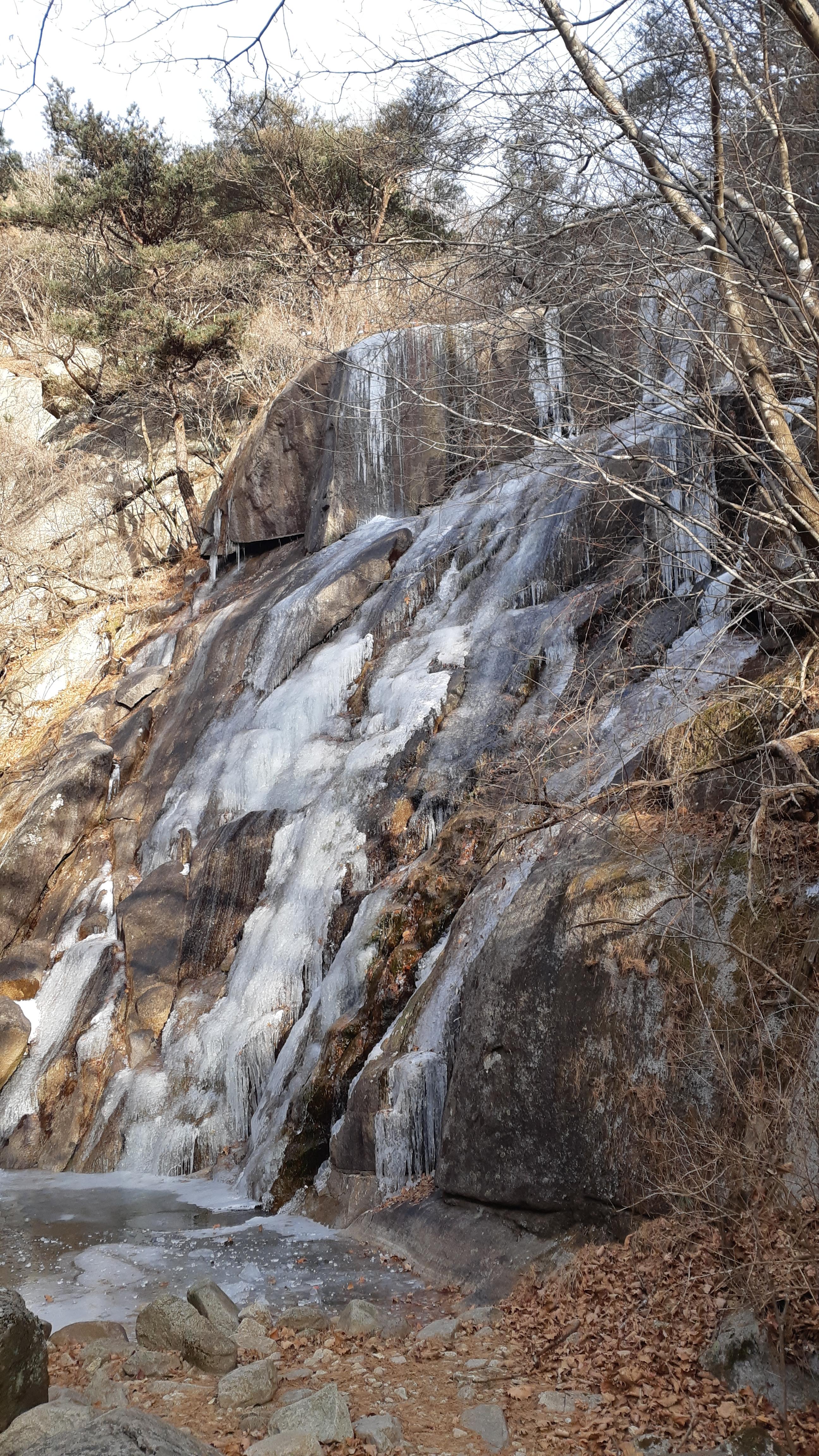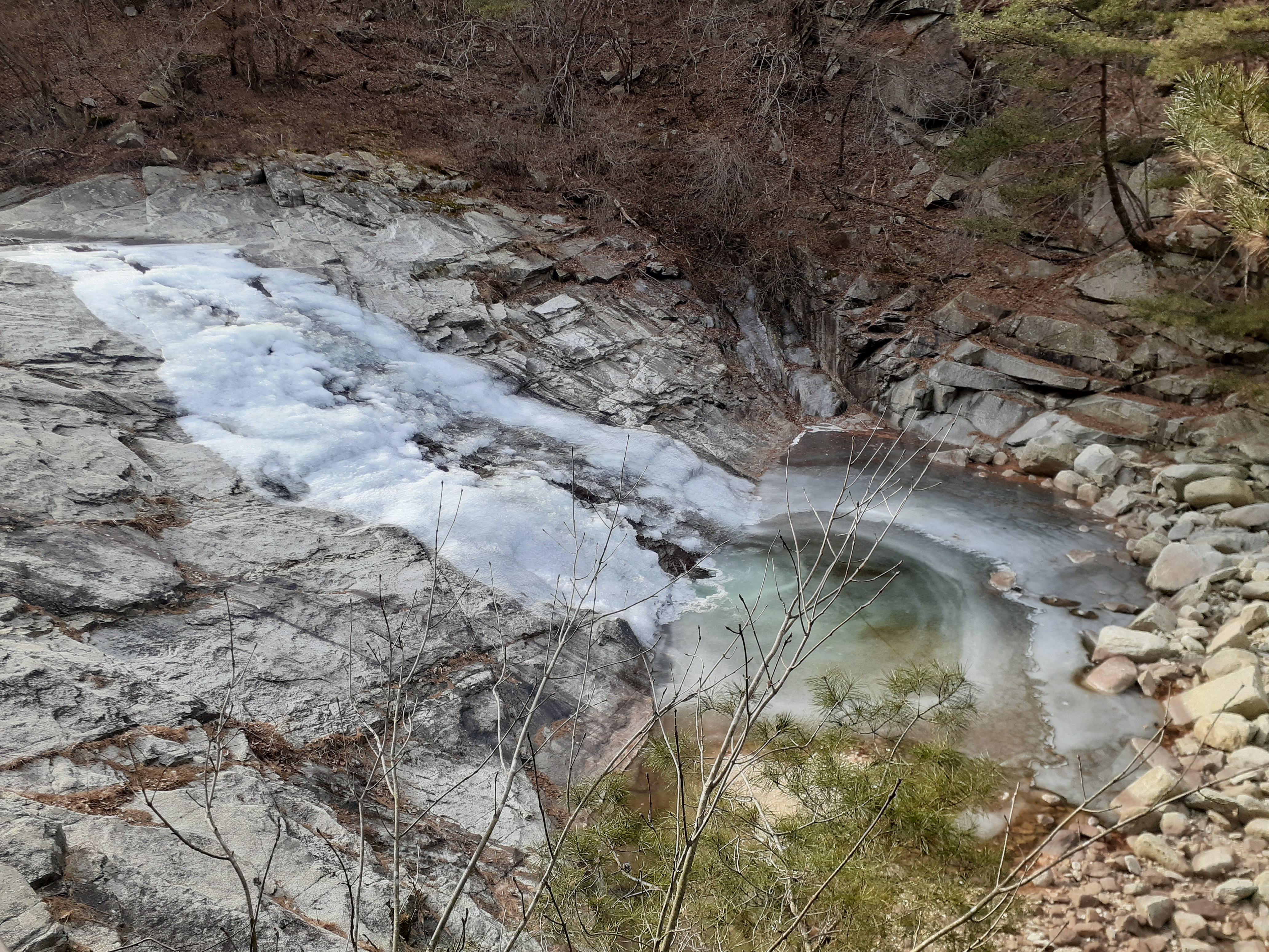수태골폭포 아래의 얼개섥개 포개진 바위들(09:10)