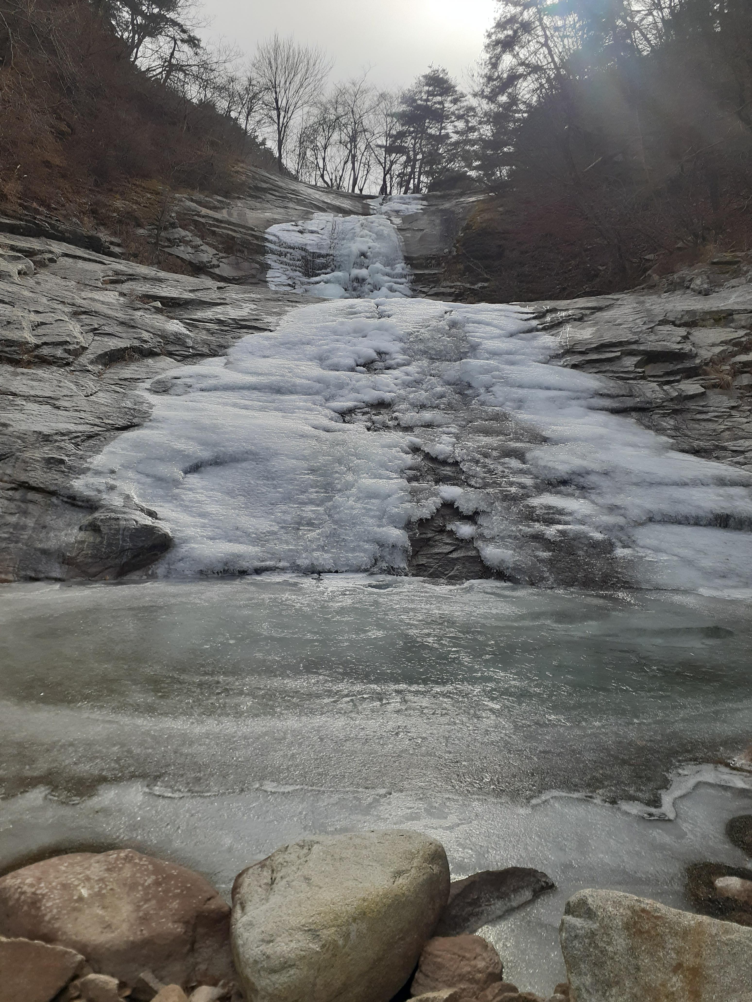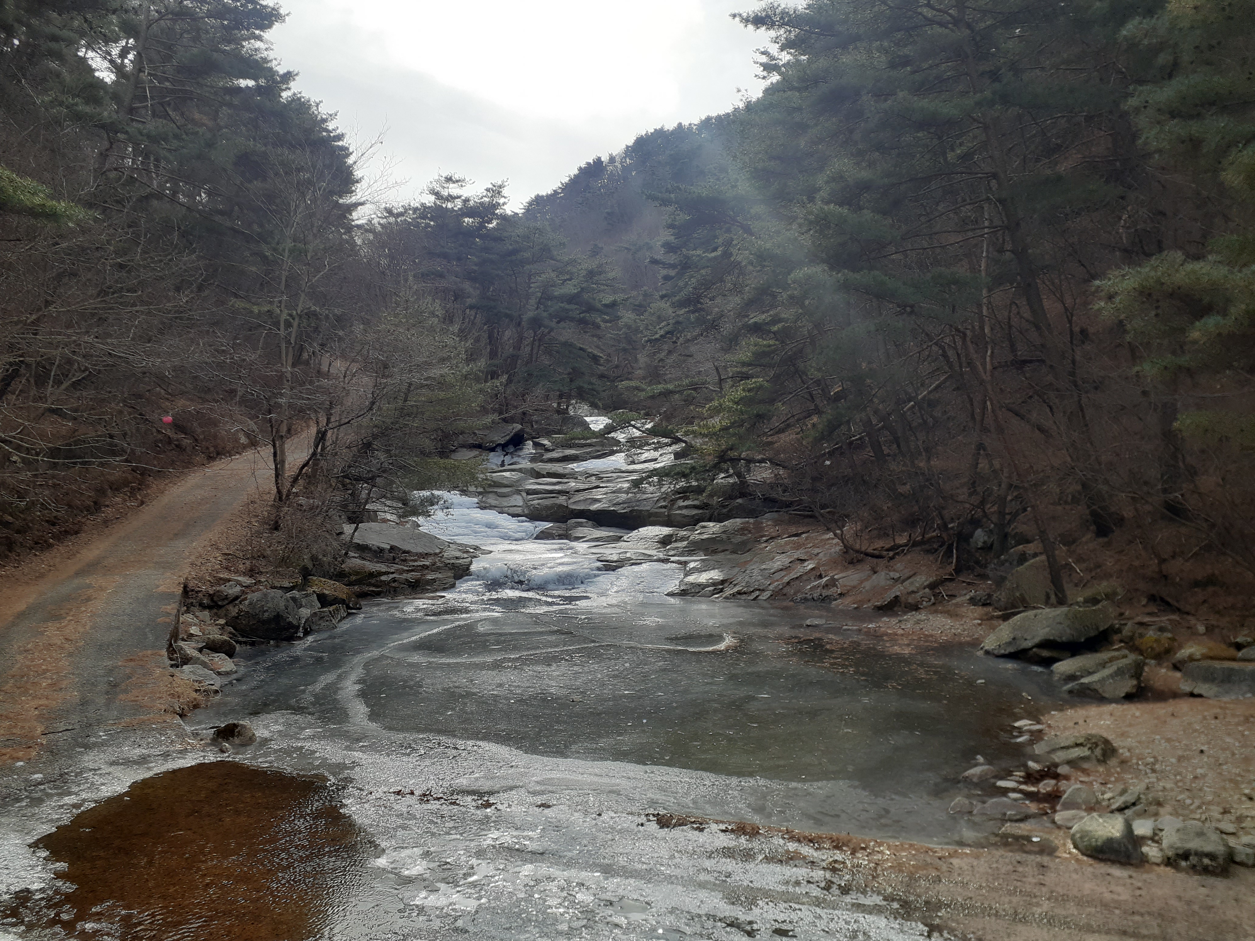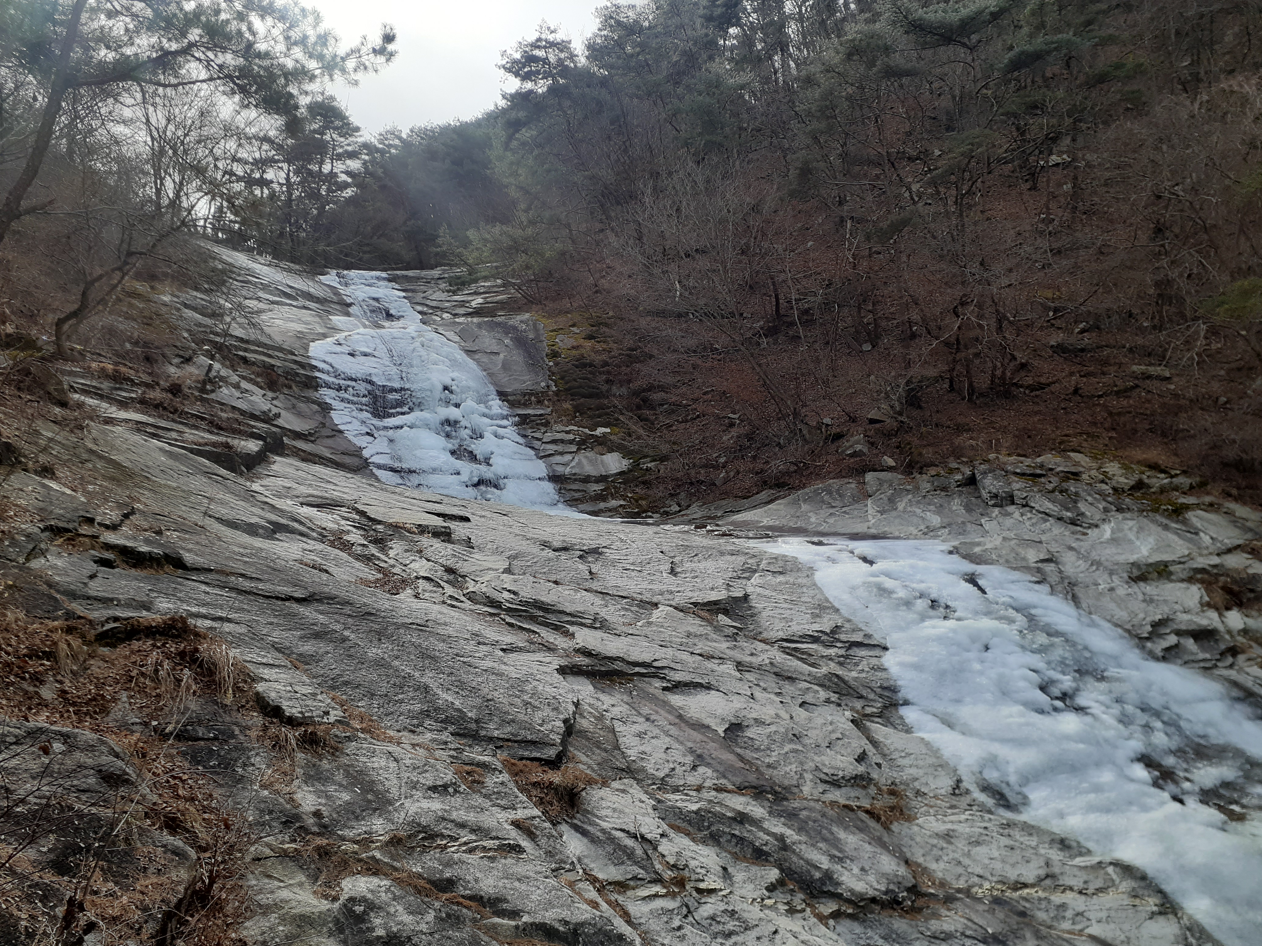 수태골폭포 아래의 얼개섥개 포개진 바위들(09:10)