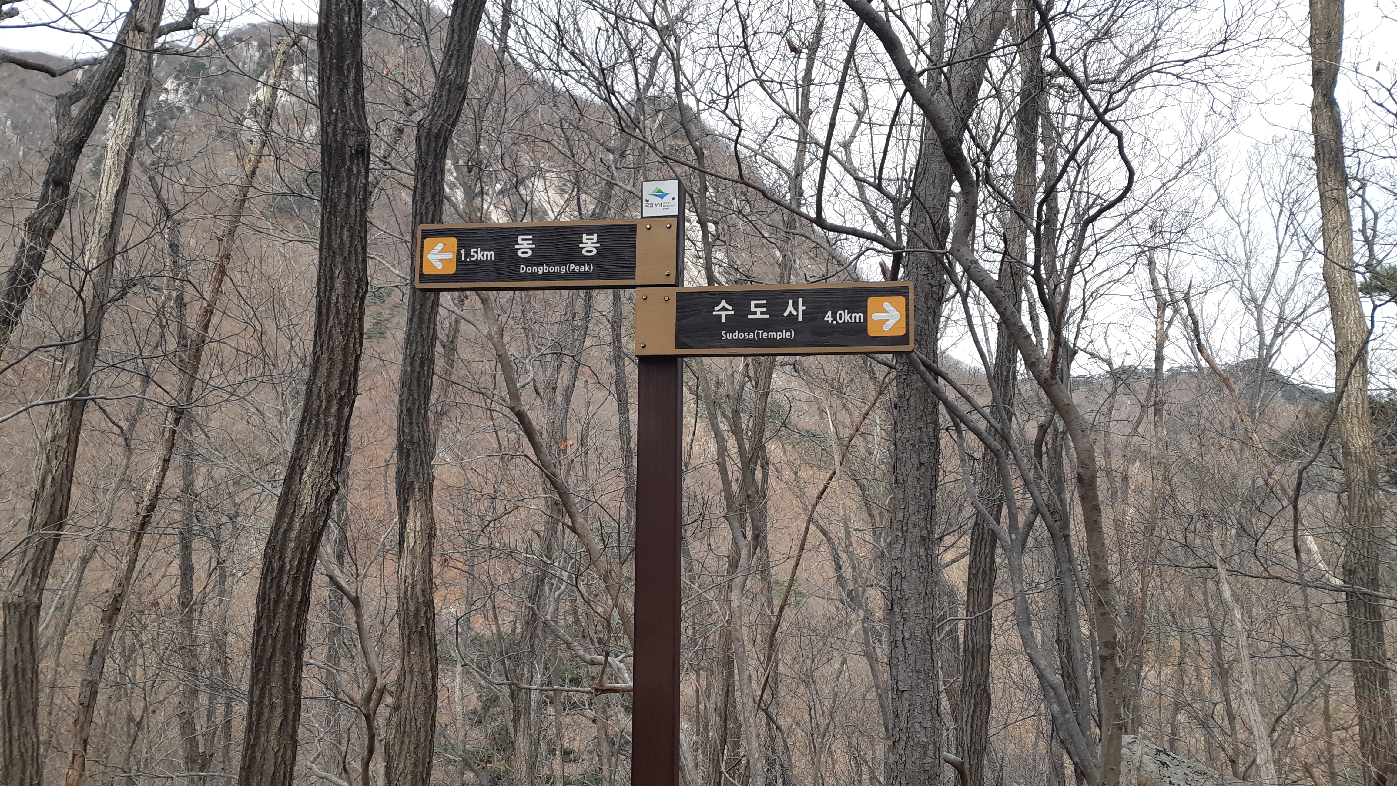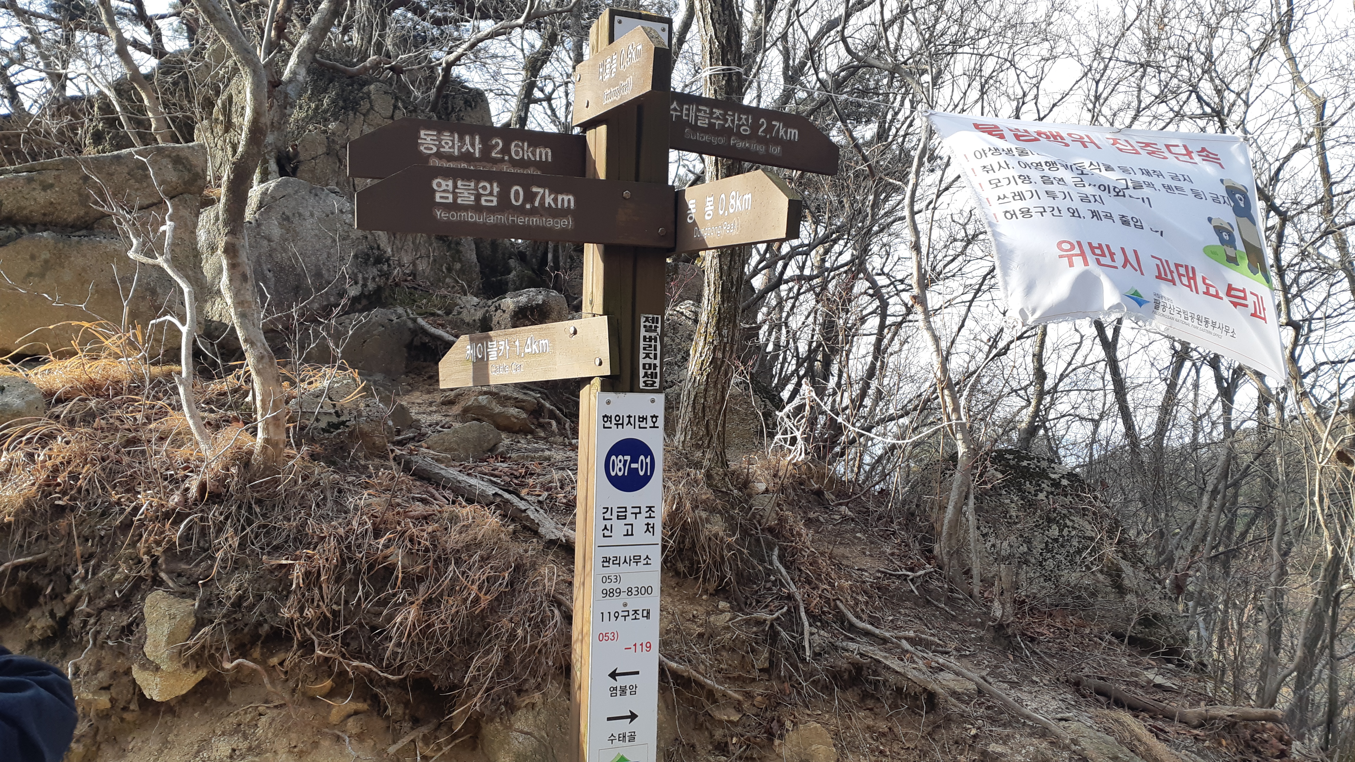 119표지목 087-01/동화사 갈림길의 이정표(09:40)