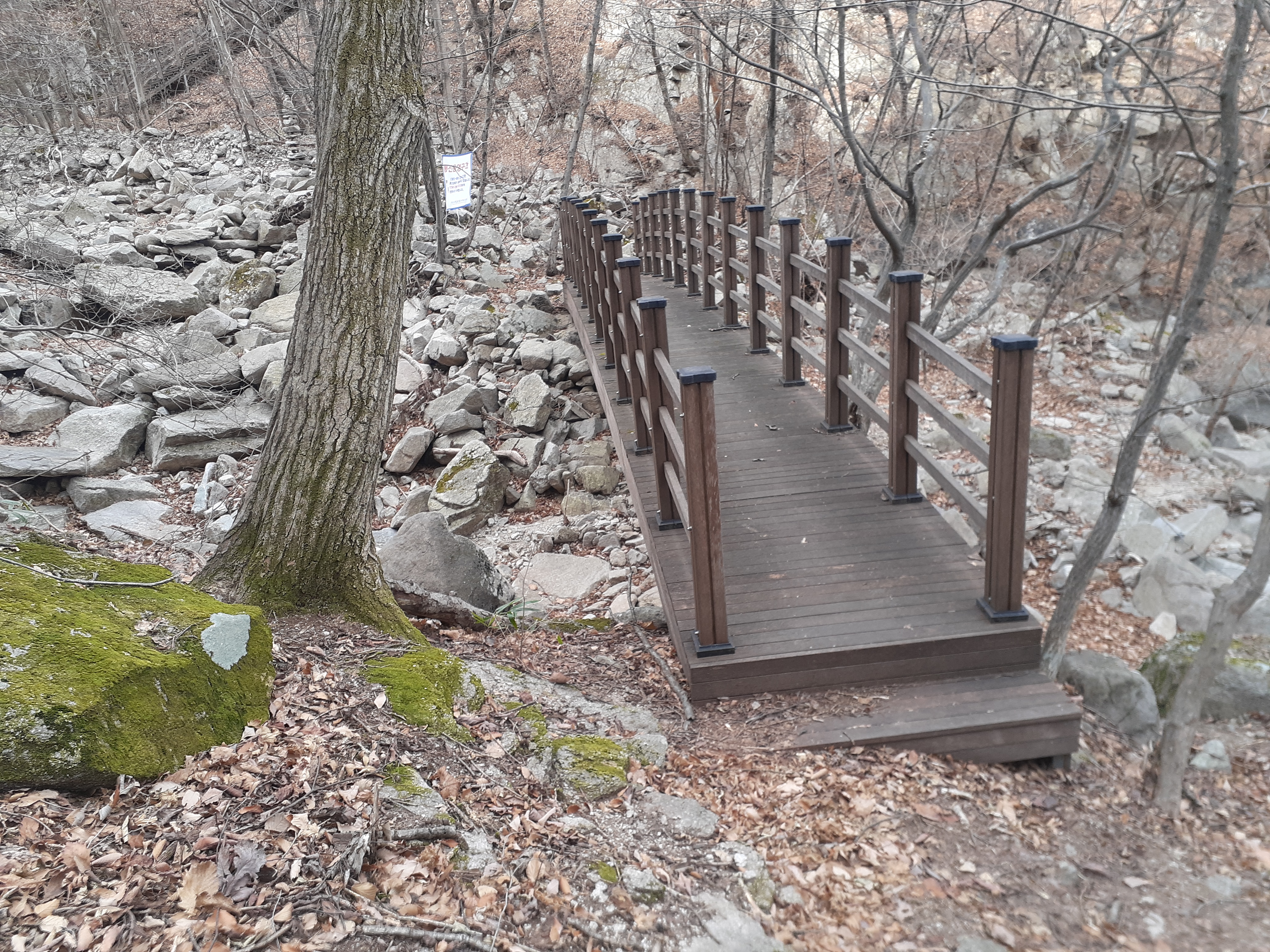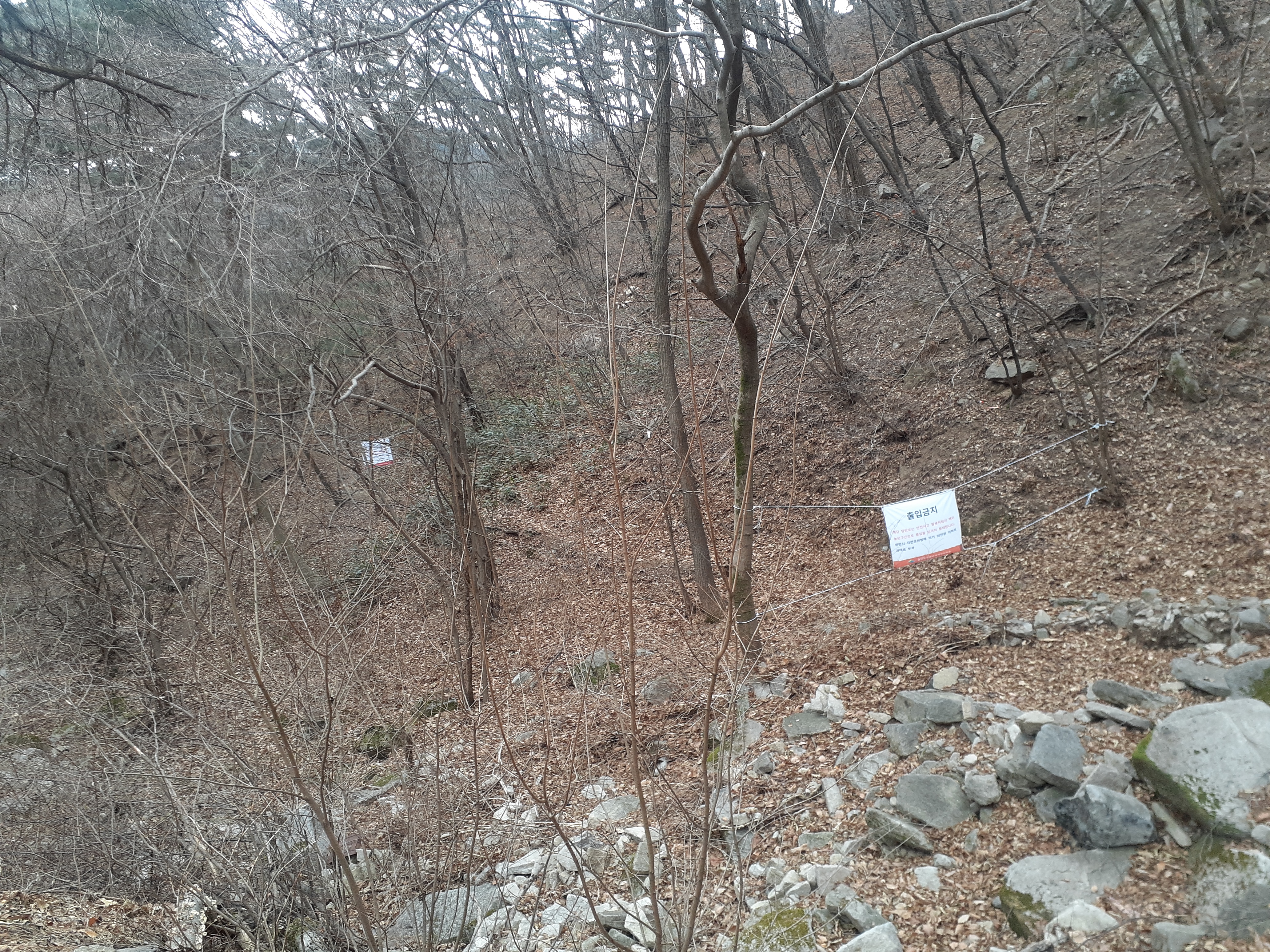 왠지 또렷한 길 10m가량 만을 막았다. 무슨 연유일까? 이곳을 다니는 산객들은 아래쪽 계곡으로 오르내리면서 더욱 안전사고에 많이 노출되어있다.