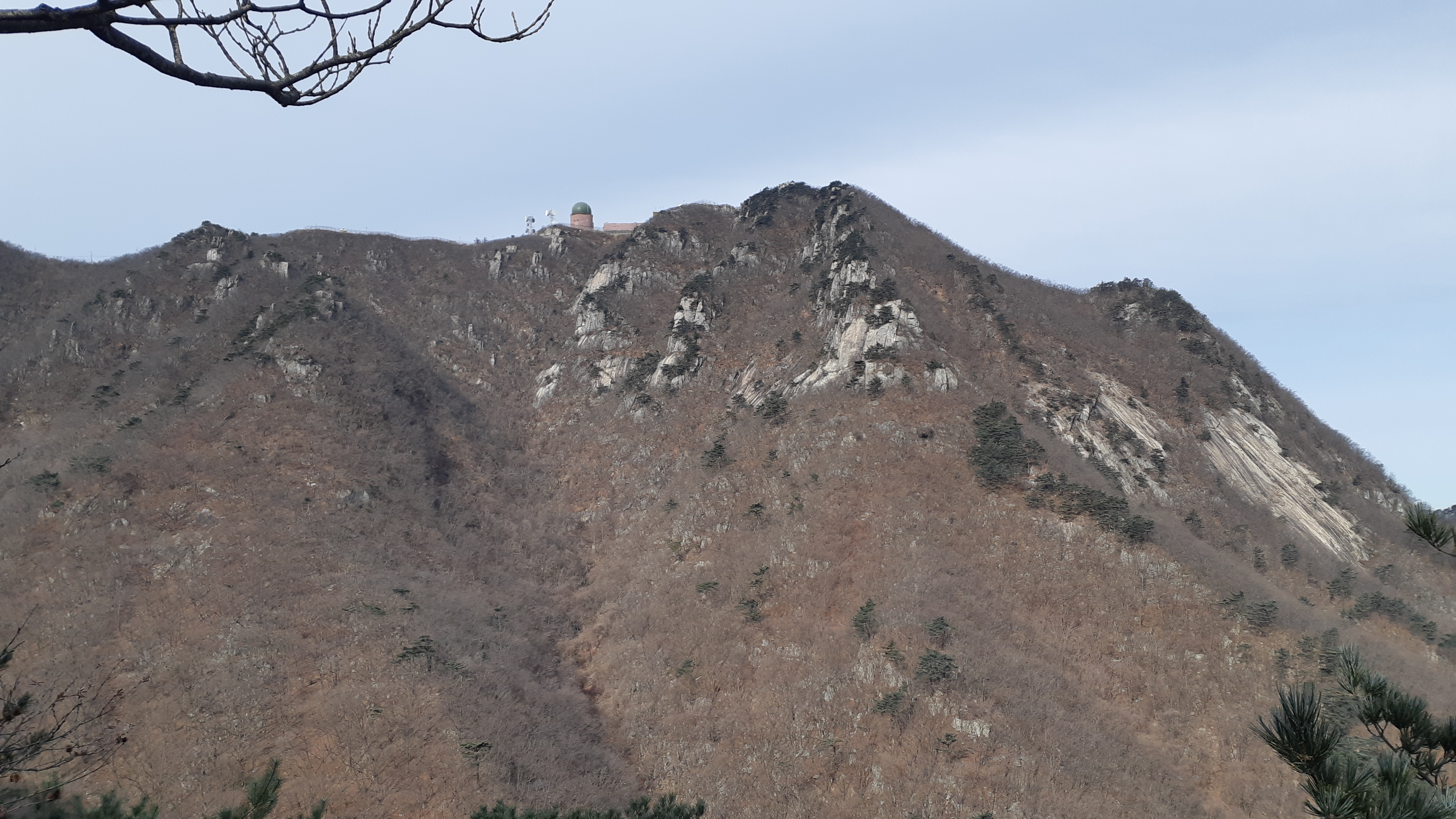 올려다본 팔공지맥 주능선과 군부대(11:13)