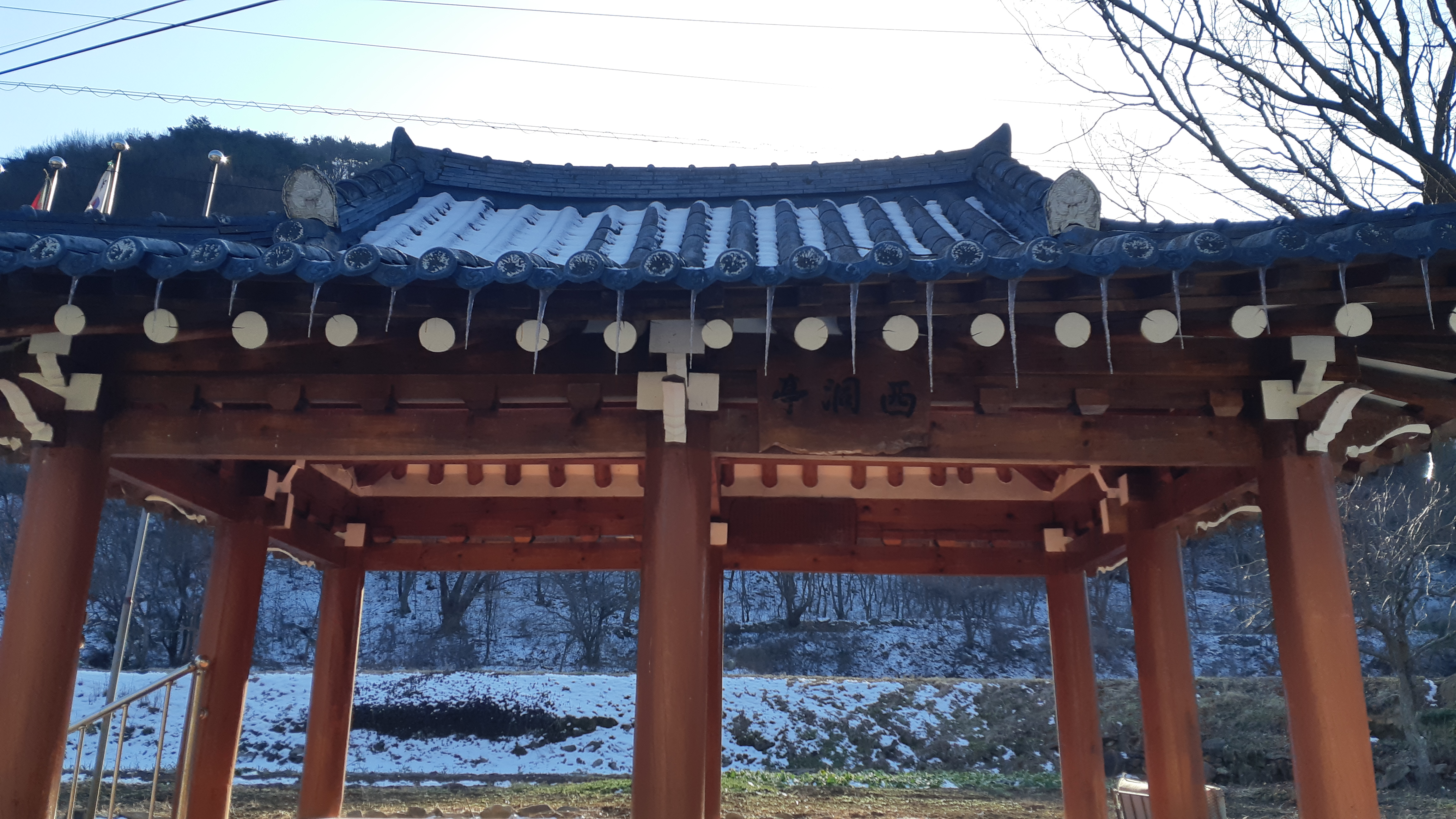 이제 오름길은 여기까지라 한결 발걸음도 가볍다. 잿막재인 임도에 내려서면서 병풍지맥 산줄기와는 헤어지고 임도 따라 왼쪽 서동마을로 내려간다. 약3km 가량의 임도를 꼬불꼬불 내려서면 서동경로당이 나오고 아침에 출발한 서동정에 도착하면서 오늘 산행을 마무리 한다. 후미가 40여분이나 늦게 도착 장성읍 영천리 양푼이동태탕집으로 이동 반주를 곁들인 저녁식사 후 부산으로 향한다.