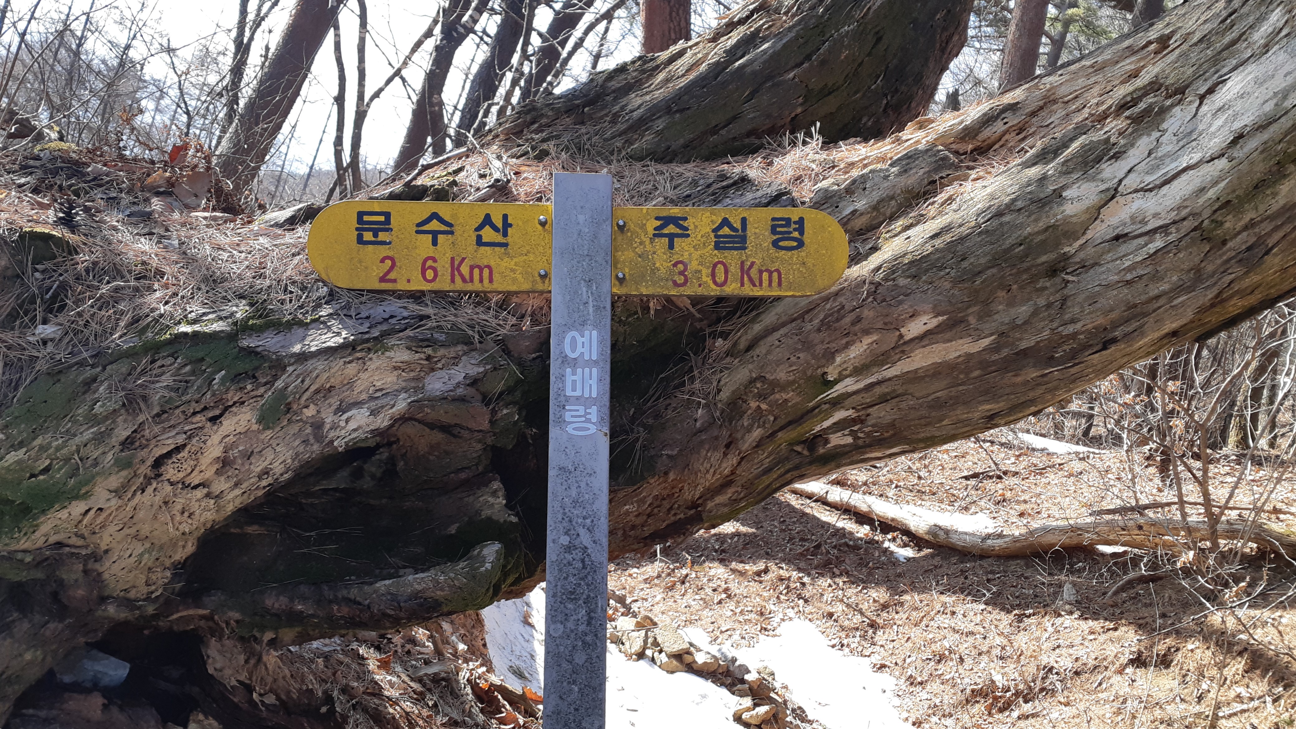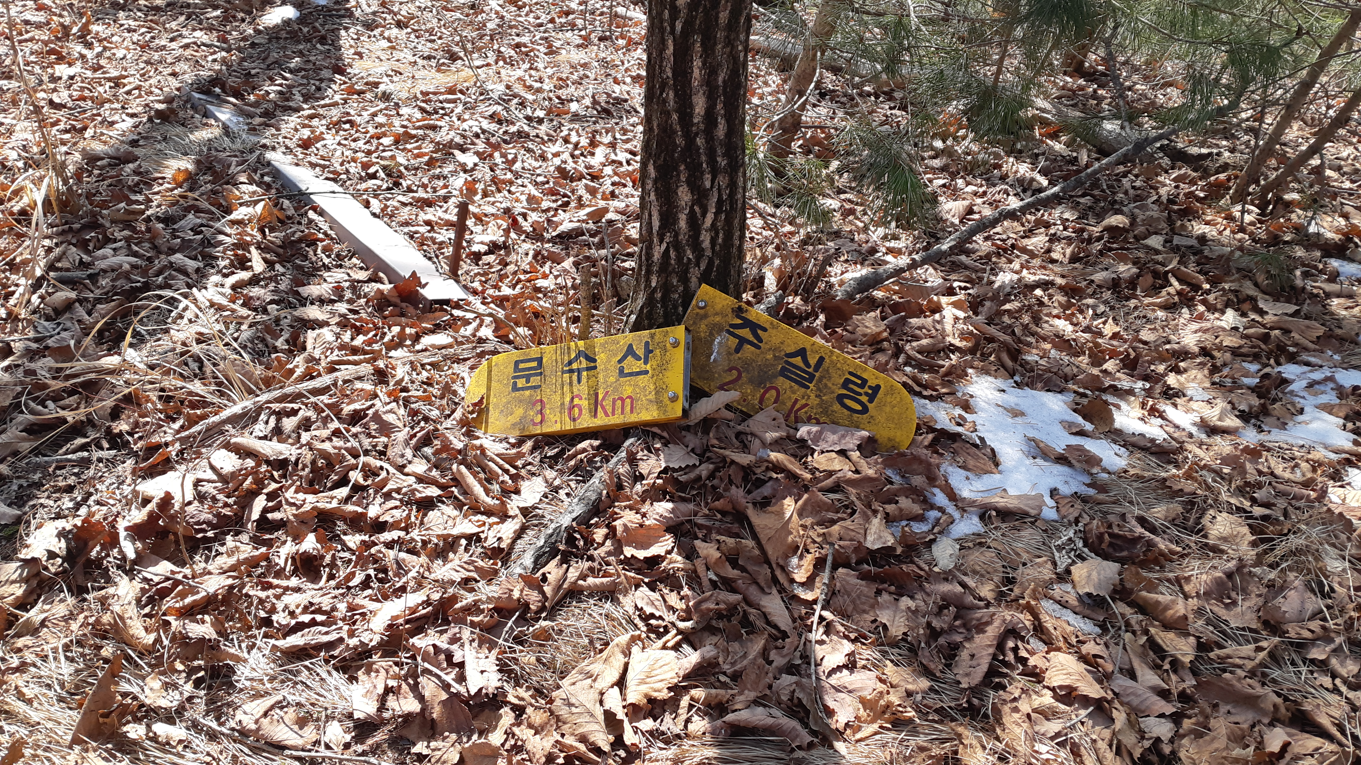 문수산 3.6km지점의 이정표(13:56)