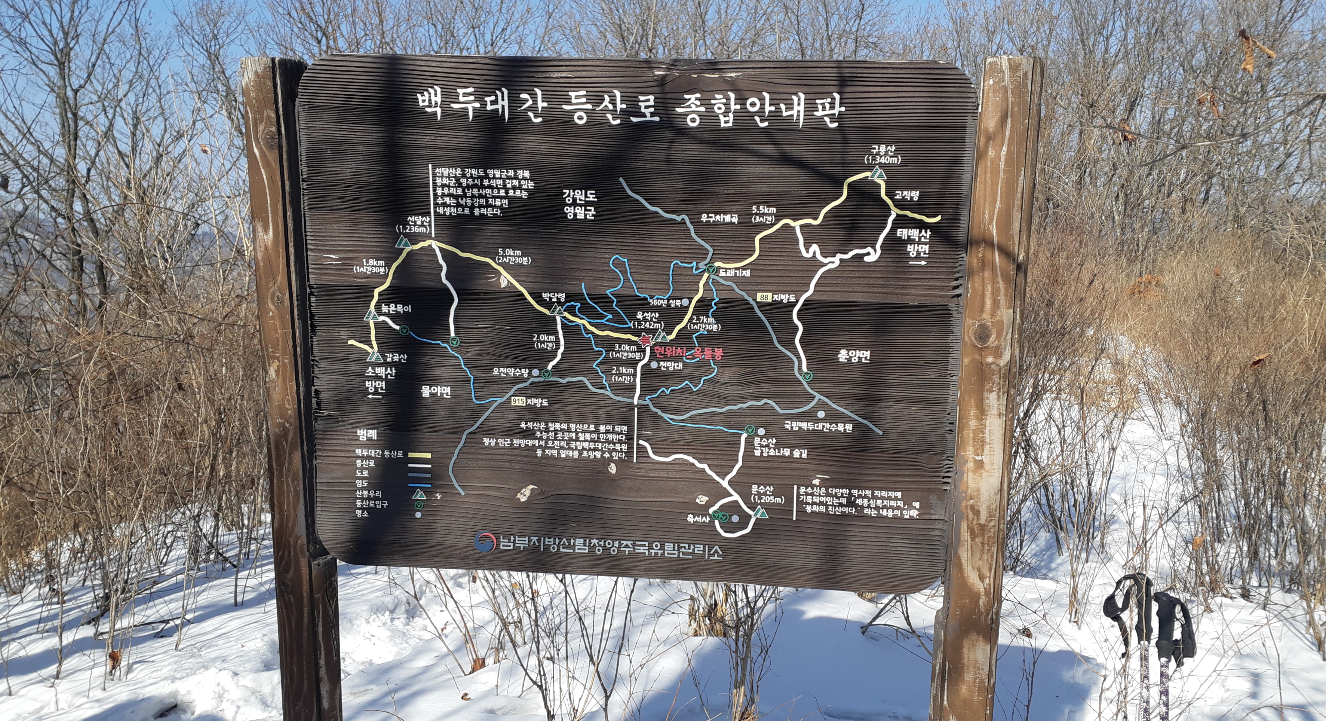 주실령에 세워진 문수지맥 트레킹길(12:55)