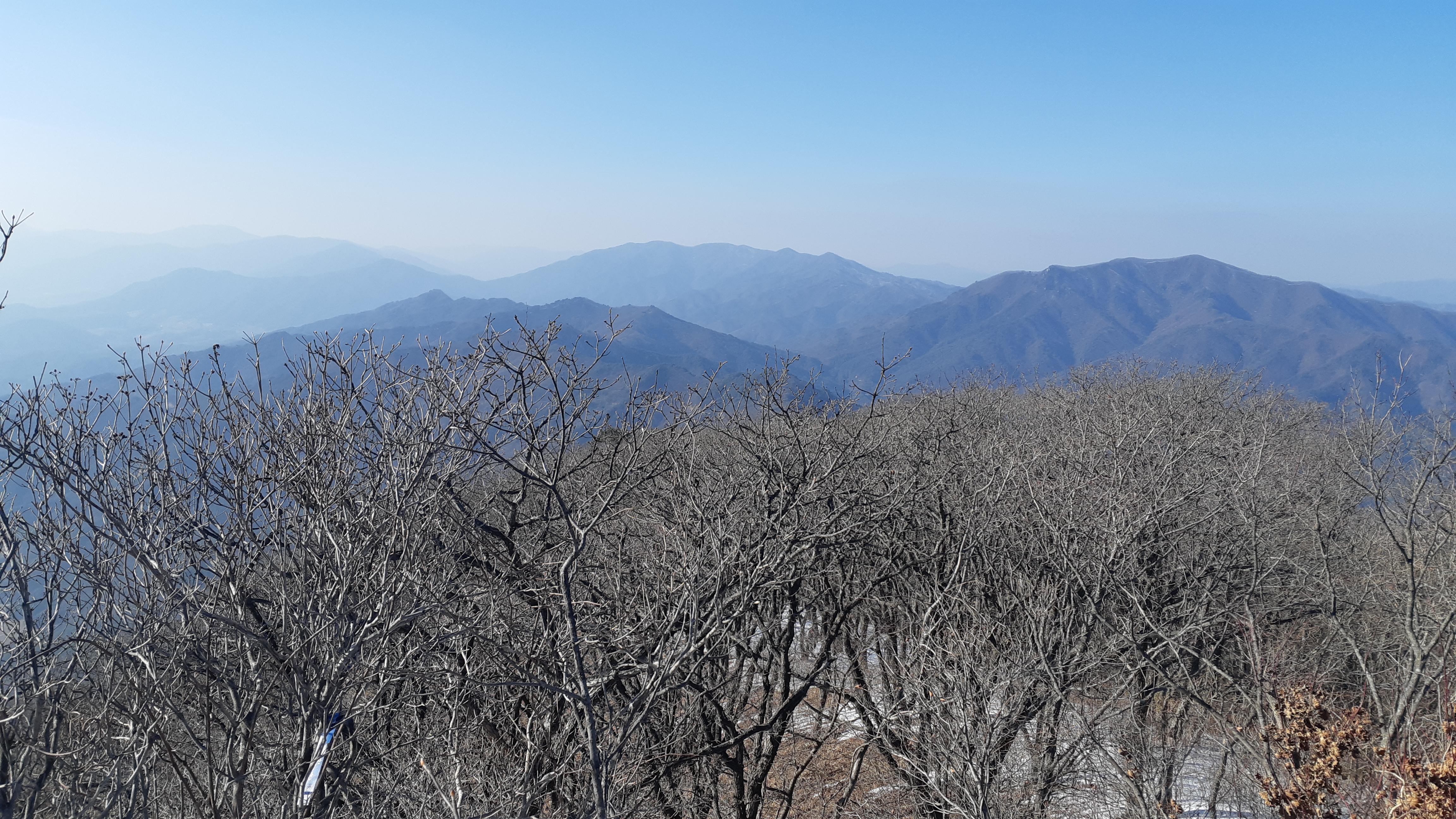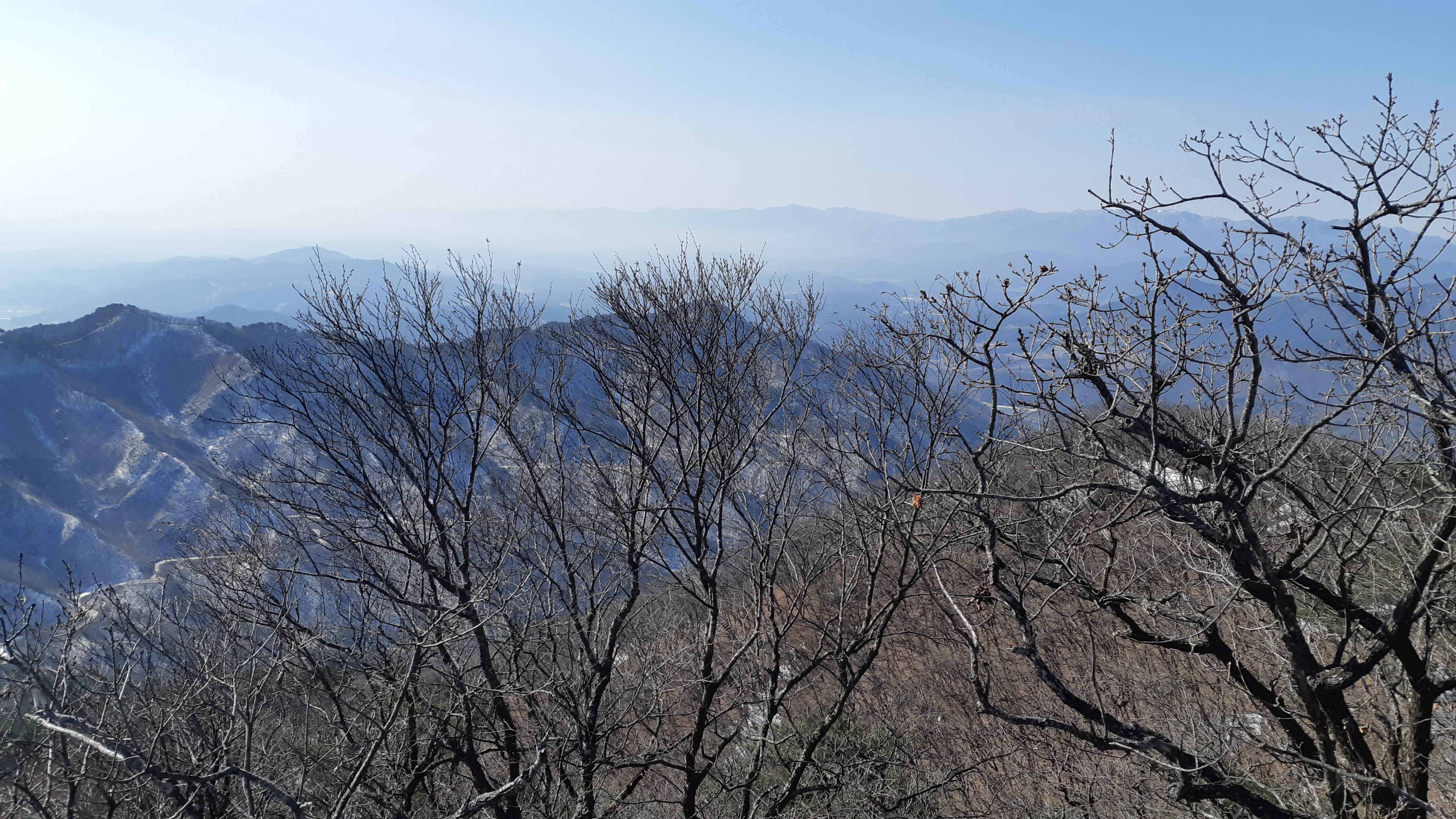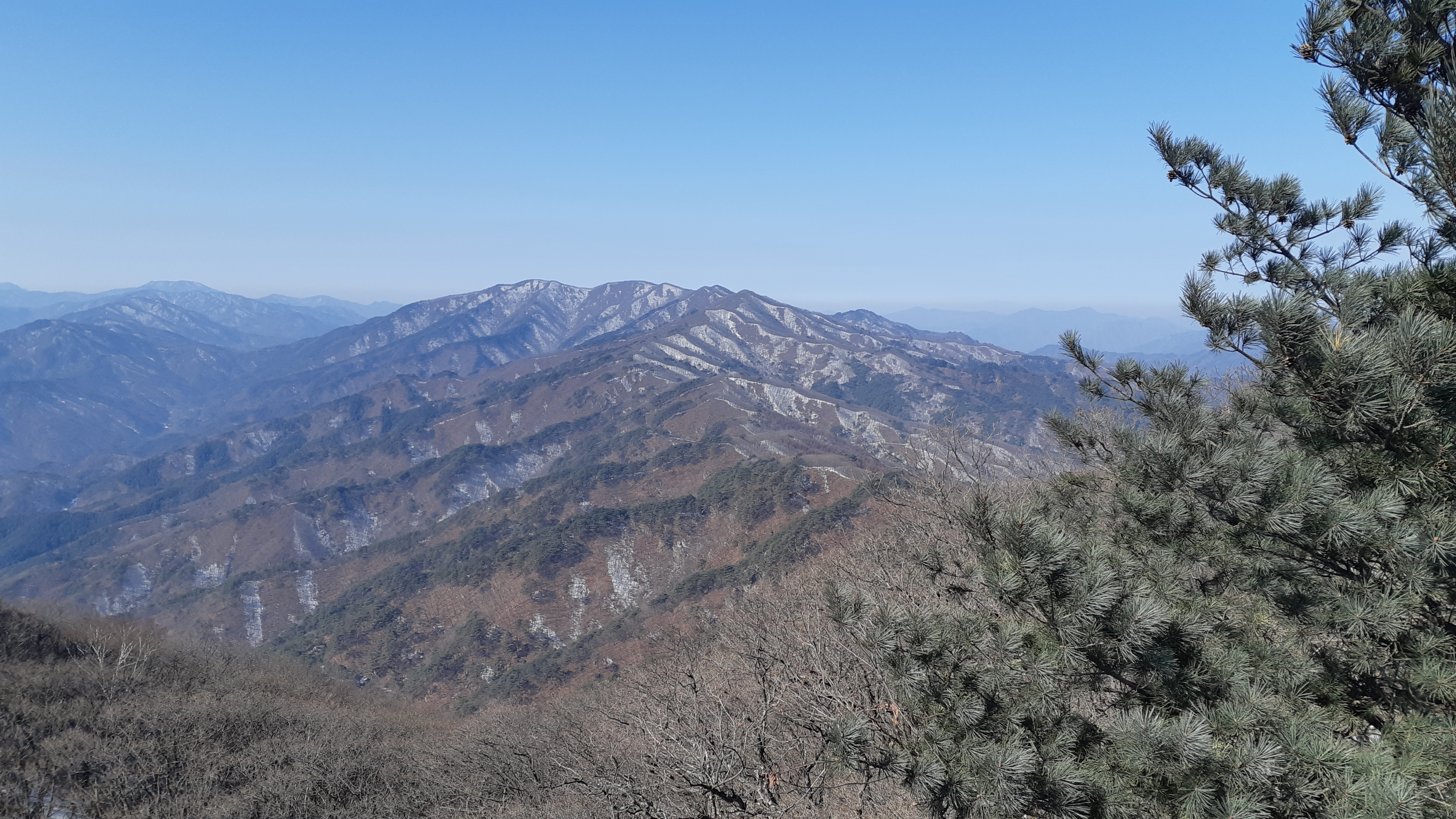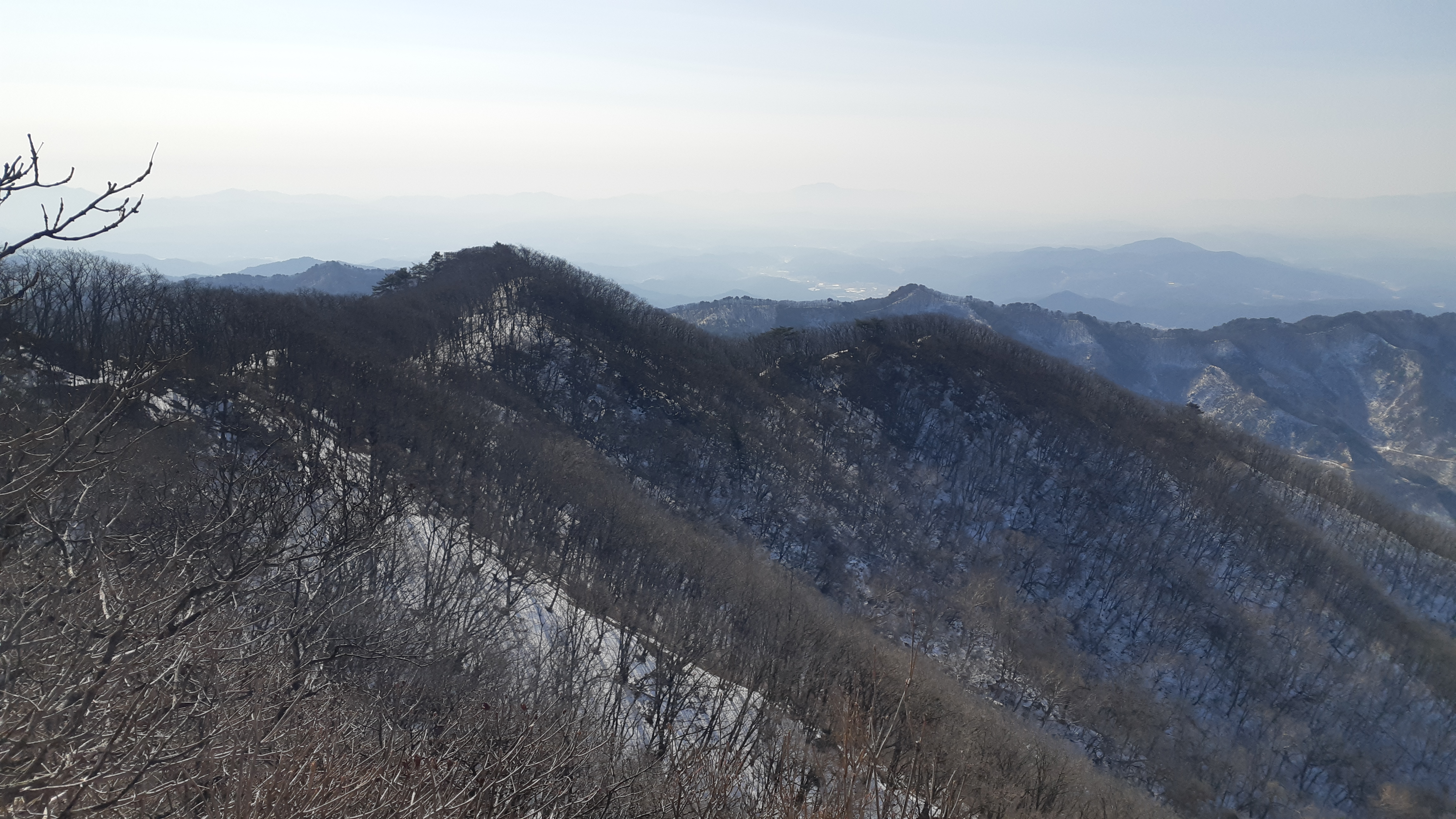 문수산 정상에서 바라본 문수지맥 가부재로 이어지는 능선(15:05)