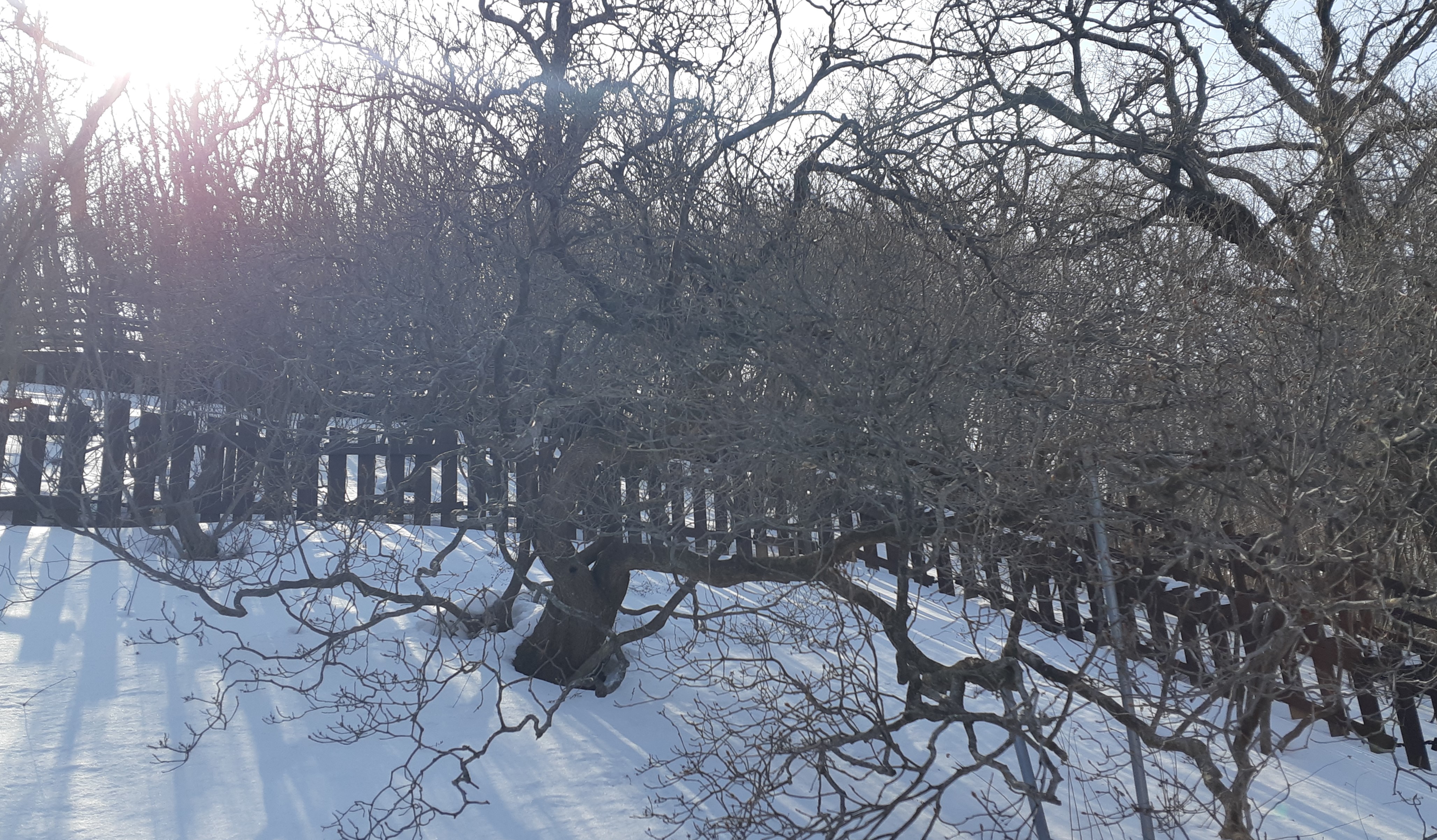 이곳 도래기재는 조선시대 역(驛)이 있던 도역리(道驛里) 마을 이름에서 따온 것으로 봉화군 춘양면 남쪽의 서역리와 북쪽의 우구치리의 경계로 동물이동통로 오른쪽 우구치리에 위치한 덱계단을 오르면서 본격적인 산행이 시작된다. 사각사각 아이젠과 눈의 마찰음을 들으면서 한 걸음 두 걸음 발을 내딛는다. 두툼한 장갑을 끼고 산행을 시작 하였지만 금새 손가락이 아려온다. 30여분 올라서니 이정표가 보이는데 절반 가까운 지점이다. 도래기재에서 45분여 걸려 수령 약550년의 철쭉을 만나는데 2014년 백두대간 하행시에는 어두워 보이지 않았지만 오늘은 만날 수가 있었다. 하지만 수령은 여전히 550년에 머물러있어 산림청에서 관심 있게 살펴야 할 것 같다.