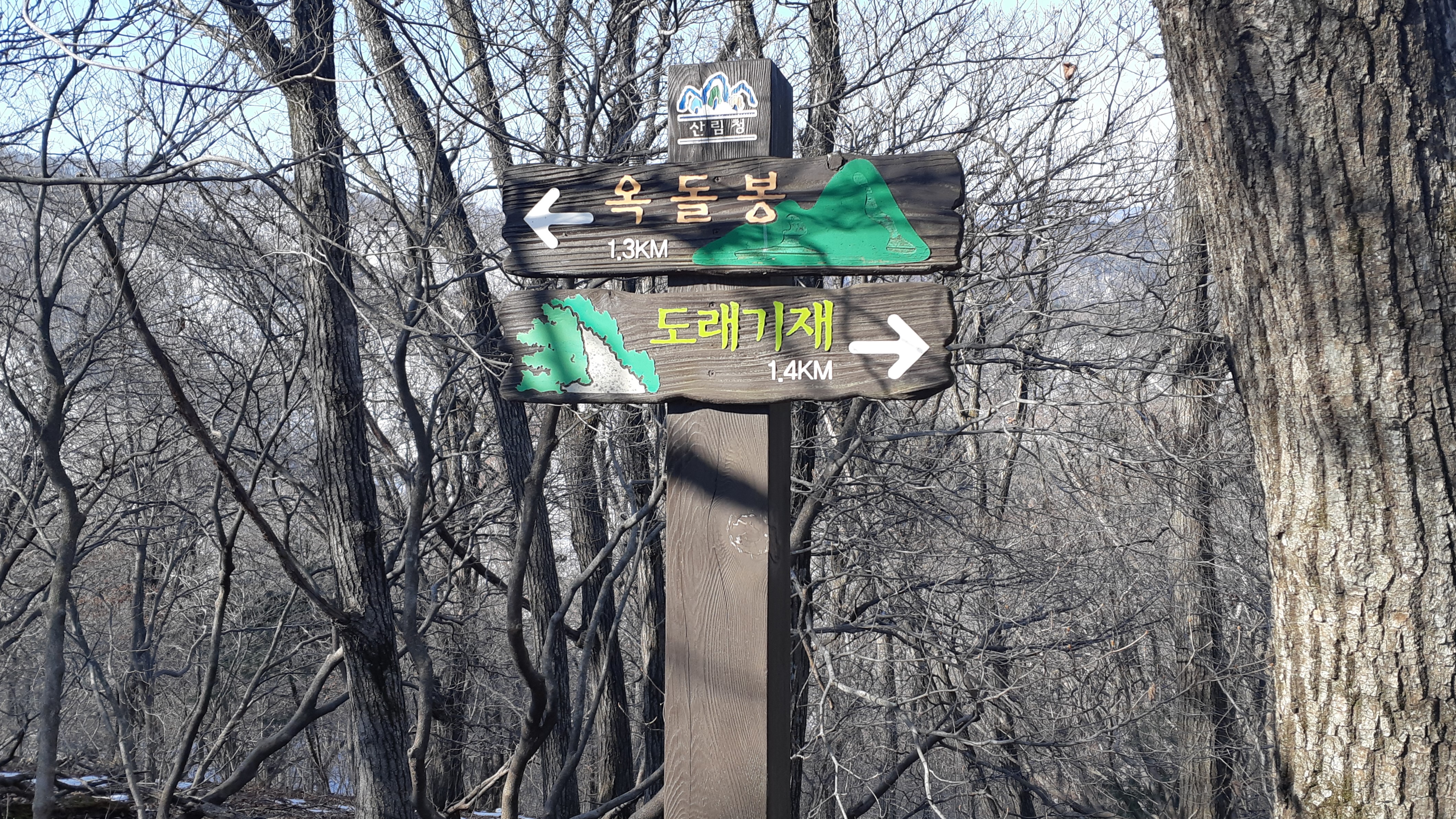 이정표는 아직 옥돌봉 정상 이라고(12:02)
