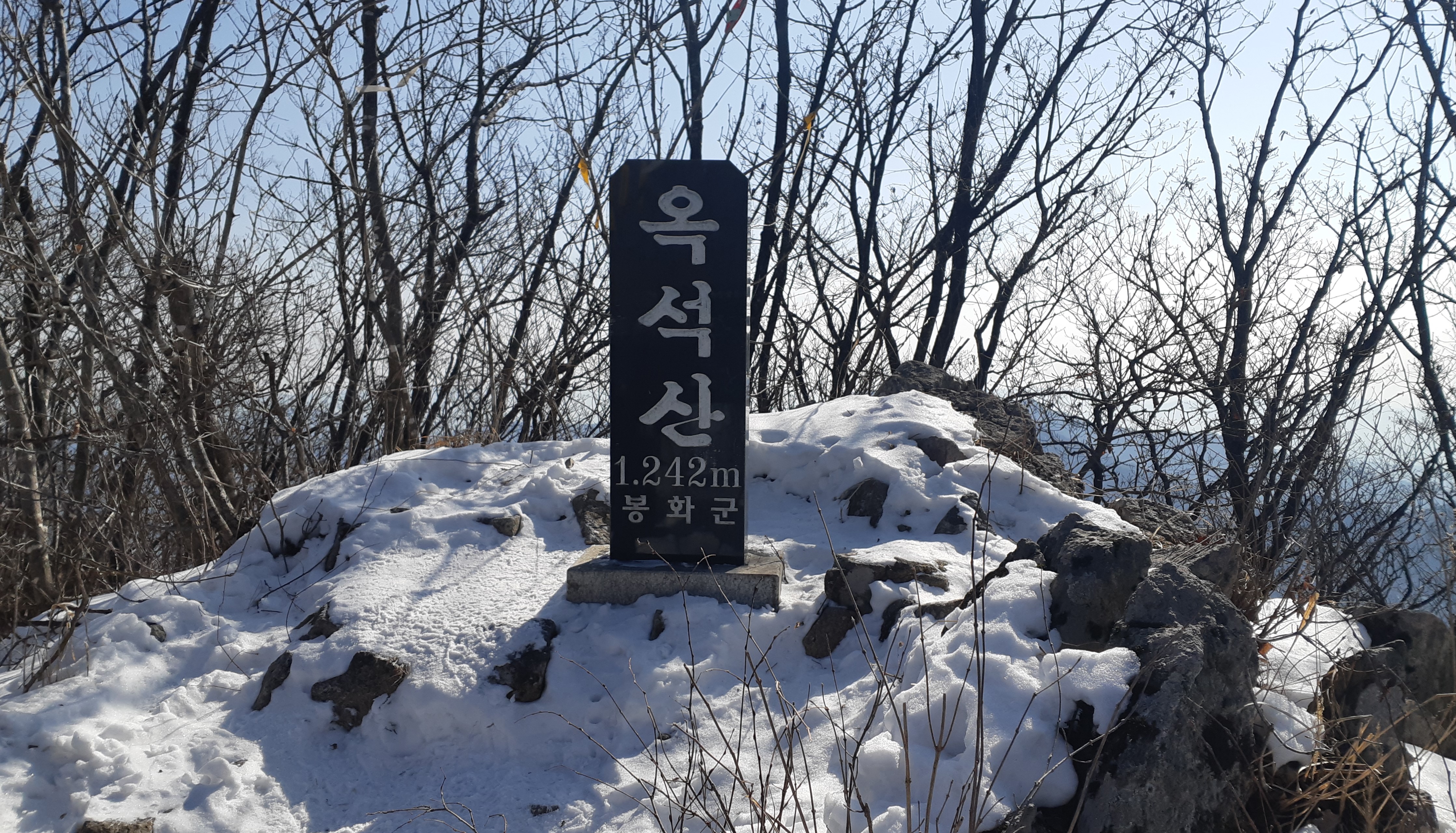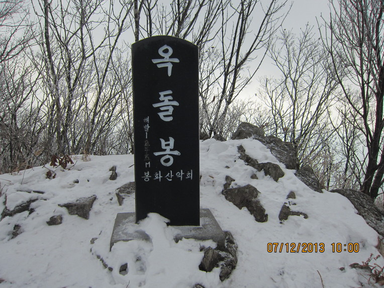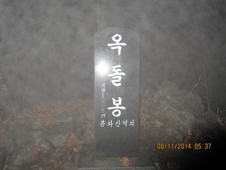 같은 장소에 정상석만 바뀌었네요(2013년 문수지맥 종주시에는 옥돌봉이란 정상석이 자리잡고 있었는데)