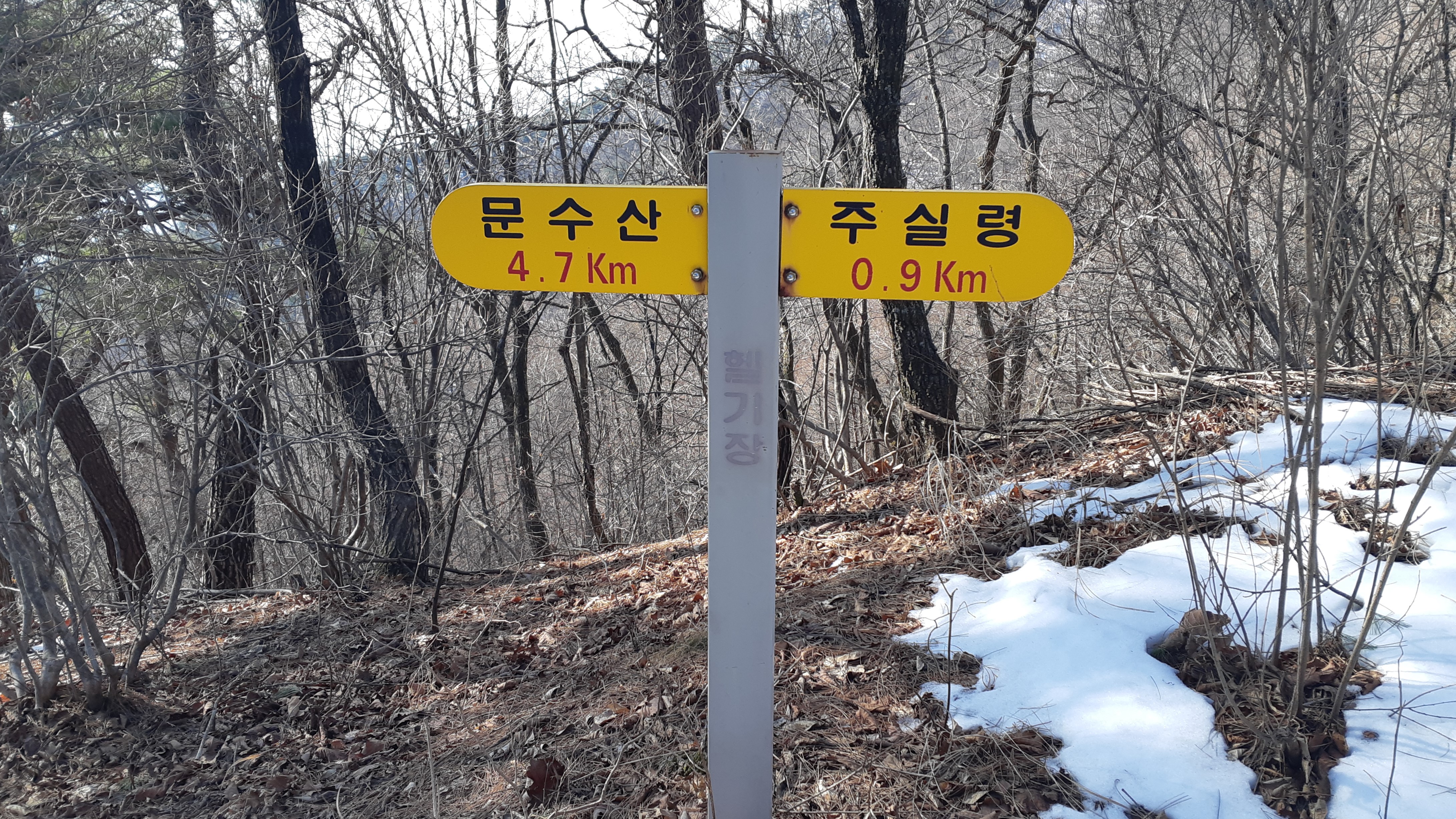 주실령 0.45km를 알리는 이정표(12:44)